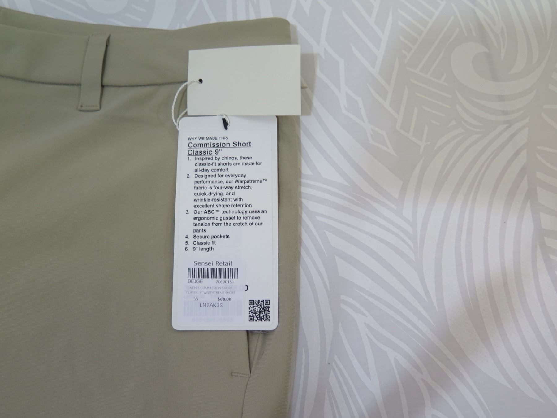 New lululemon LM7AK3S Men's Commission Short Classic 9" Warpstream, Beige, Size 36. New with tags. Resort retail $88.