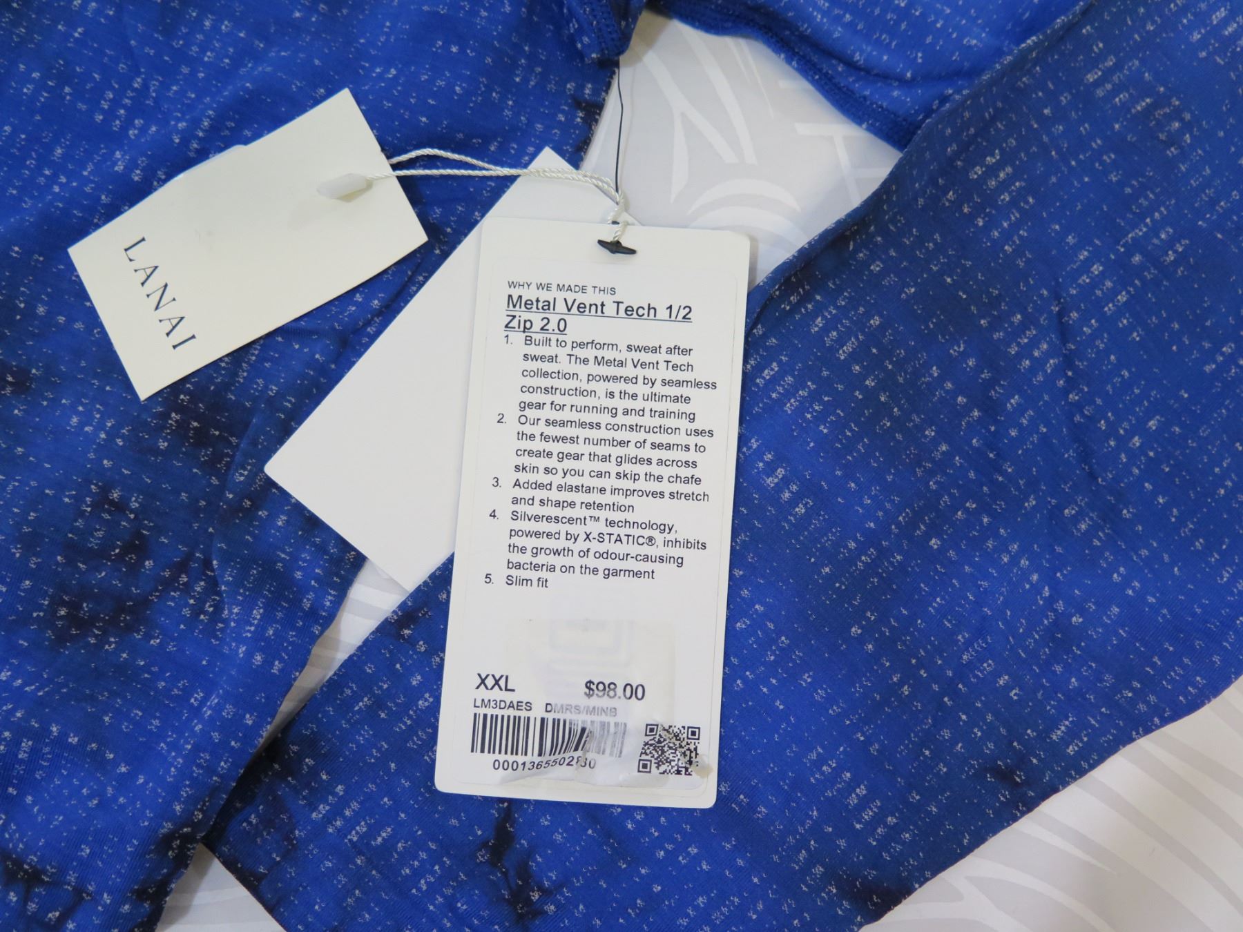 From a retail shop at a five-star resort. A new entity recently moved into the space and implemented its own retail concept. All remaining floor and stockroom inventories were sent to Oahu Auctions. Everything is new with tags. Most of these are still on the Lululemon website. The price tag shown is "resort retail," which is what these were priced at in this retail establishment. Most of these products are still on the Lululemon website.