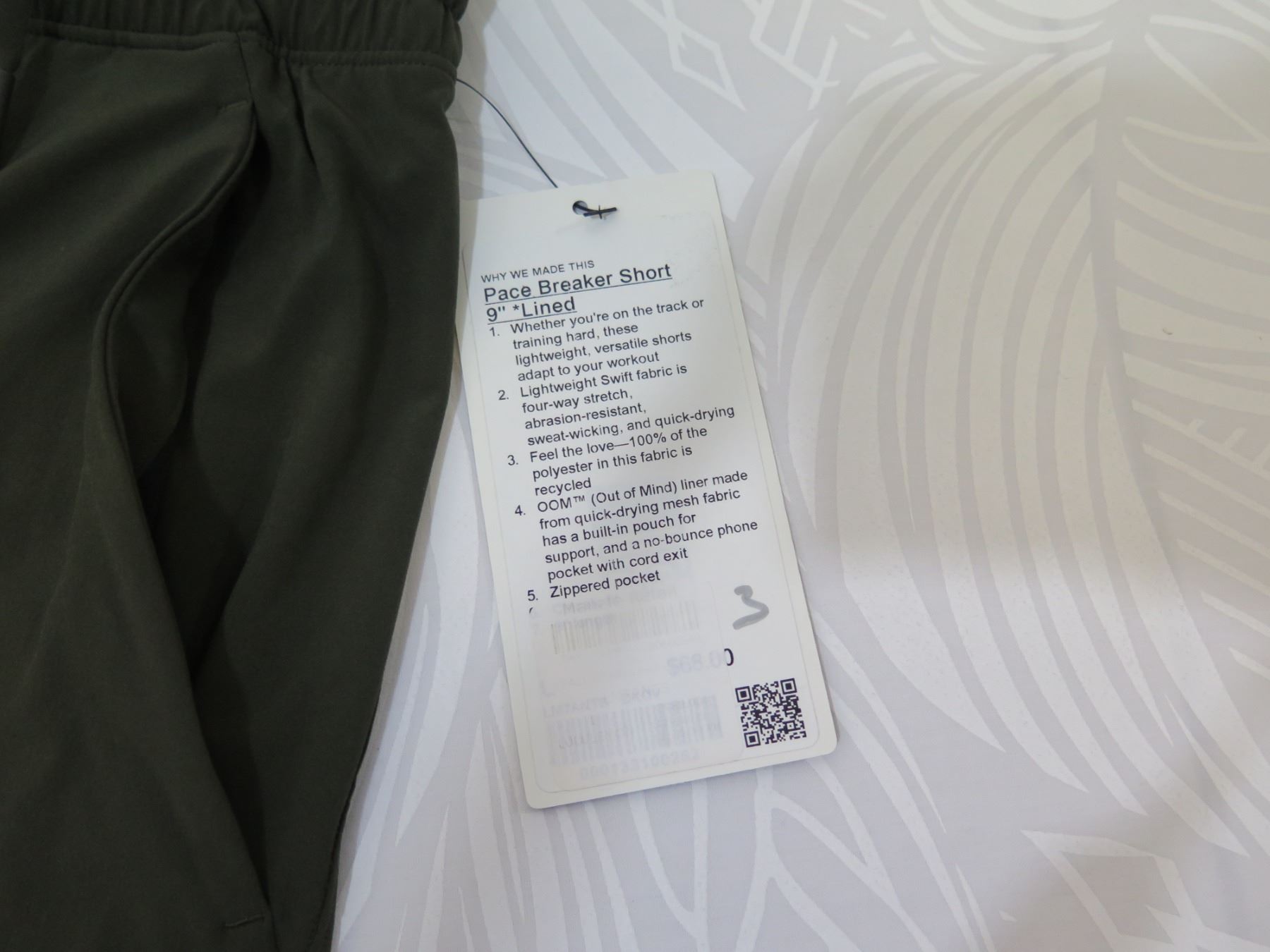New lululemon Men's Pace Breaker Short 9" Lined, Size Large. New with tags. Resort retail $68.