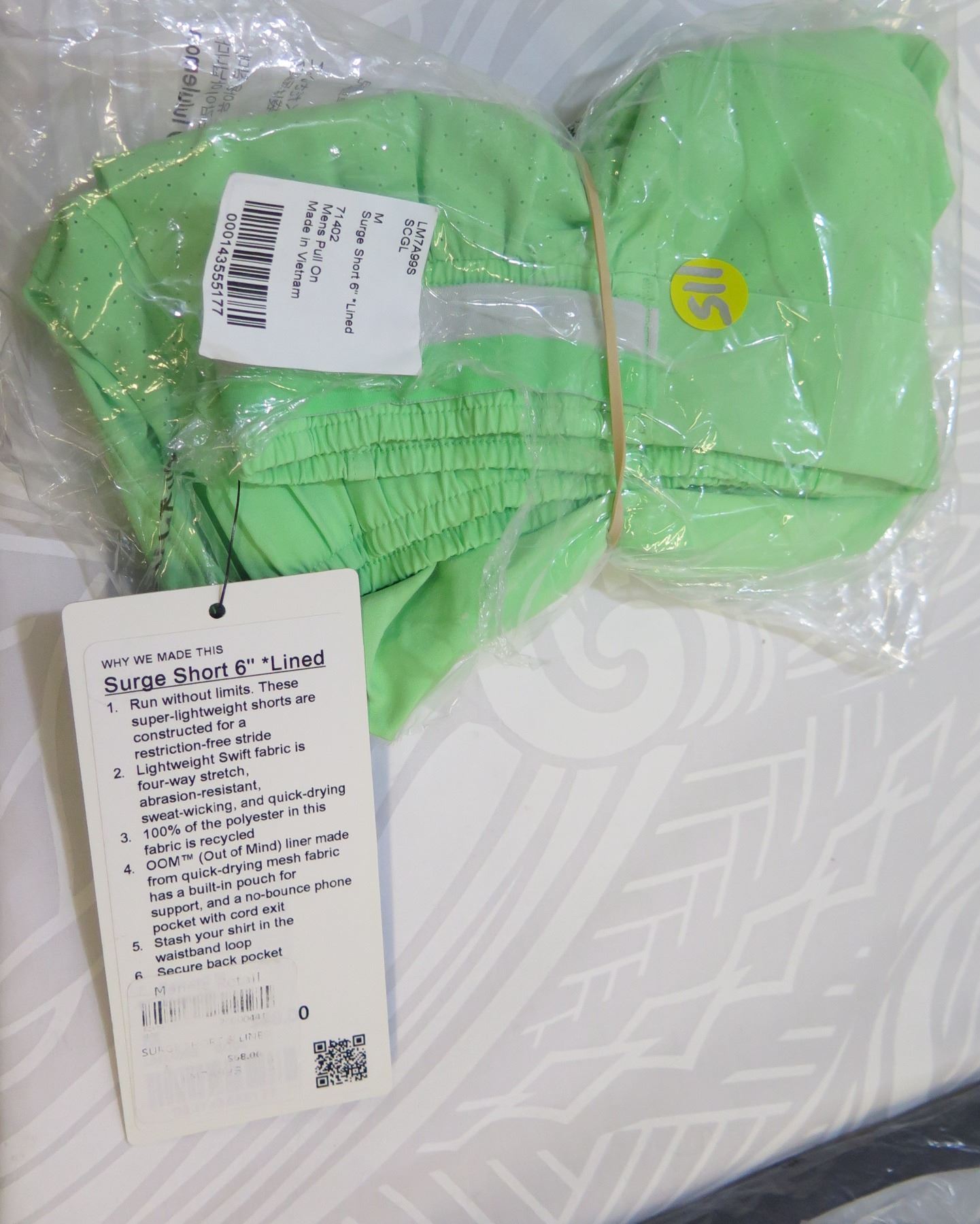 New lululemon Men's Surge Short 6" Lined, Green, Size Medium. New with tags. Resort retail $88.