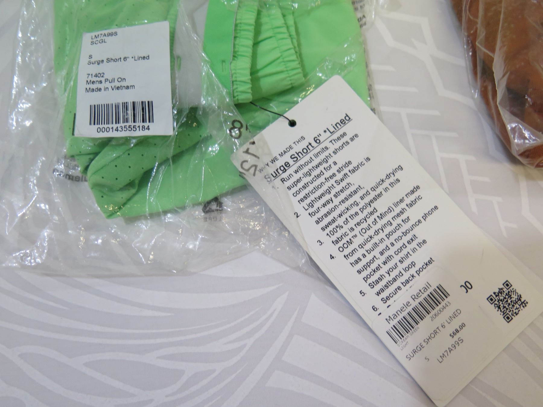 From a retail shop at a five-star resort. A new entity recently moved into the space and implemented its own retail concept. All remaining floor and stockroom inventories were sent to Oahu Auctions. Everything is new with tags. Most of these are still on the Lululemon website. The price tag shown is "resort retail," which is what these were priced at in this retail establishment. In some cases, we include a link to the brand's website for further context and illustration.