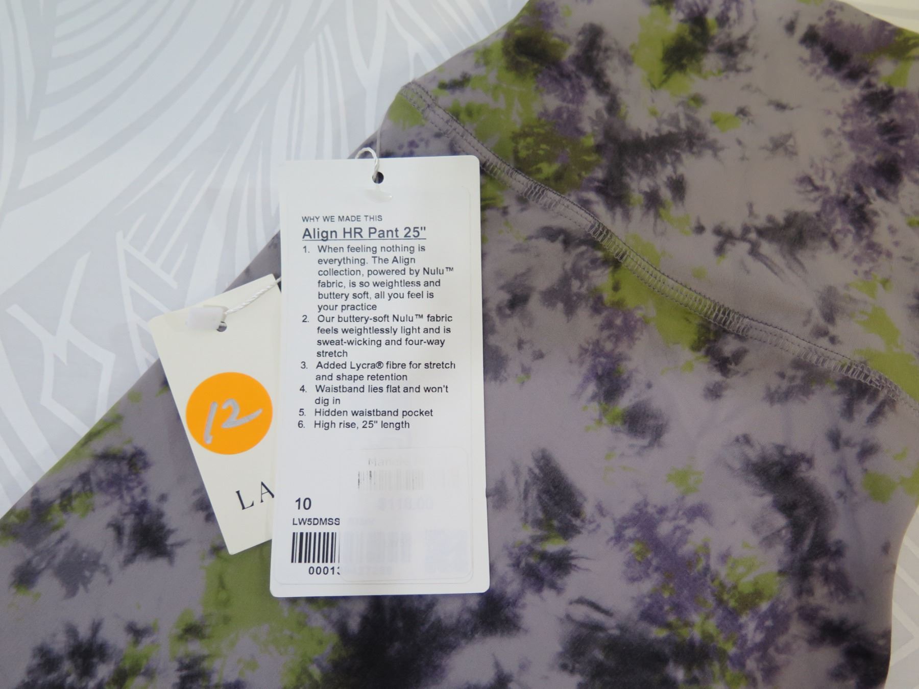 New lululemon LW5DMSS Women's Align High Rise Mauve Tie Dye Pant 25", Size 10. New with tags. Resort retail $118.