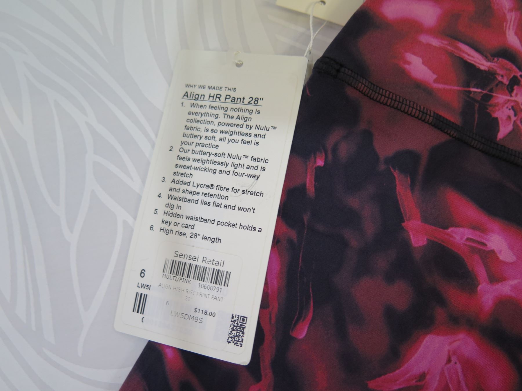New lululemon LW5DM9S Women's Align High Rise Print Pant 28", Multi/Pink, Size 6. New with tags. Resort retail $118.