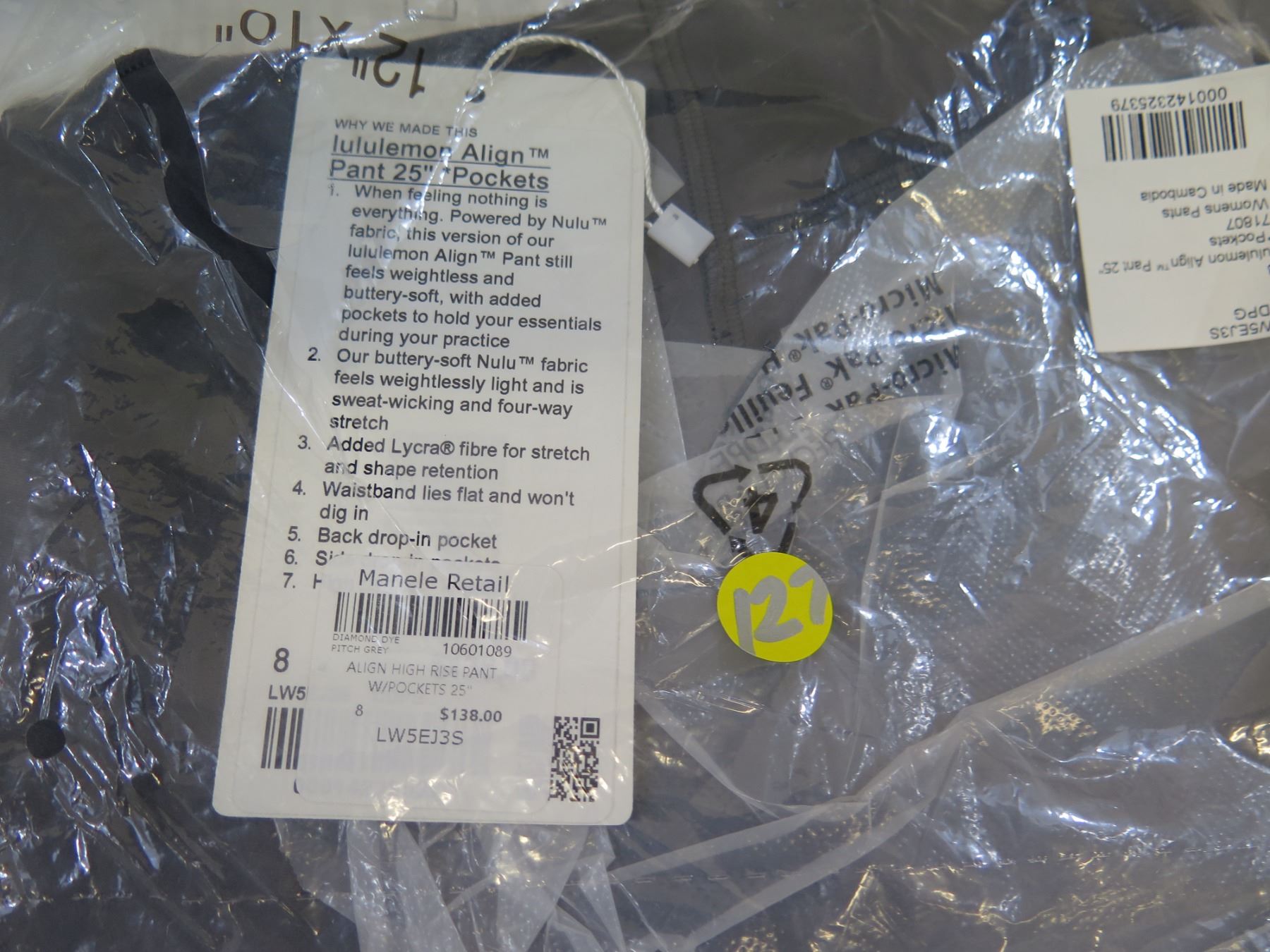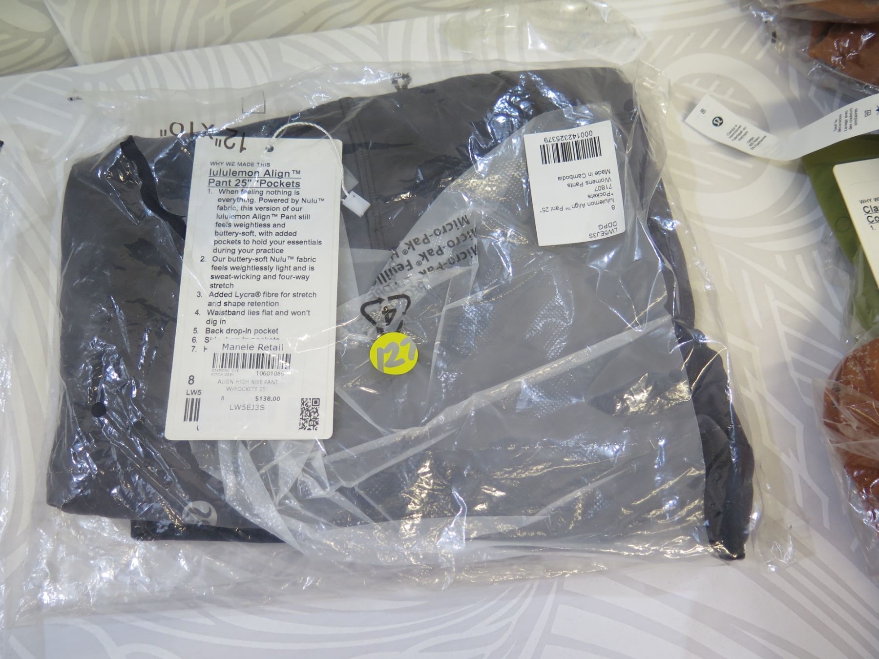 From a retail shop at a five-star resort. A new entity recently moved into the space and implemented its own retail concept. All remaining floor and stockroom inventories were sent to Oahu Auctions. Everything is new with tags. Most of these are still on the Lululemon website. The price tag shown is "resort retail," which is what these were priced at in this retail establishment. In some cases, we include a link to the brand's website for further context and illustration.