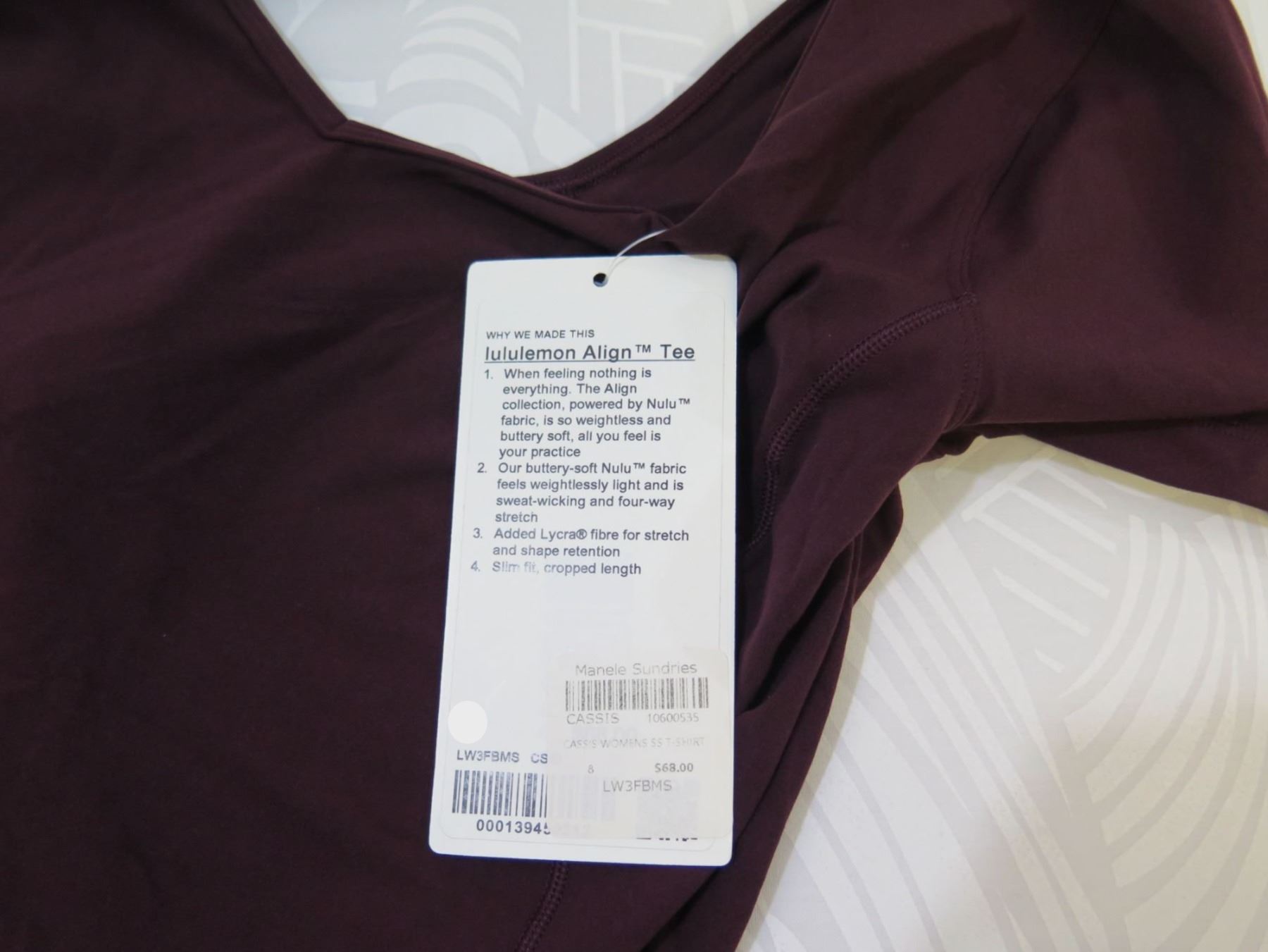 New lululemon LW3FBMS Women's Align Tee, Cassis, Size 12. New with tags. Resort retail $68.