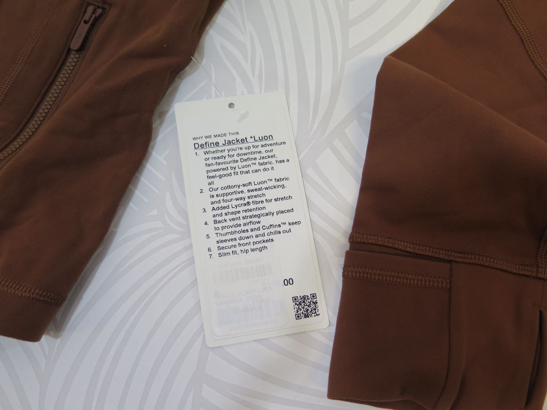 New lululemon Women's Define Jacket *Luon, Brown, Size 6. New with tags. Resort retail $118.