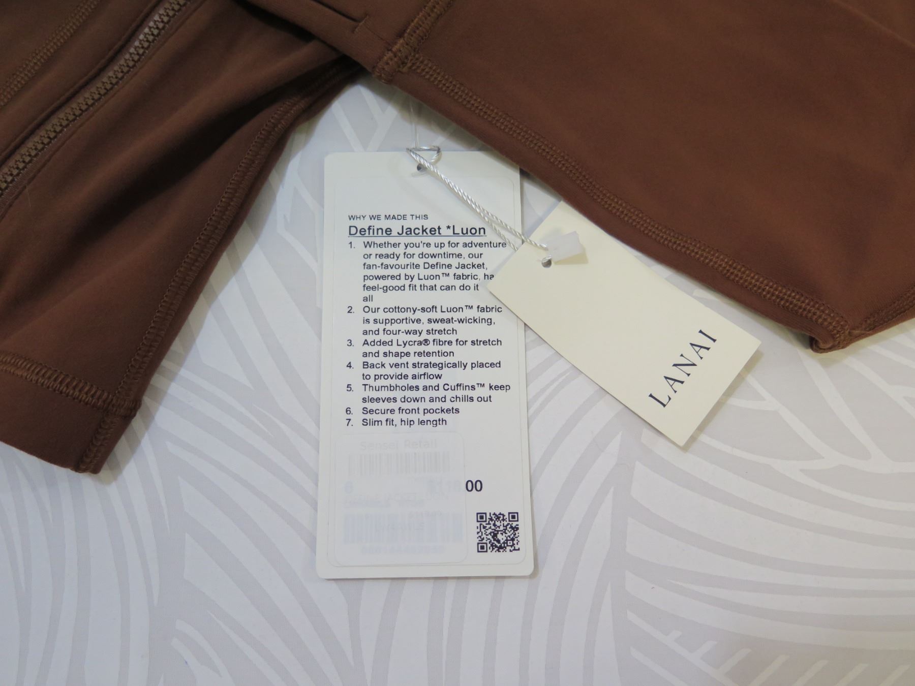 New lululemon Women's Define Jacket *Luon, Brown, Size 6, New with tags. Resort retail $118.
