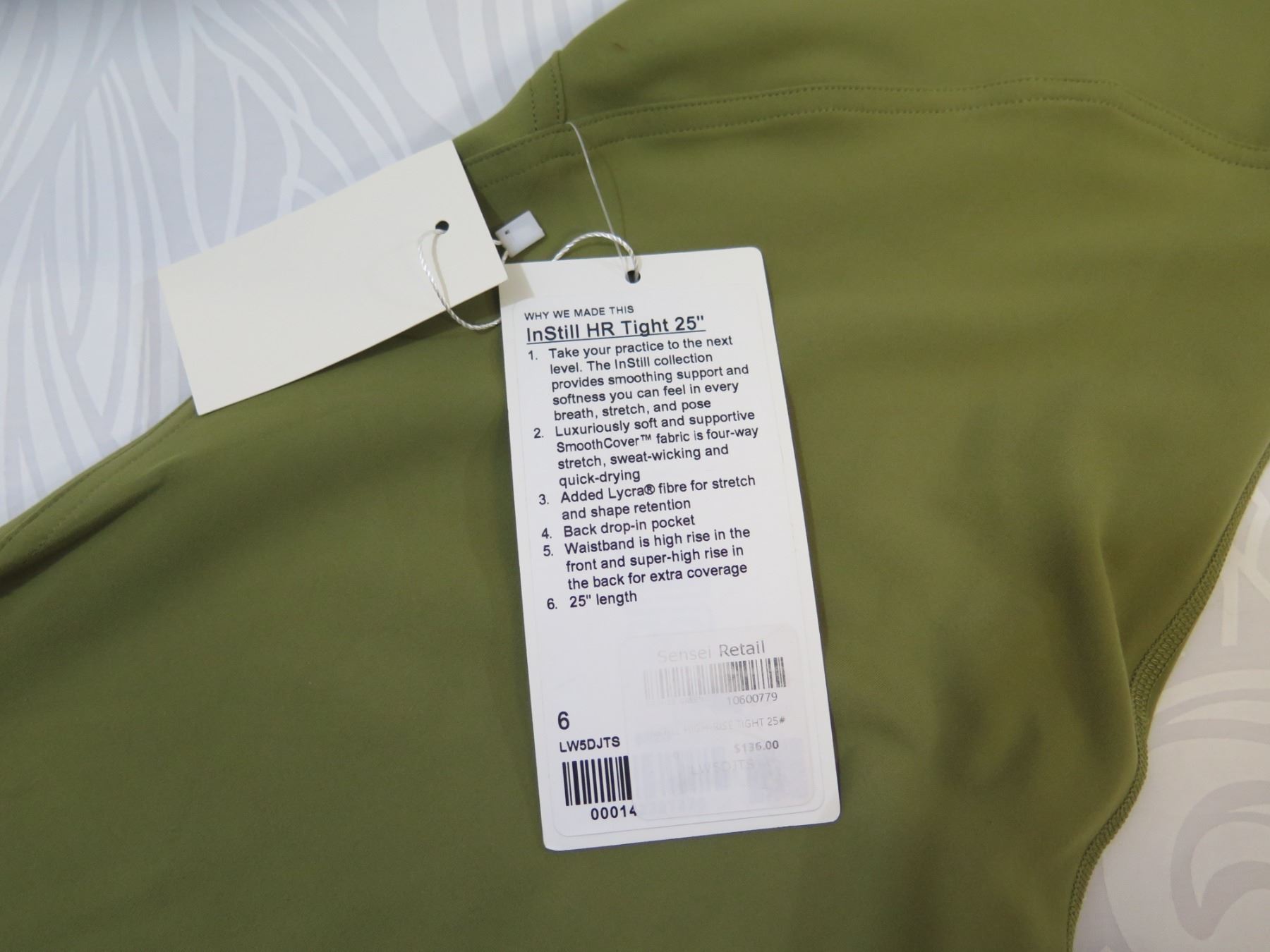 New lululemon LW5DJTS Women's InStill High Rise Tight 25" Green, Size 6. New with tags. Resort retail $78.