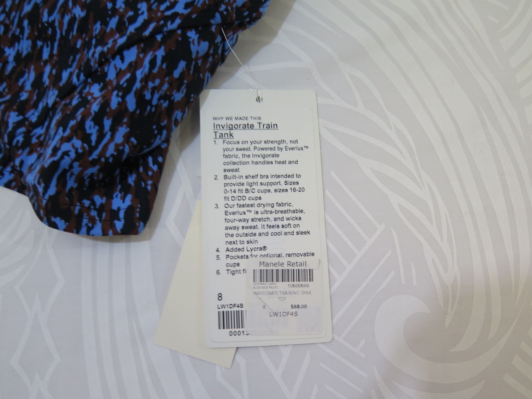 New lululemon LW1DF4S Women's Invigorate Train Tank, Blue Nile Multi, Size 8.