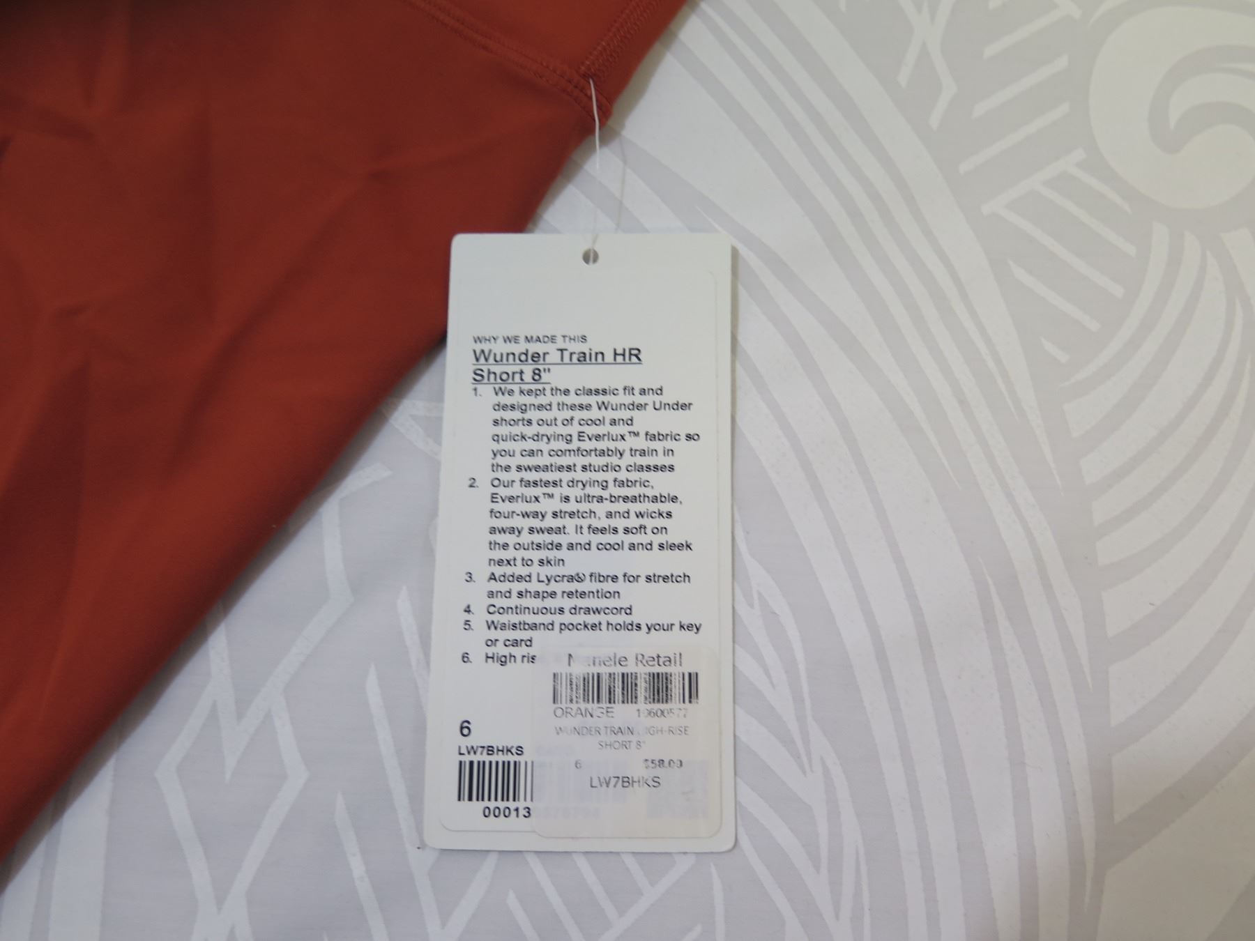 New lululemon LW7BHKS Women's Wunder Train High Rise Shorts 8", Orange, Size 6. New with tags. Resort retail $58.