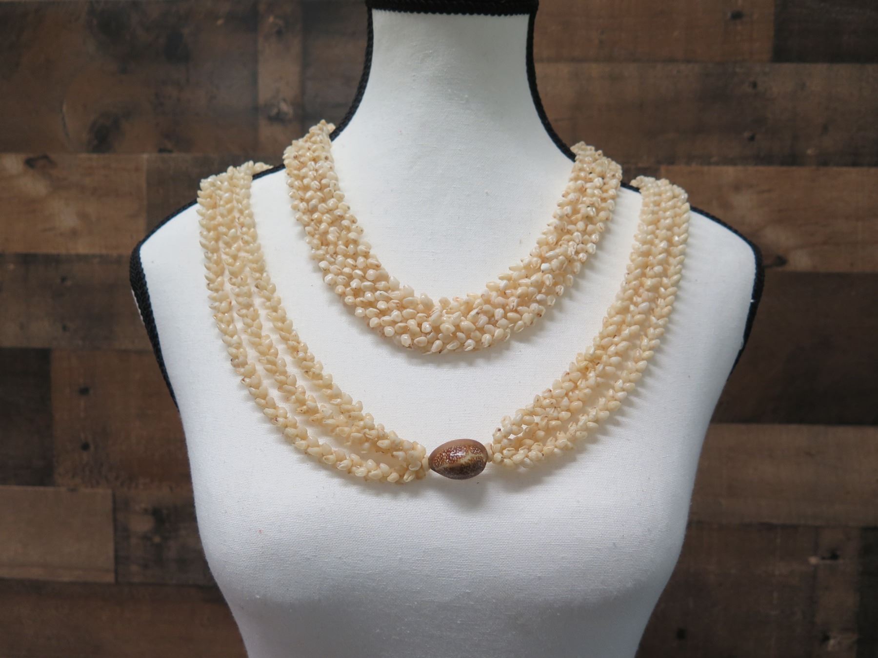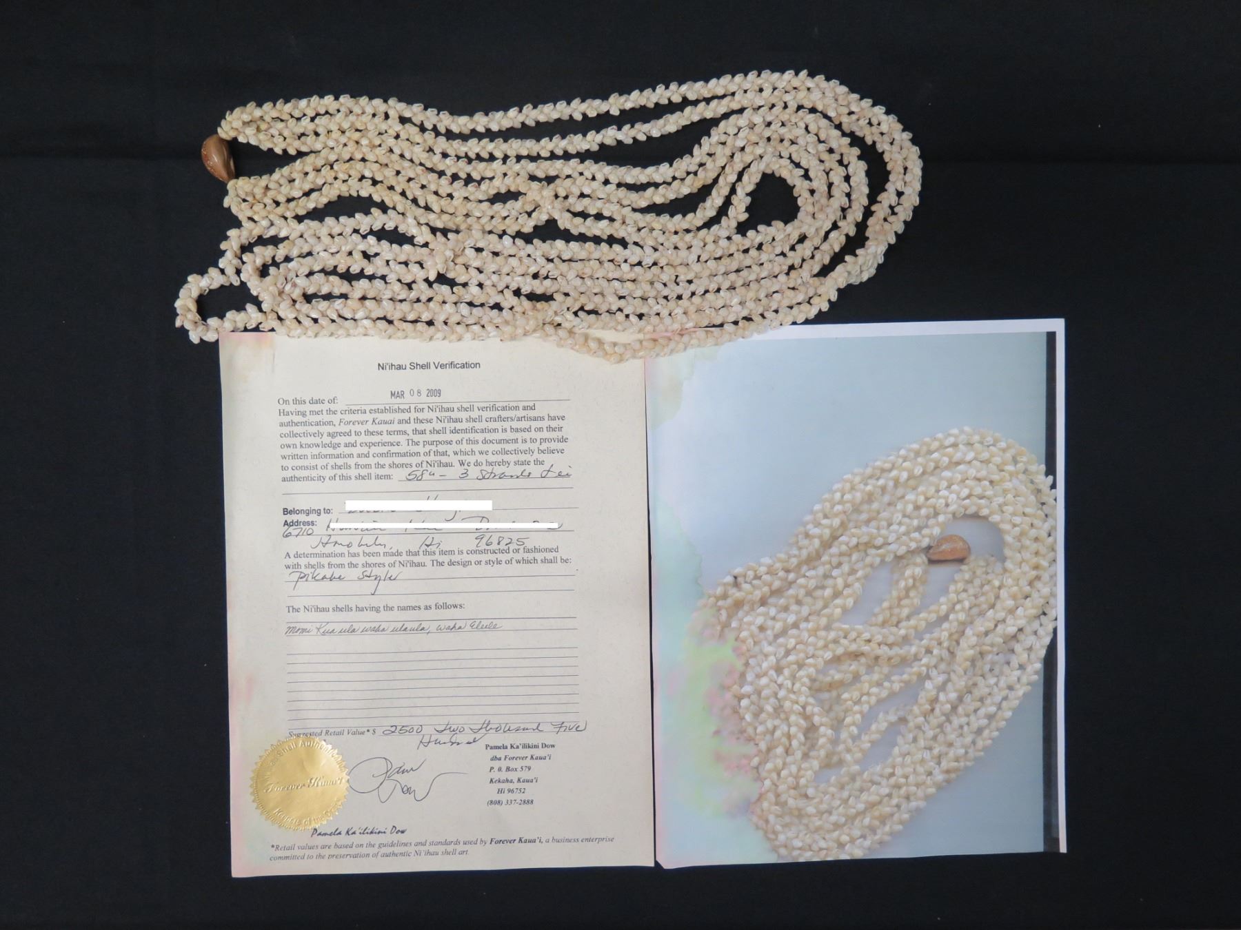 Niihau Shell Lei Kapona Triple Strand 58" Pikake Style w/ COA