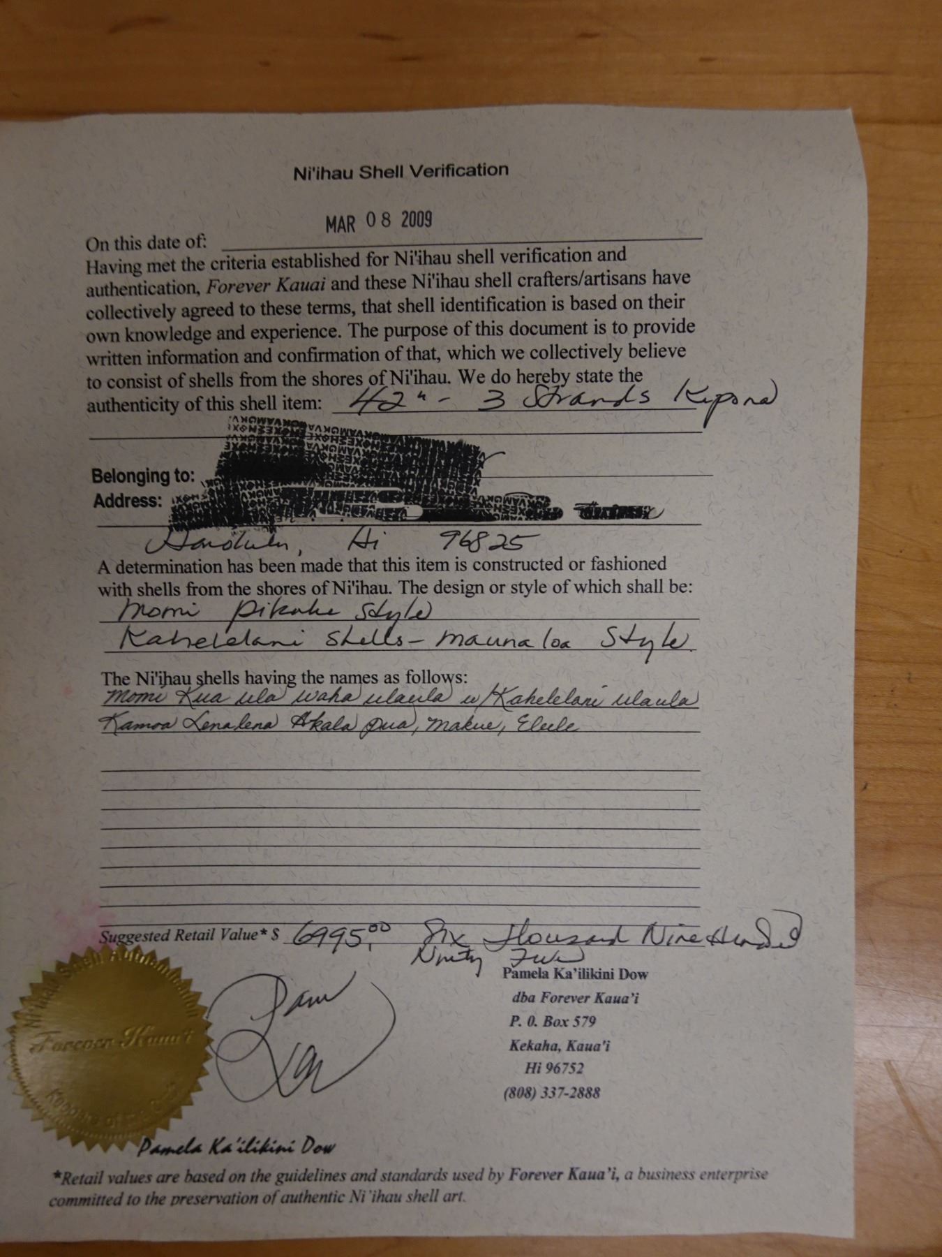 Niihau Triple-Strand Pikake-Style Shell Lei w/ COA 42"L