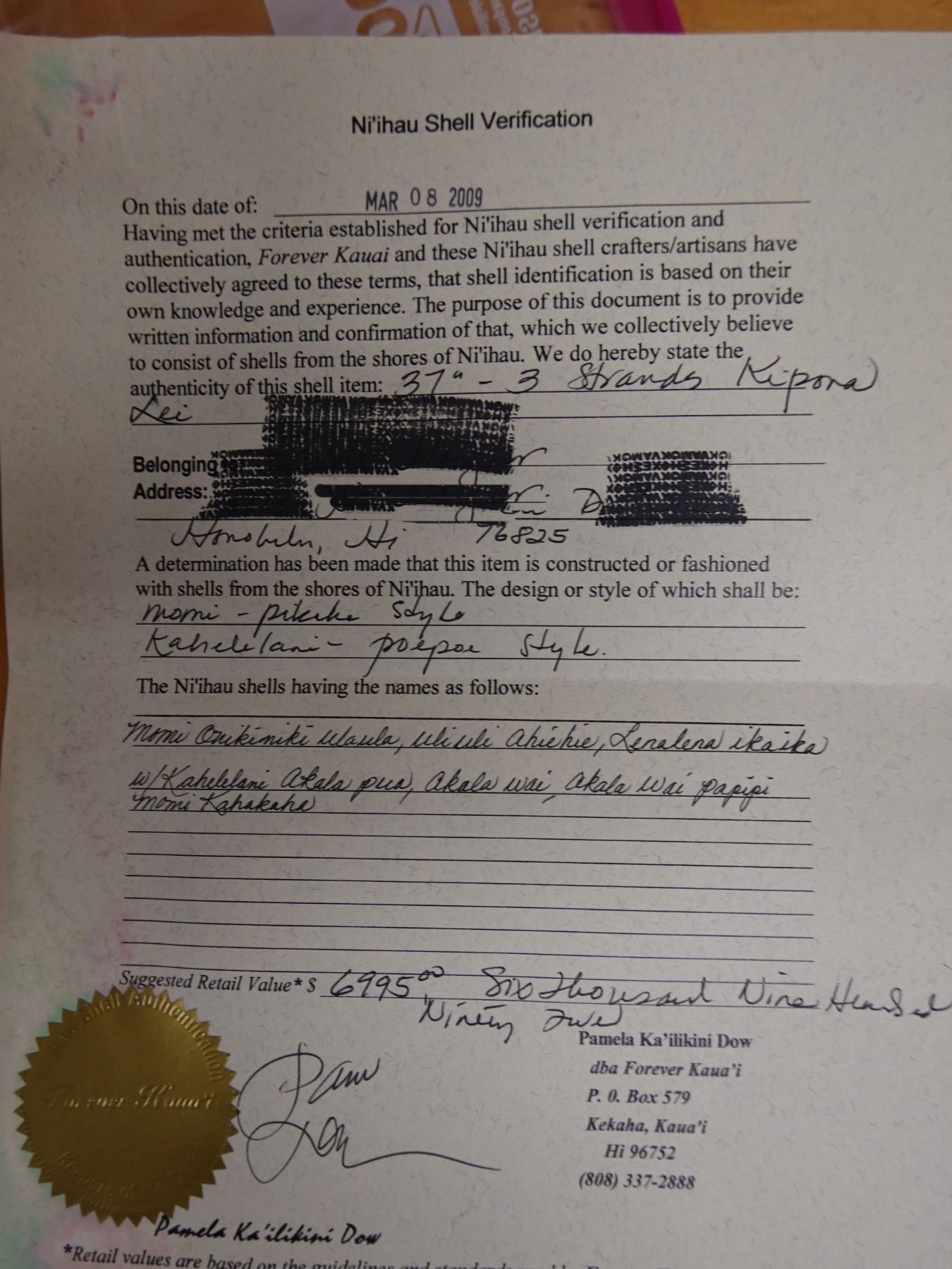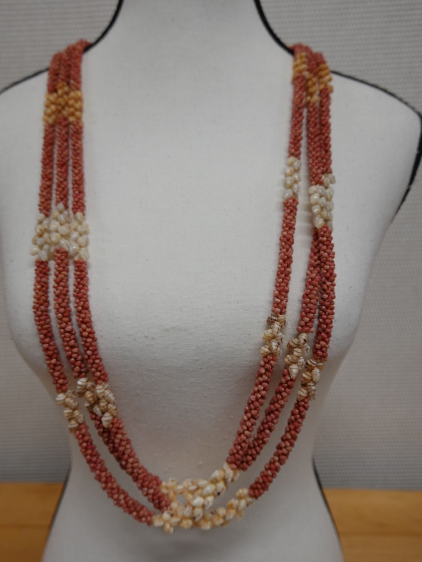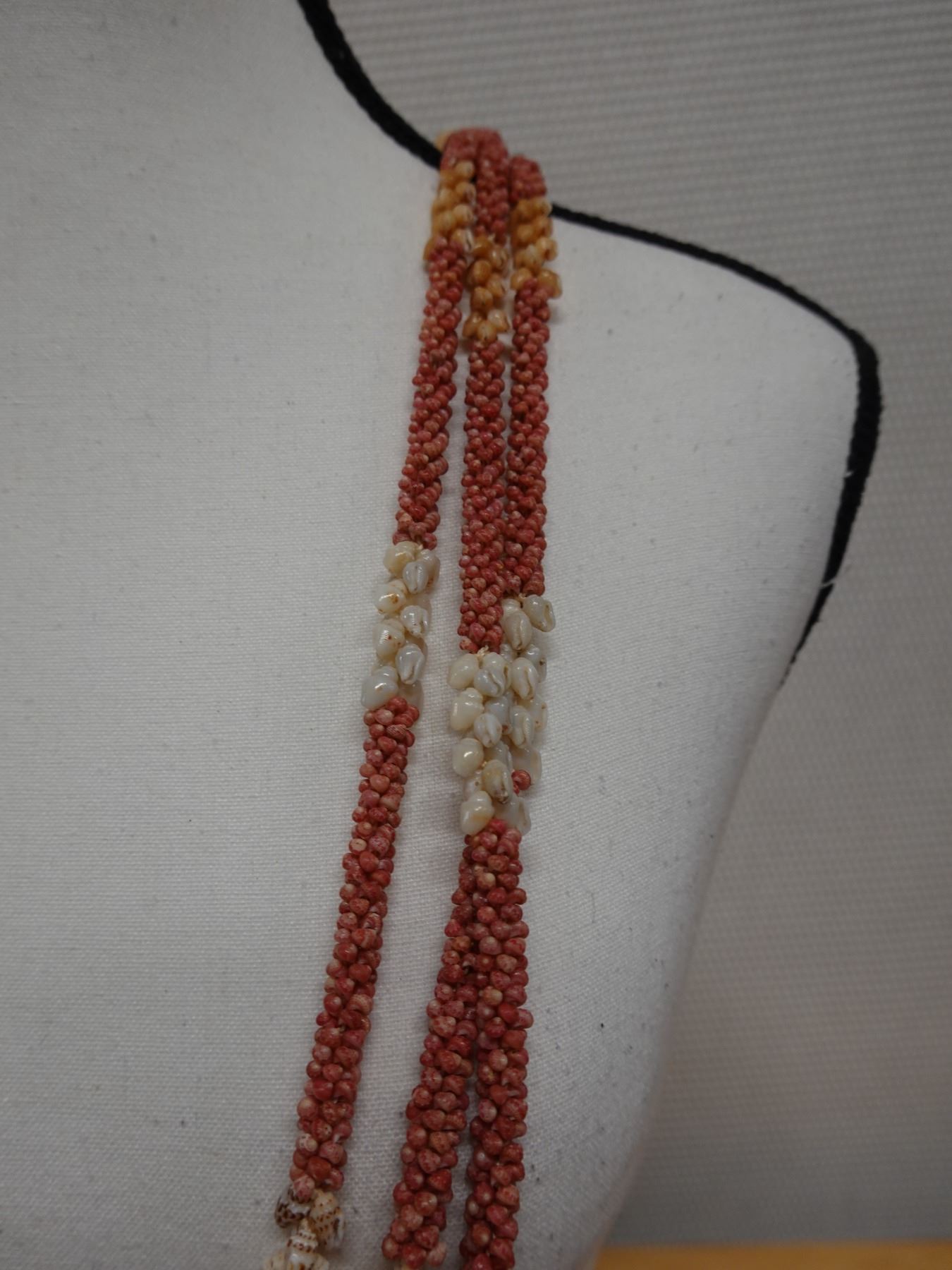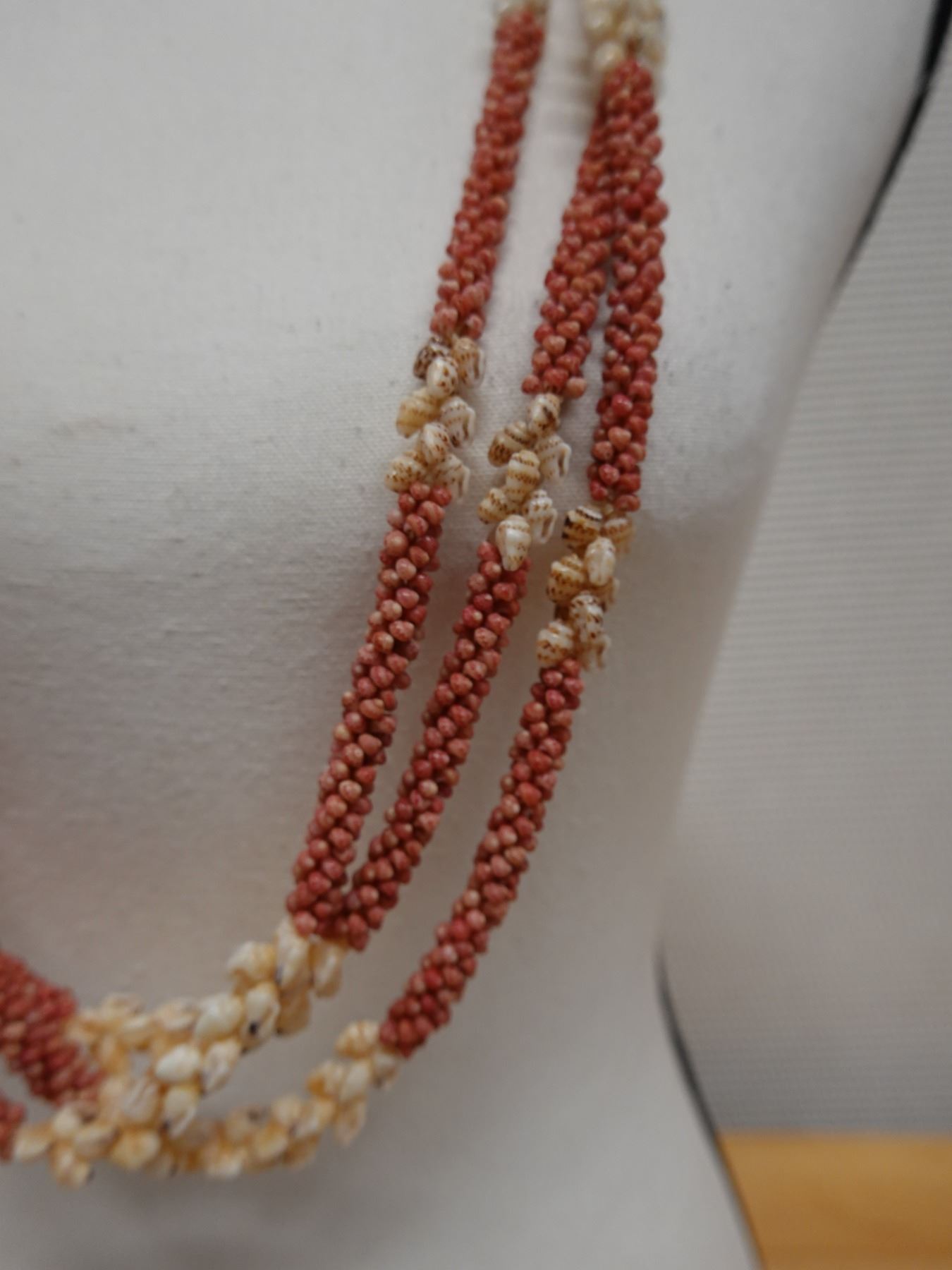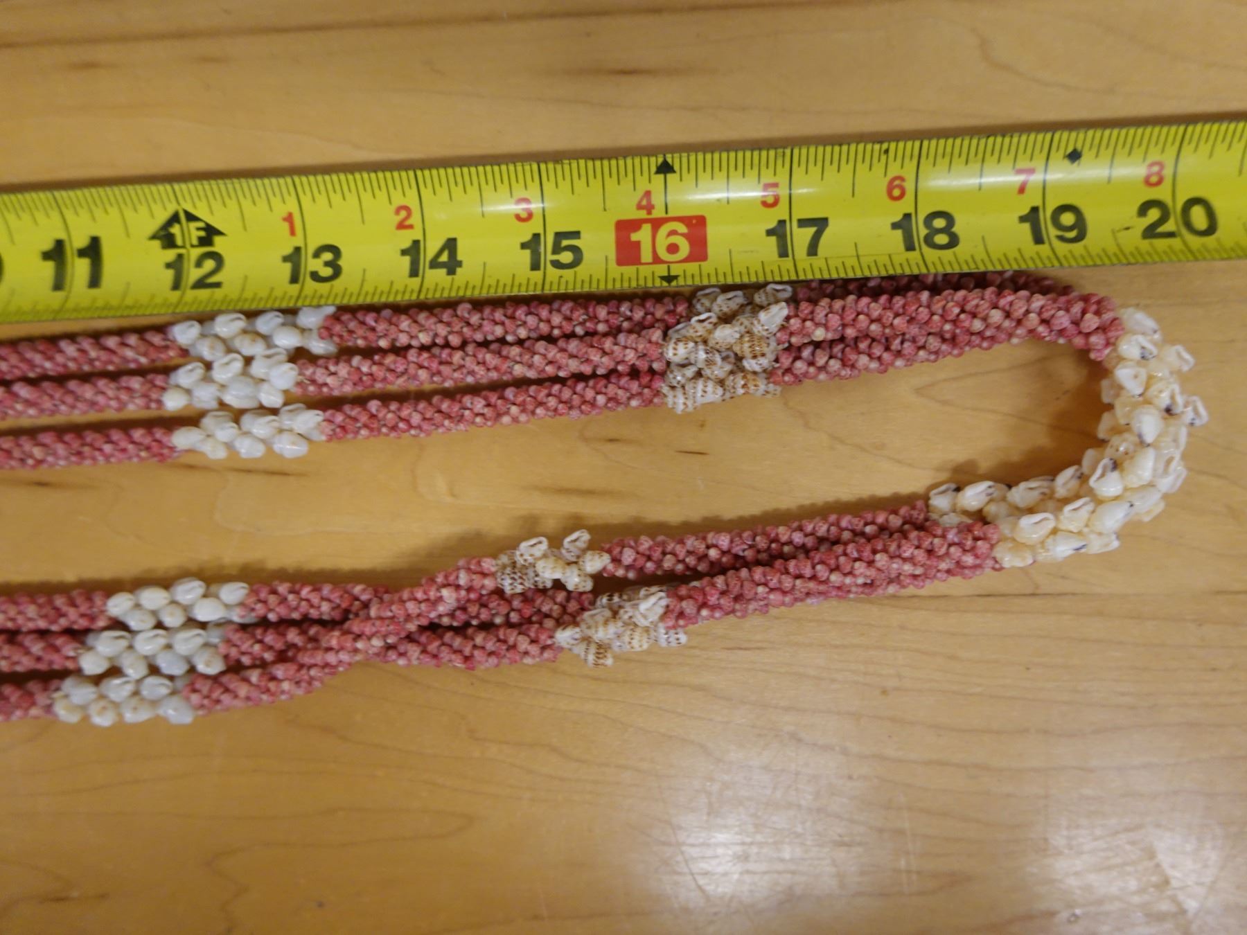 Niihau Triple-Strand Pink PoePoe Shell Lei w/ COA 37"L