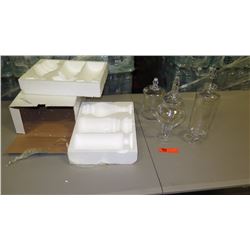 3 Apothecary Glass Jars - 1 has crack on the lid