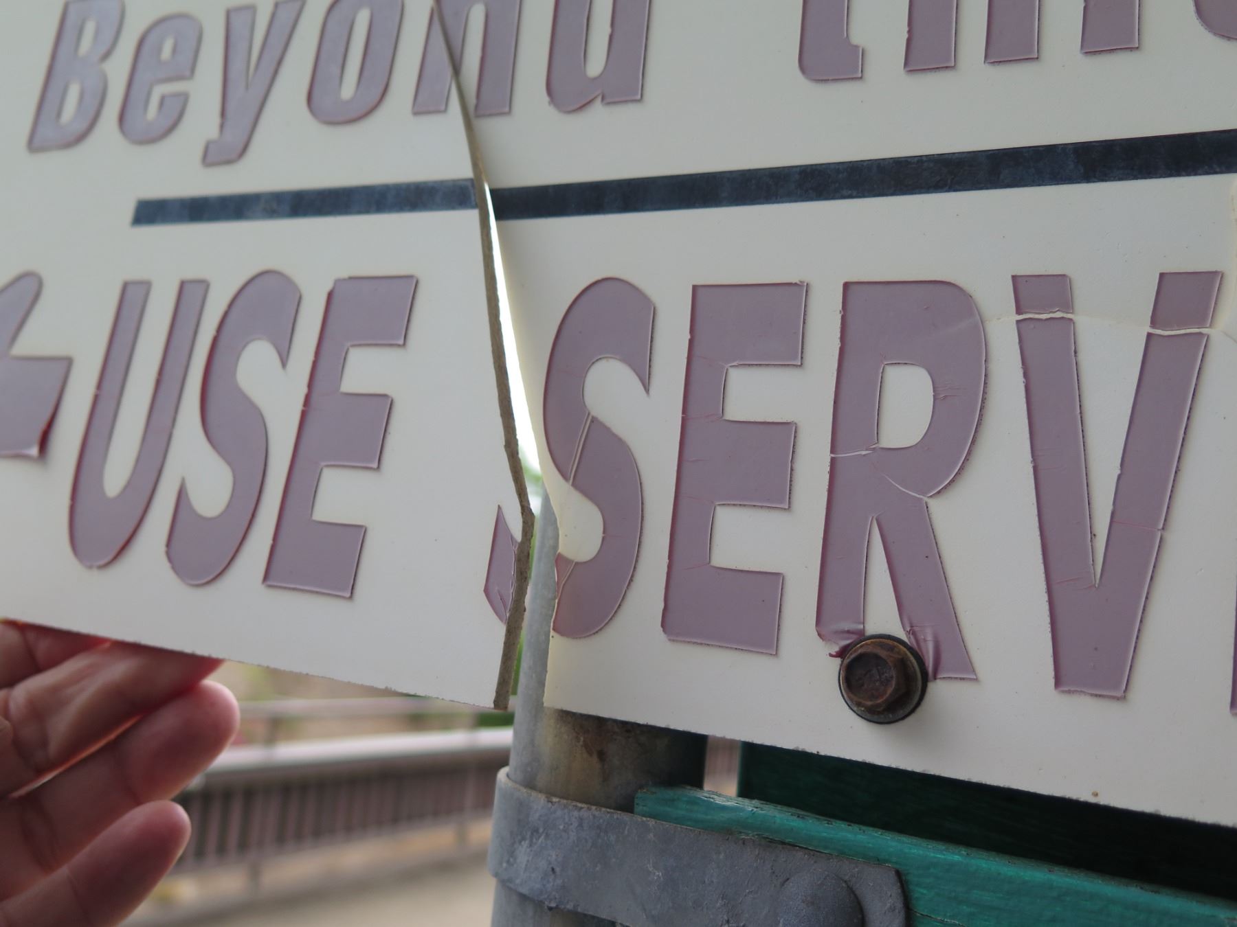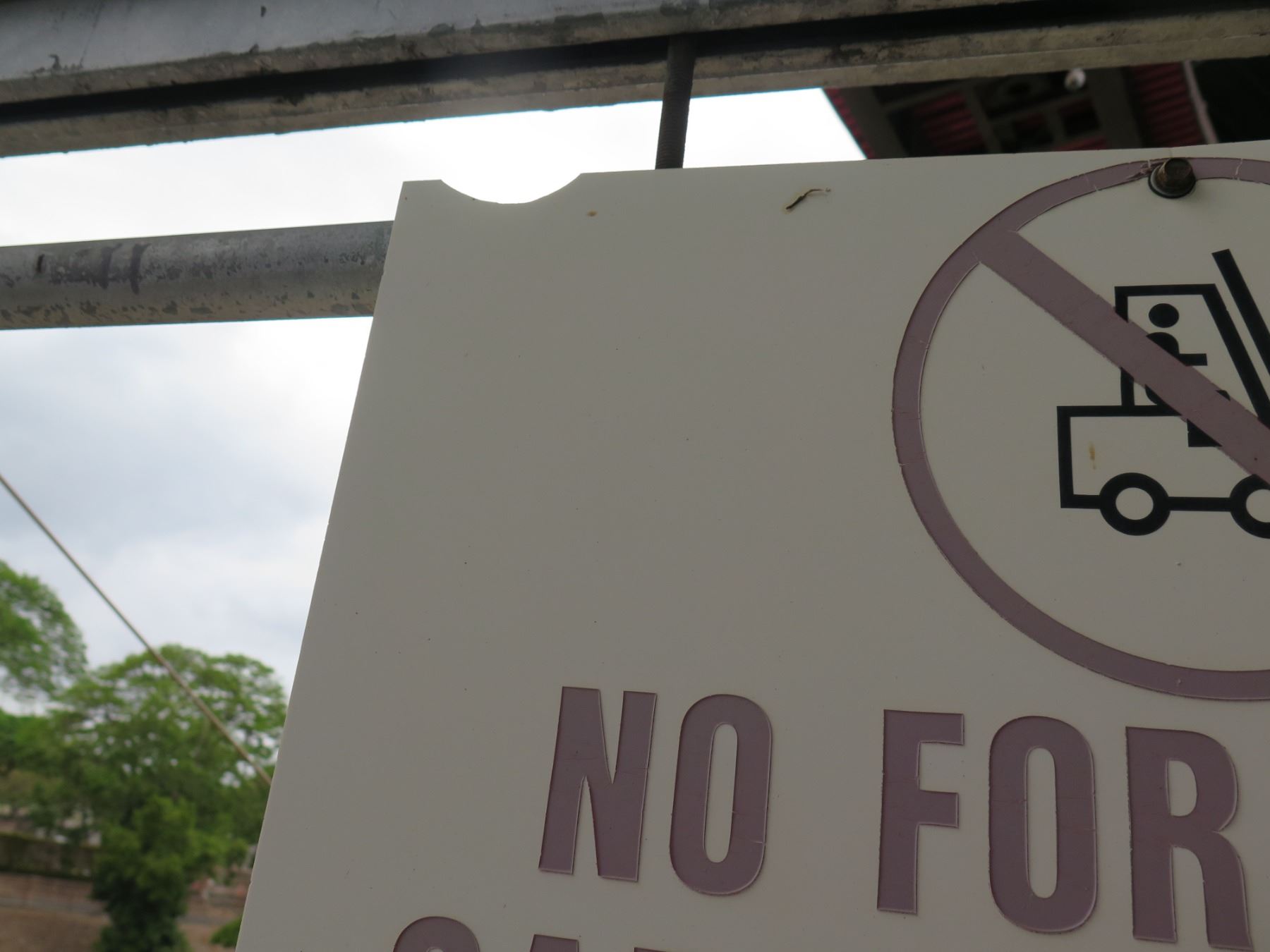 No Forklift, Cars, Trucks & Heavy Equipment Beyond This Point Sign 24"x24" (damage). Note: Signs will be removed if hanging prior to pick up