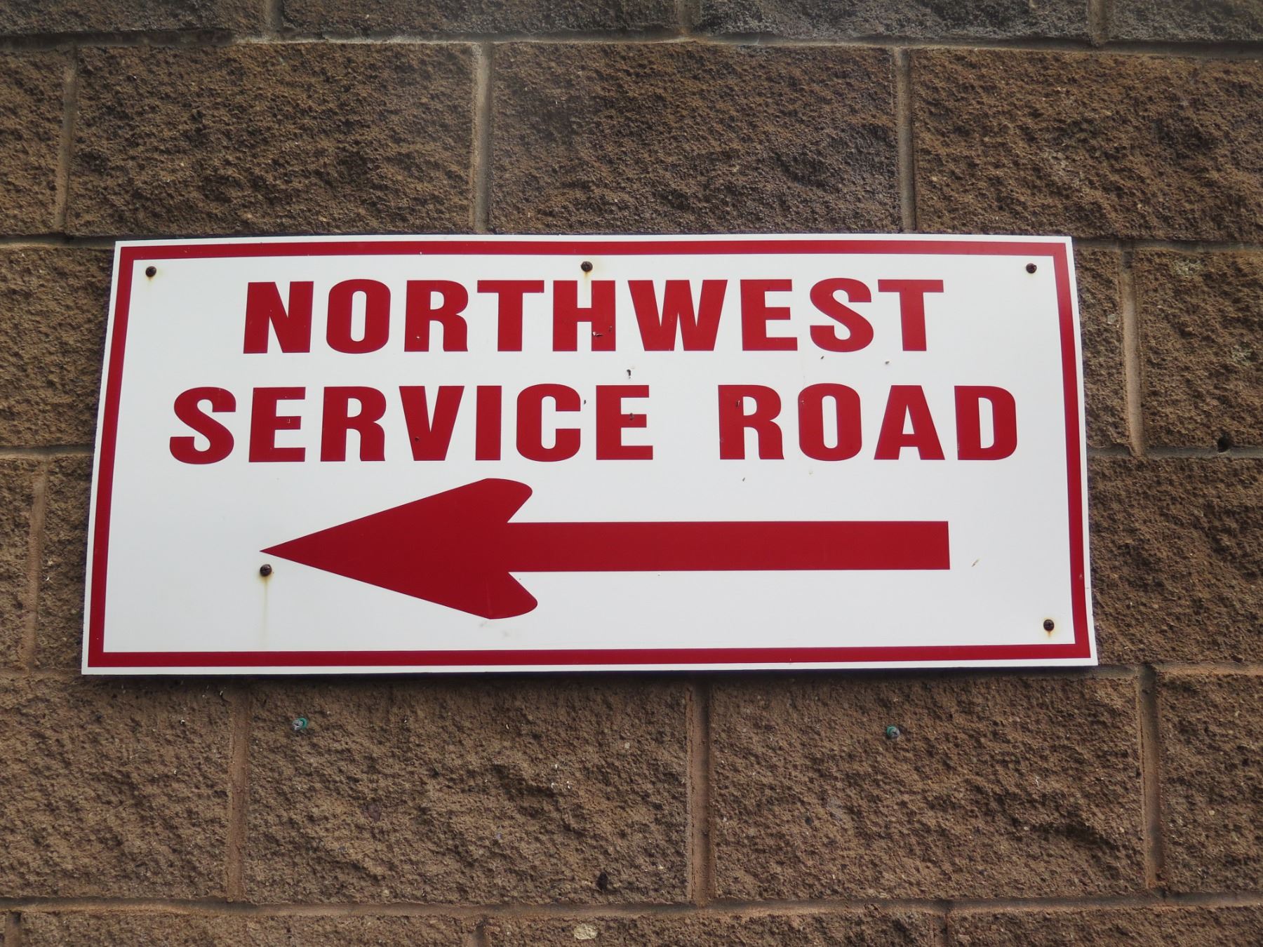 Northwest Service Road w/ Arrow Sign 36"x16". Note: Signs will be removed if hanging prior to pick up