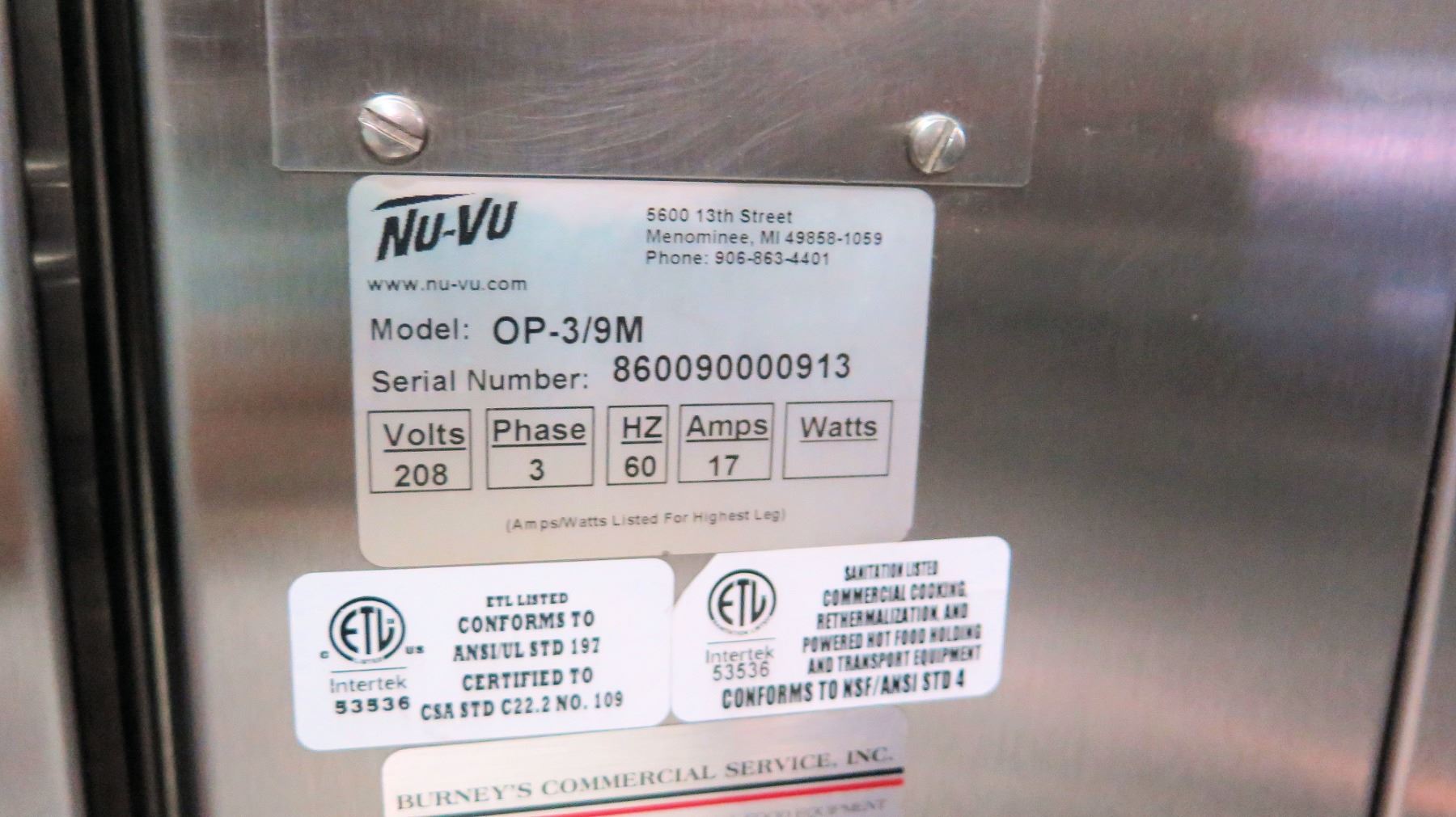 Nu-Vu Double Deck Proofer Oven Combo, 3-Phase, Model OP-3/9M