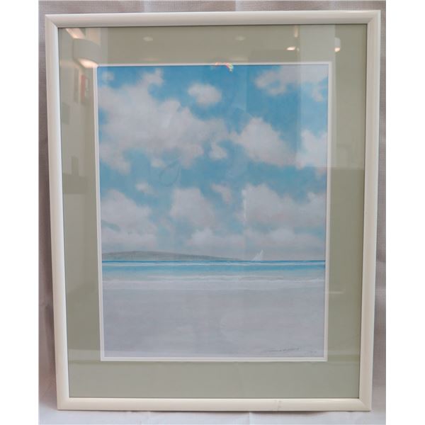 Beach Art Work Signed by Artist Lowrey Matted & Framed 27"x34"