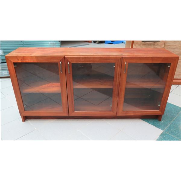 Wood 3 Section Sideboard Cabinet w/ Glass Doors & Inside Shelf 60"x13"x29"