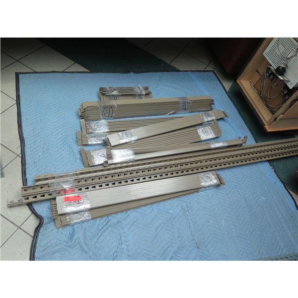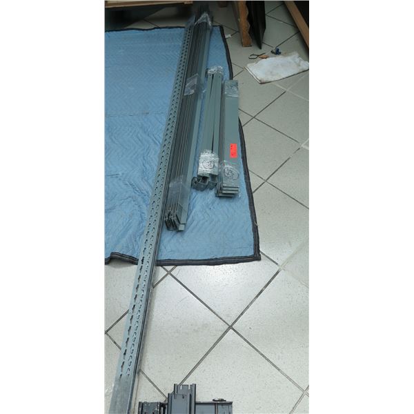 Gray Metal Shelving Unit 95" Tall w/Corner Spines, Hardware & 10 Pressboard Shelving Sheets 96"Tall. See last photos for picture of p...