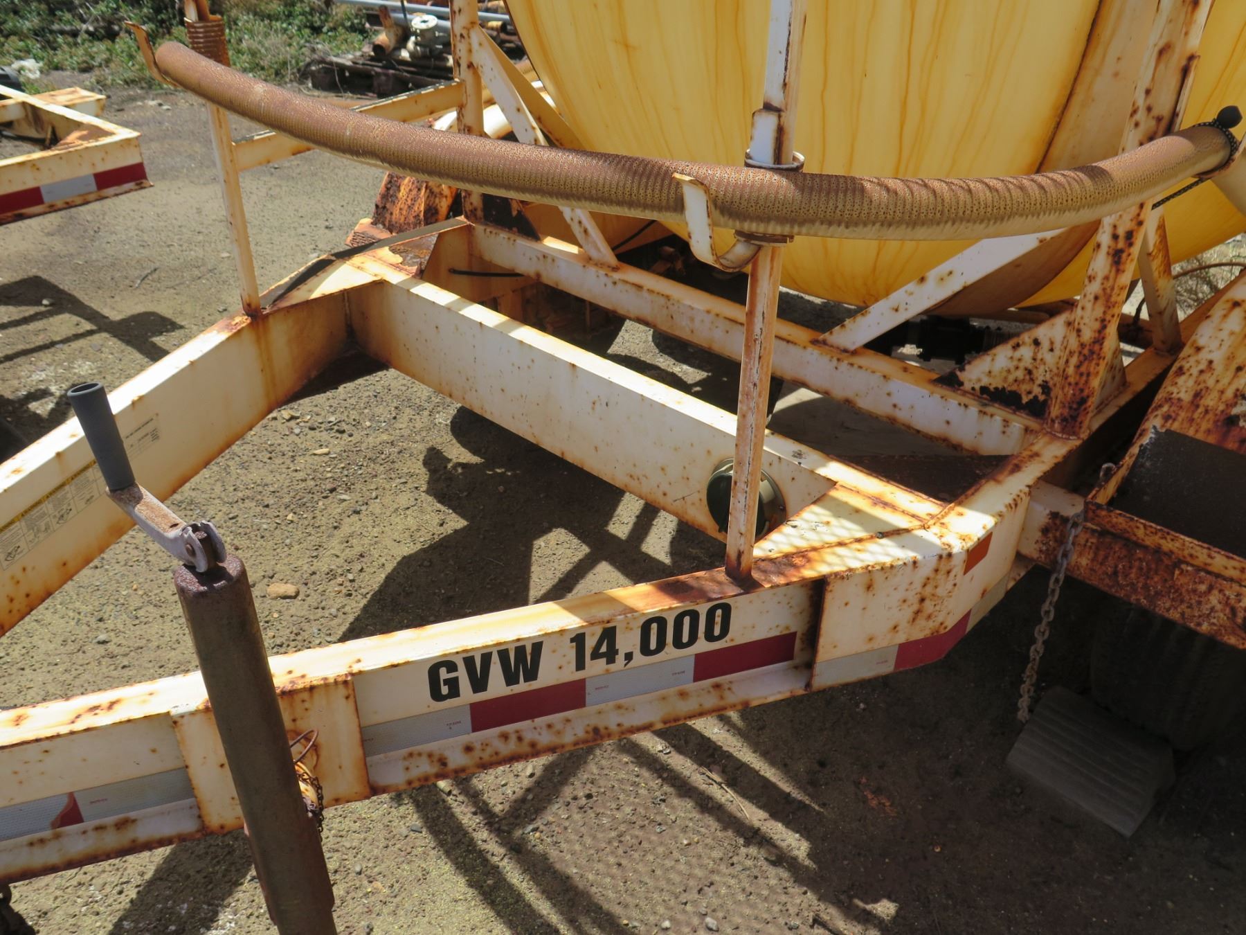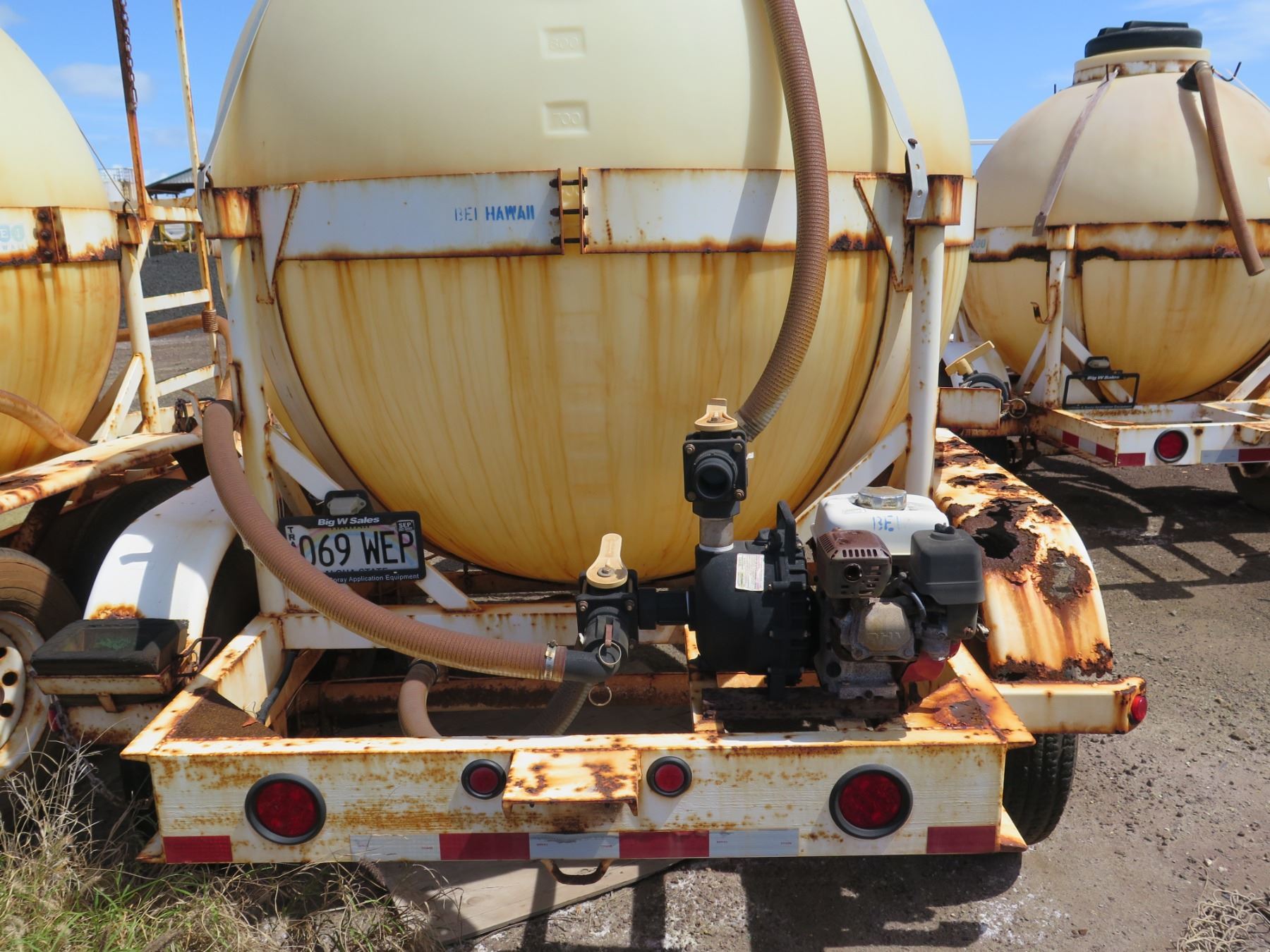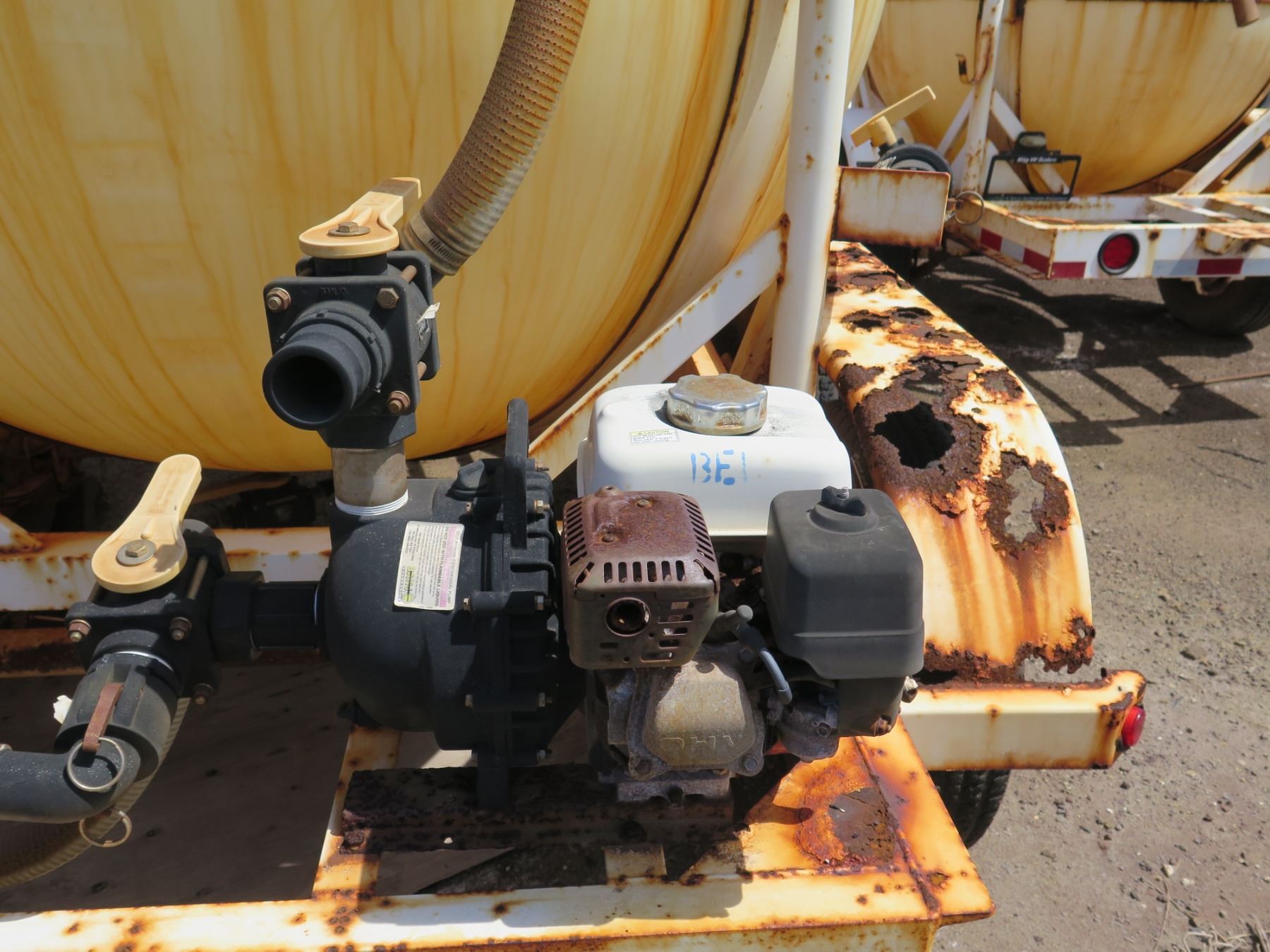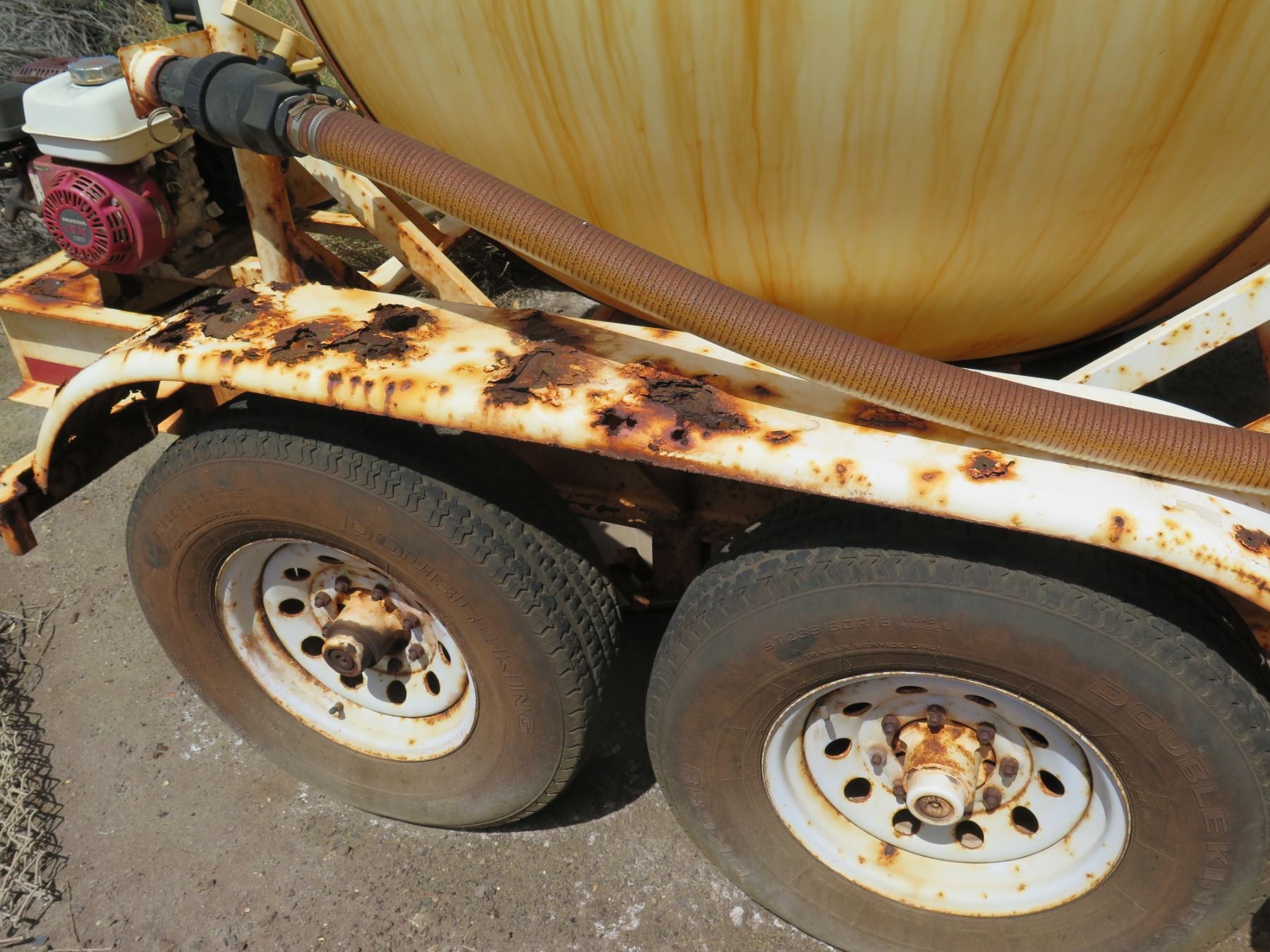 1000-Gallon Ball Tank on Trailer w/ Pump (Pump Untested). This has never been registered and does not come with a title or any kind of paperwork.