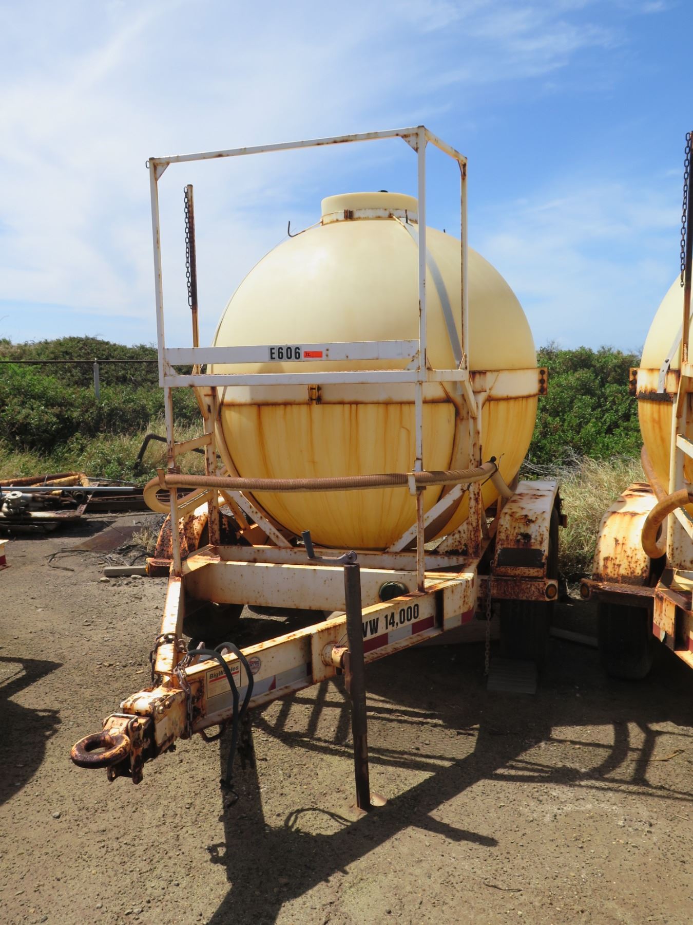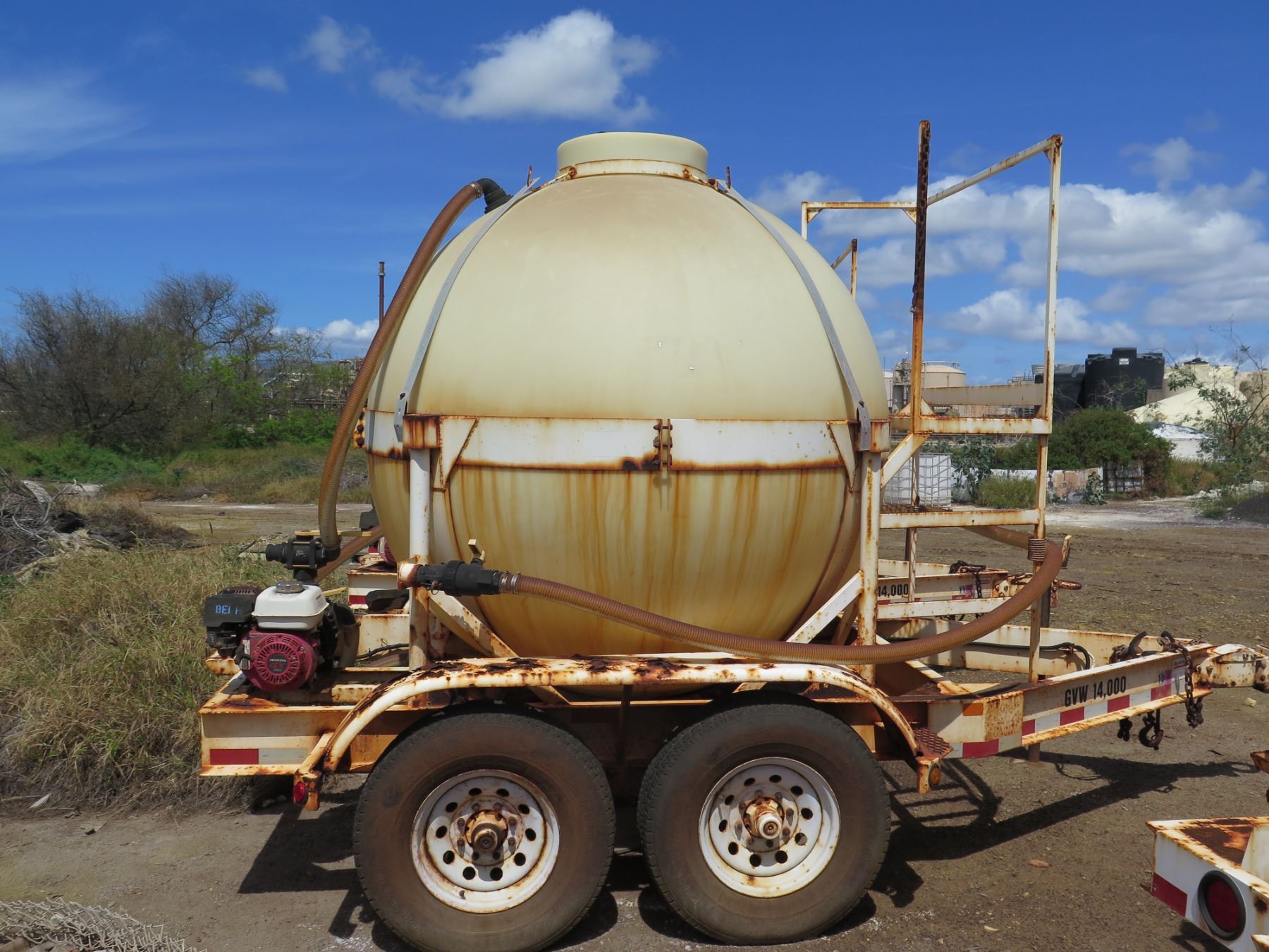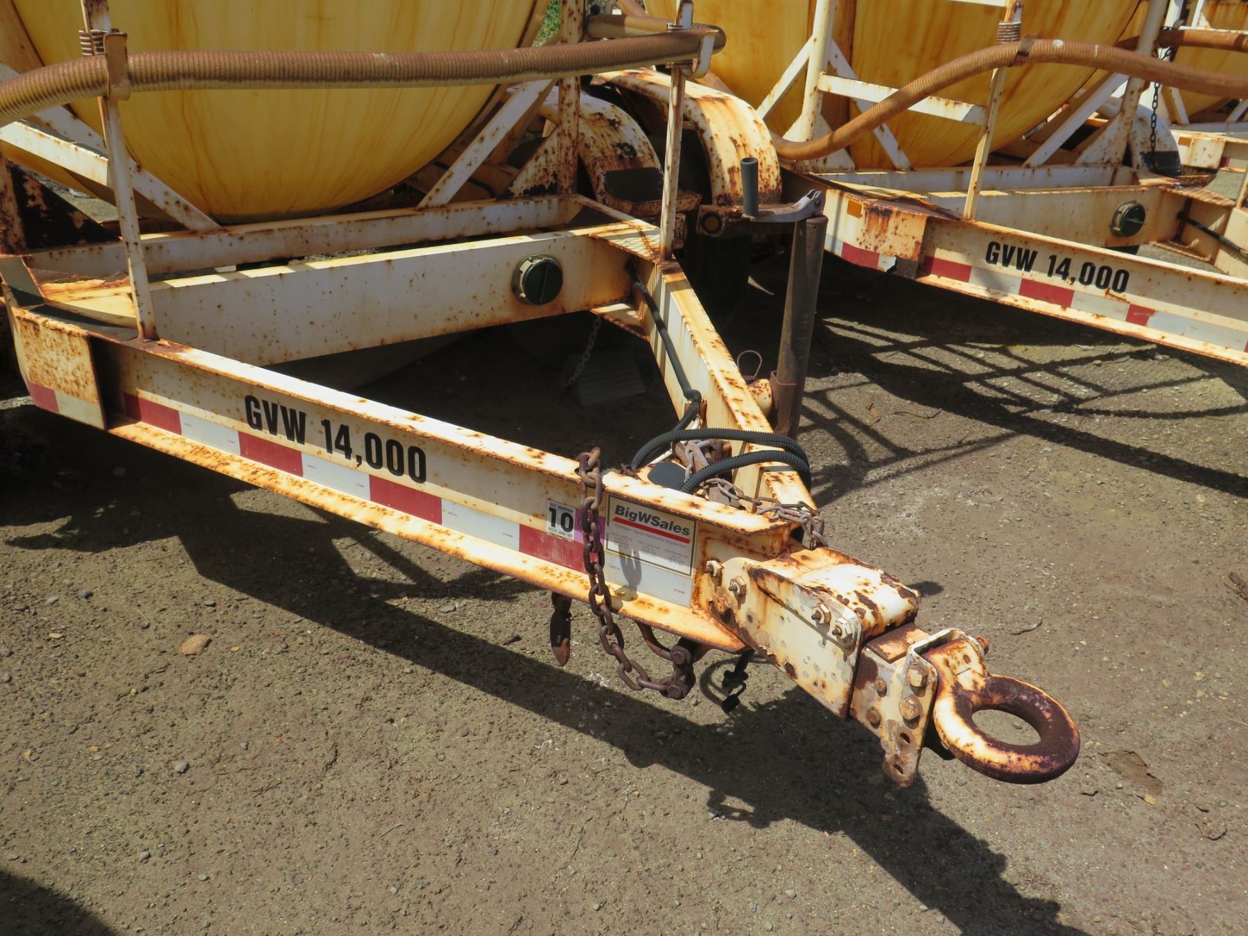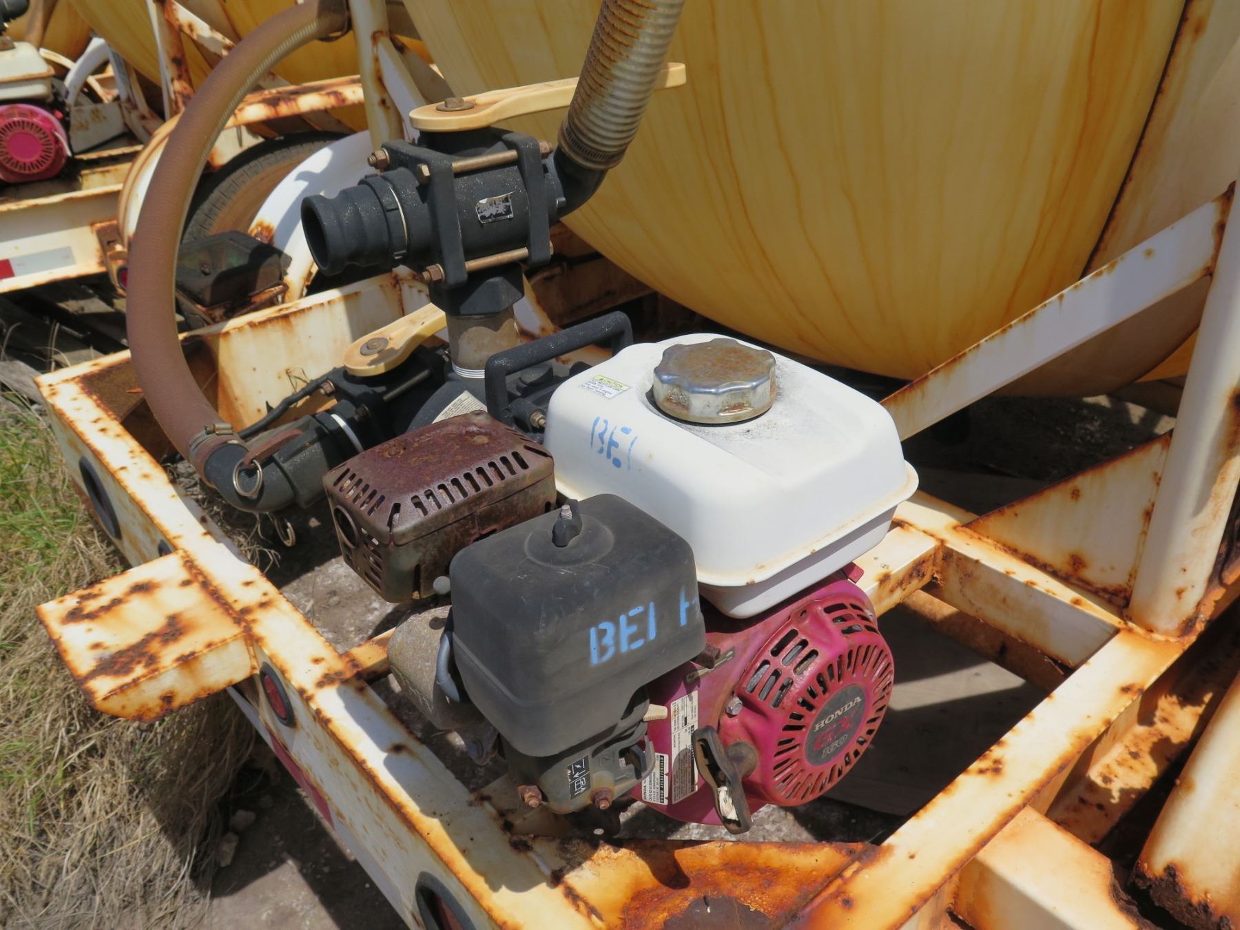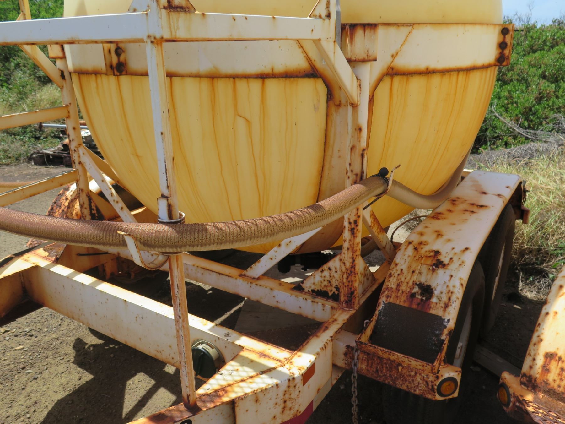 1000-Gallon Ball Tank on Trailer w/ Pump (Pump Untested). This has never been registered and does not come with a title or any kind of paperwork.