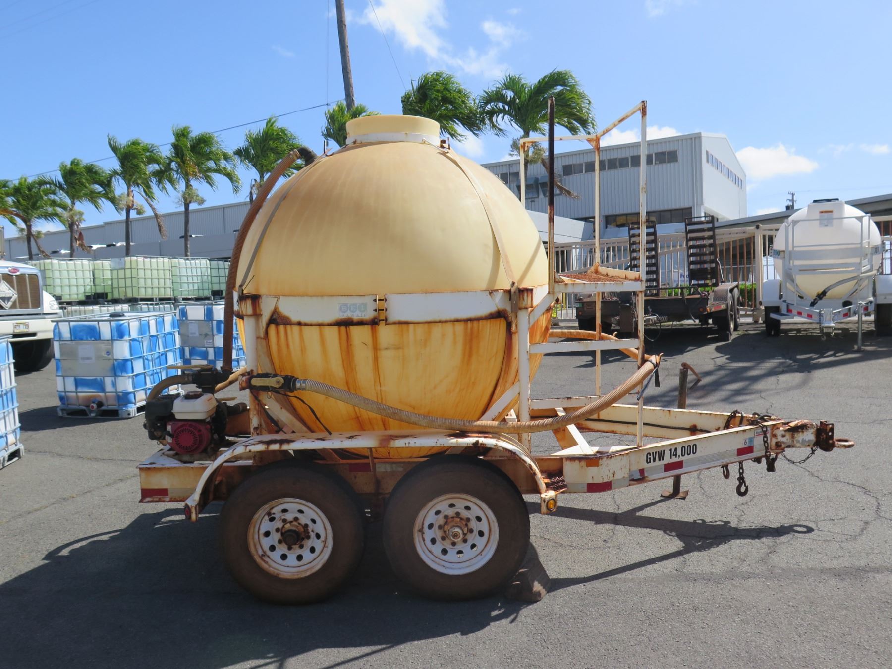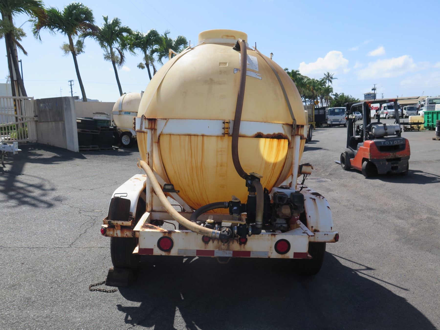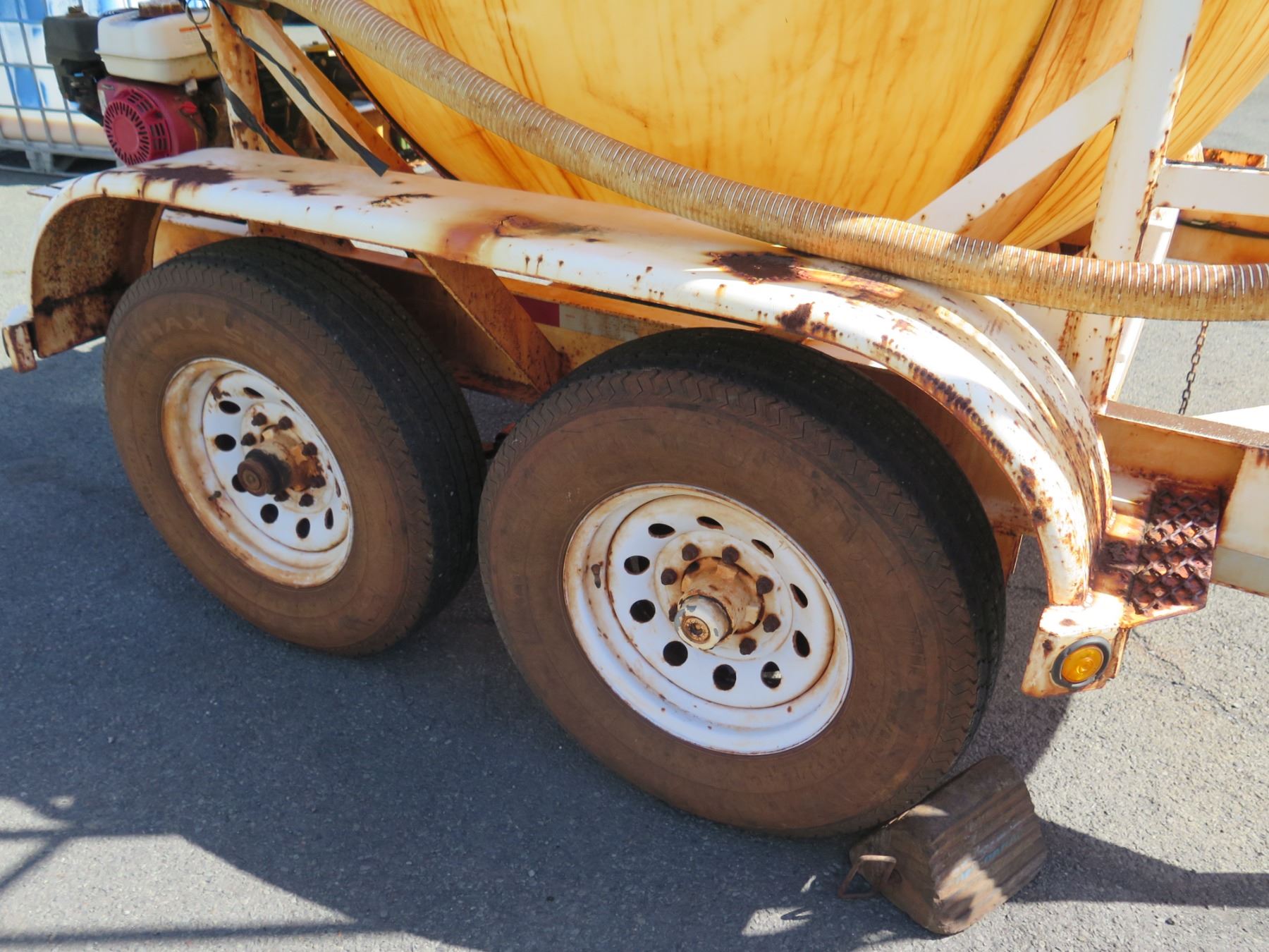 1000-Gallon Fertilizer Ball Tank on Trailer w/ Honda Pump. Motor Runs. This has never been registered and does not come with a title or any kind of paperwork.