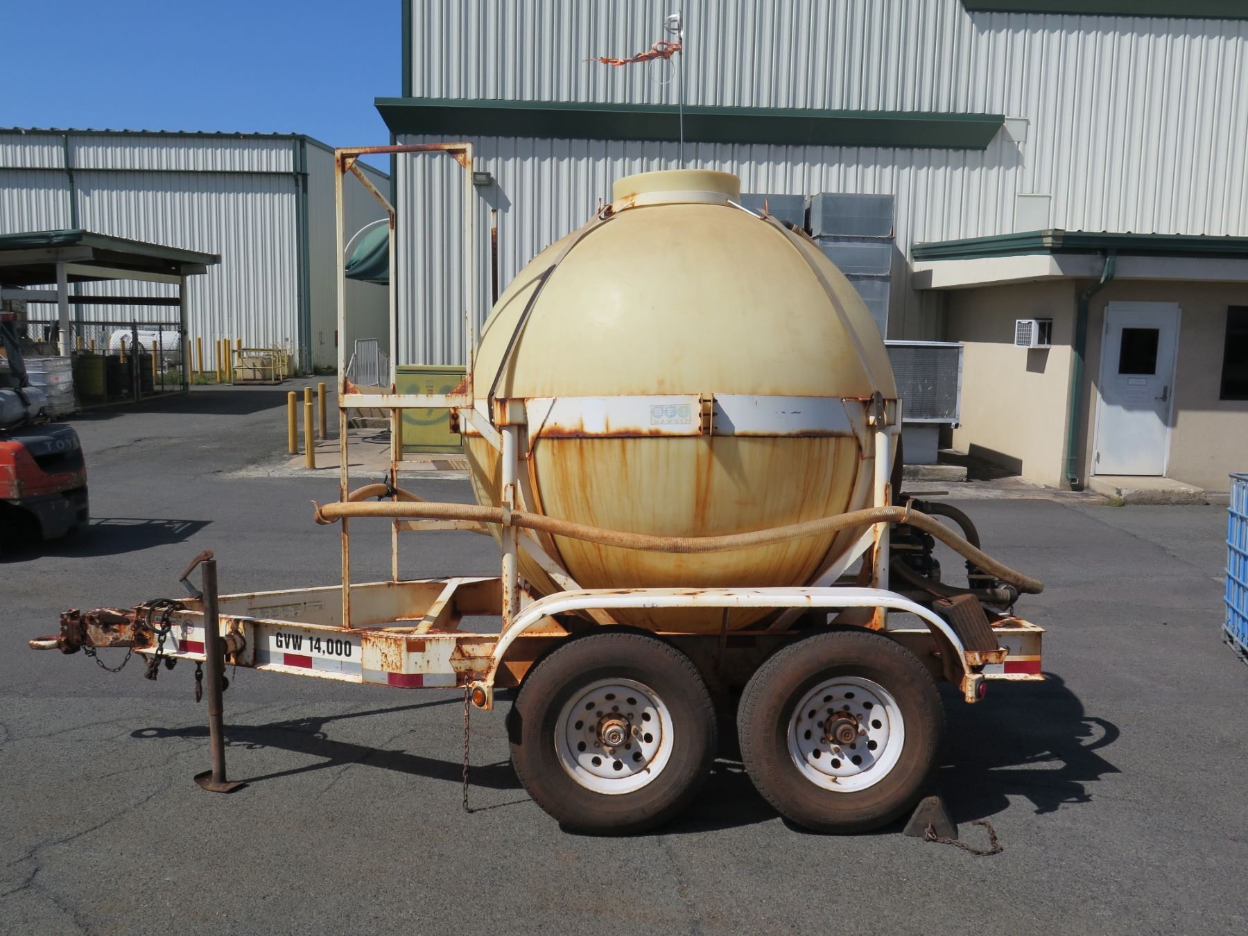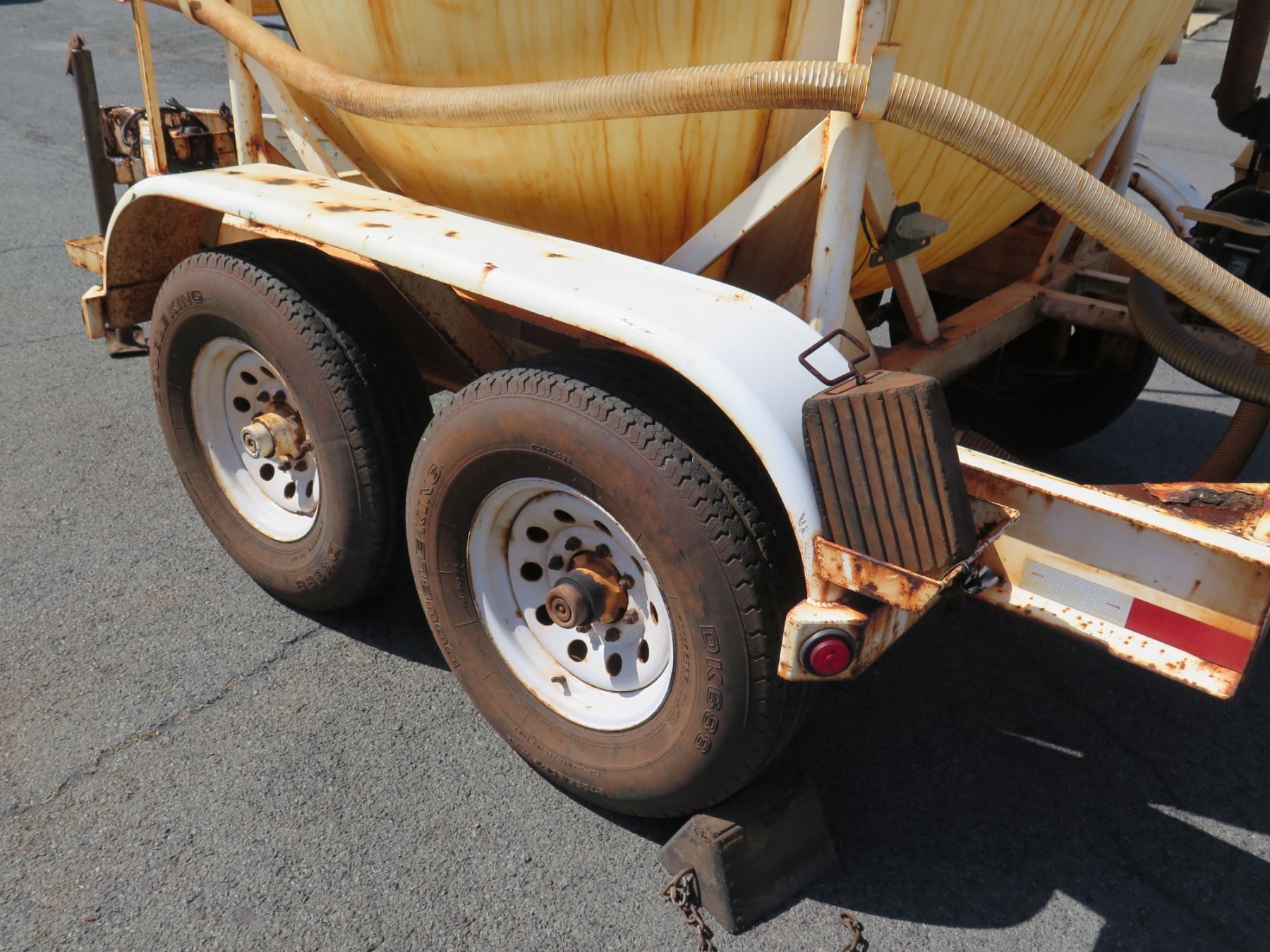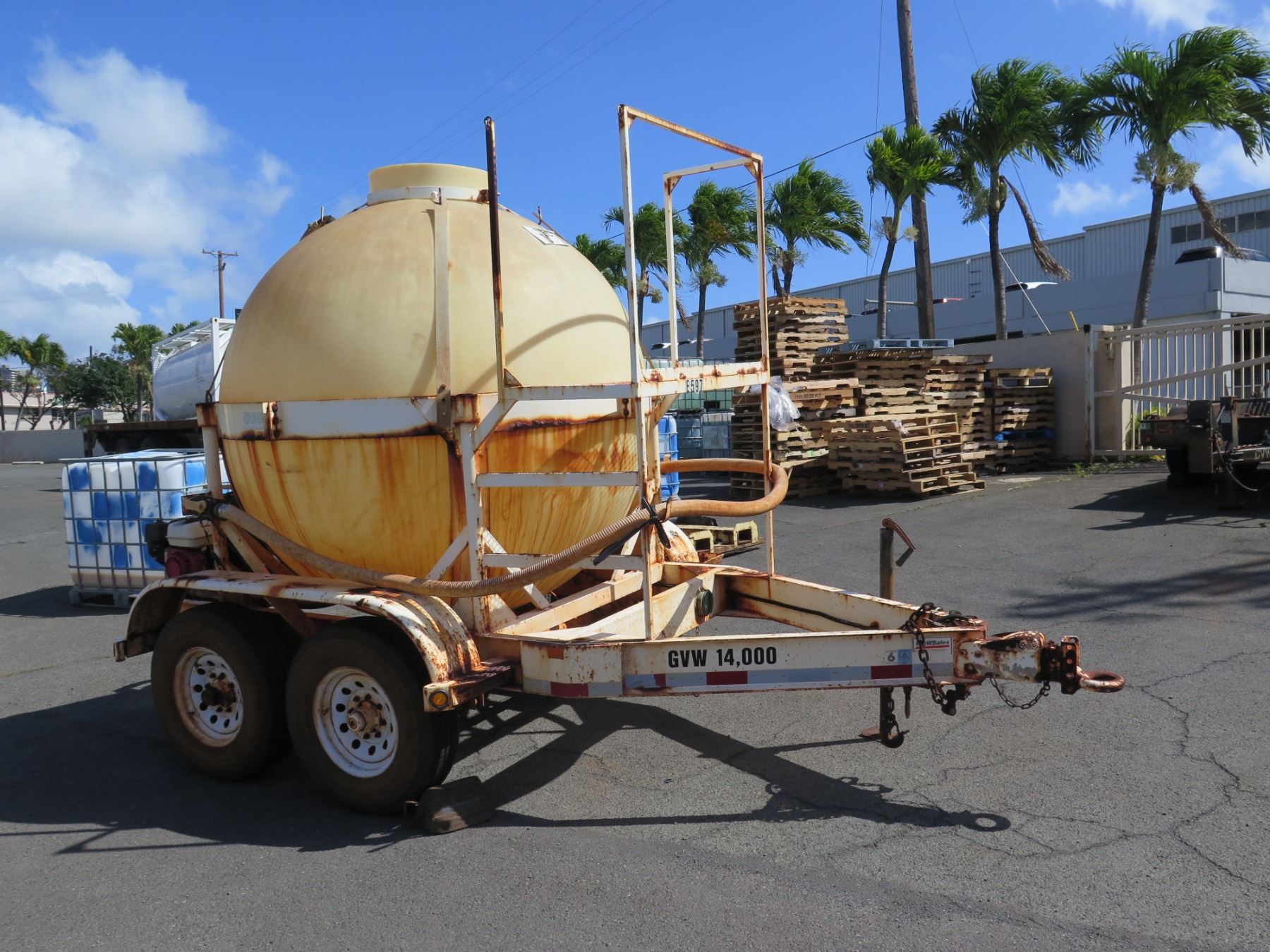 1000-Gallon Fertilizer Ball Tank on Trailer w/ Honda Pump. Motor Runs. This has never been registered and does not come with a title or any kind of paperwork.