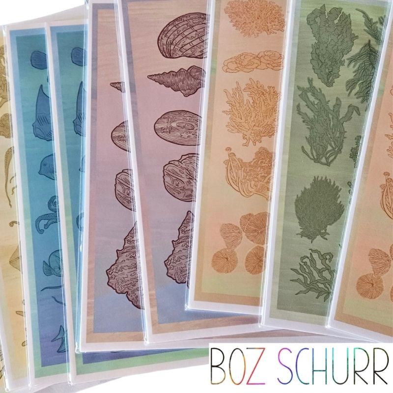 Five 11" x 9" limited edition digital prints (Fish and Friends, Limu, Invertebrates, Corals, and Shells), printed on cold press watercolor paper.