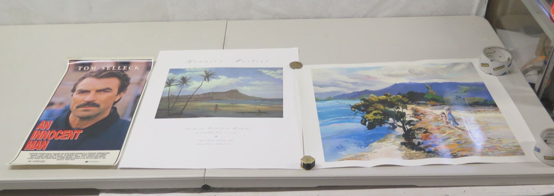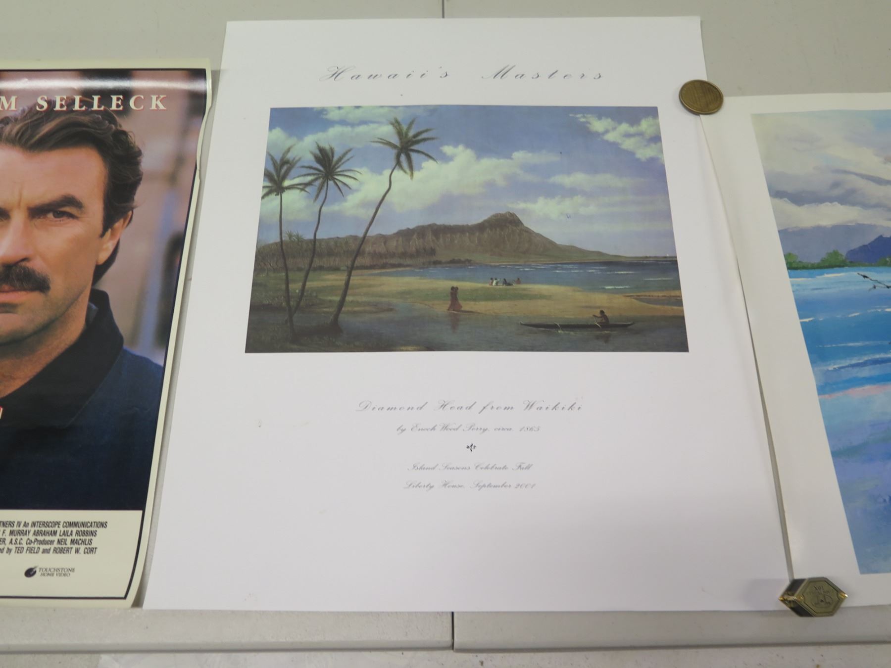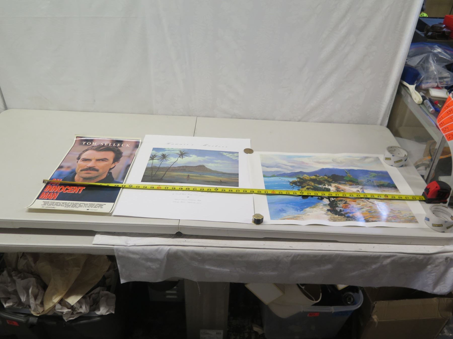 Ocean Scene Artwork Signed by Artist, Hawaii's Masters Promo & Tom Selleck Poster