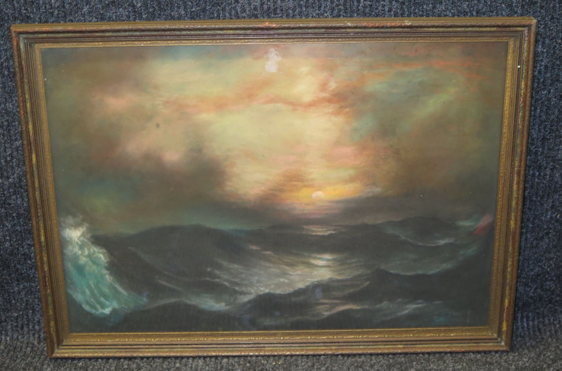 Ocean Scene Artwork Signed by Artist, Wood Framed 22"x16"