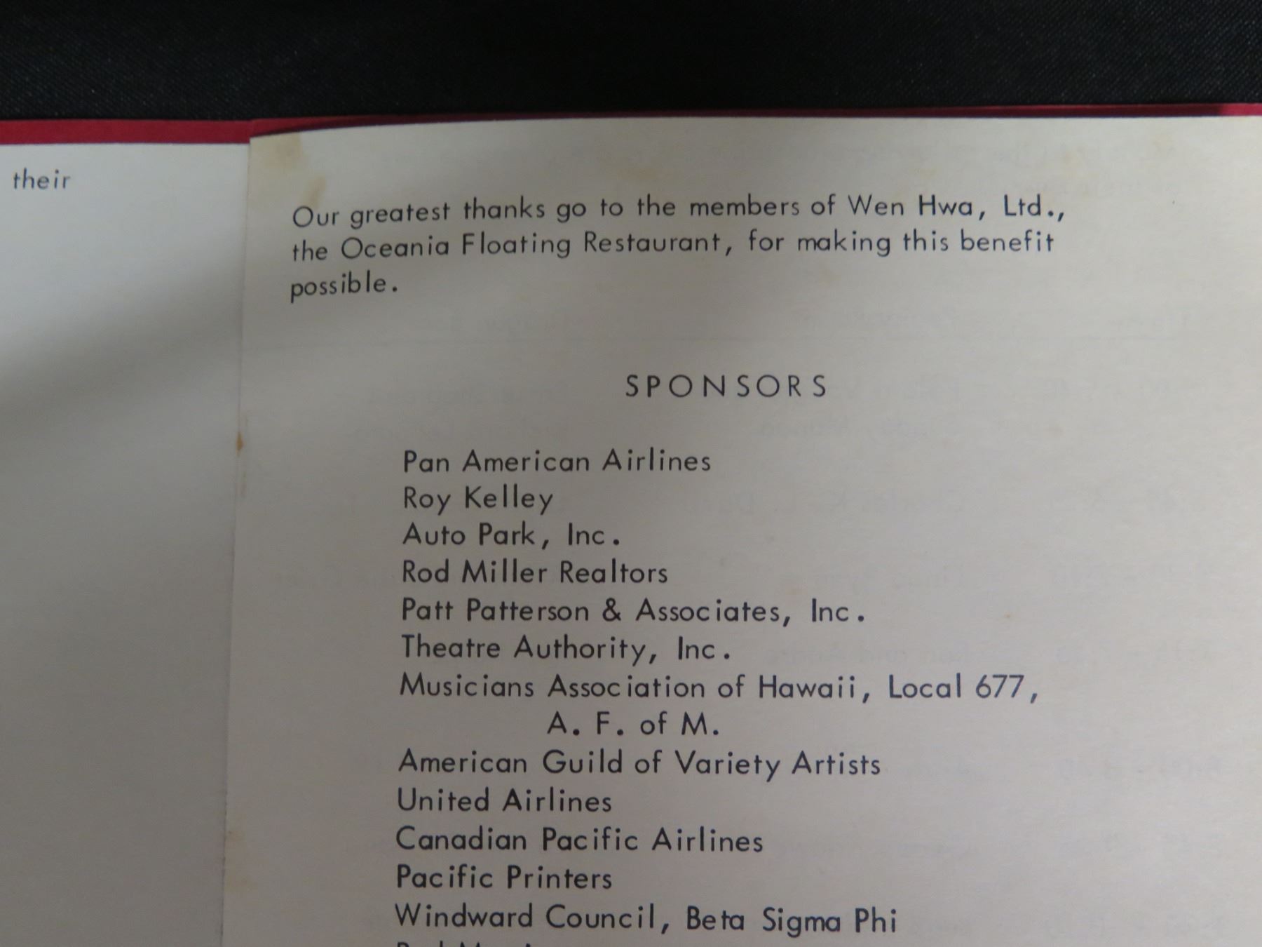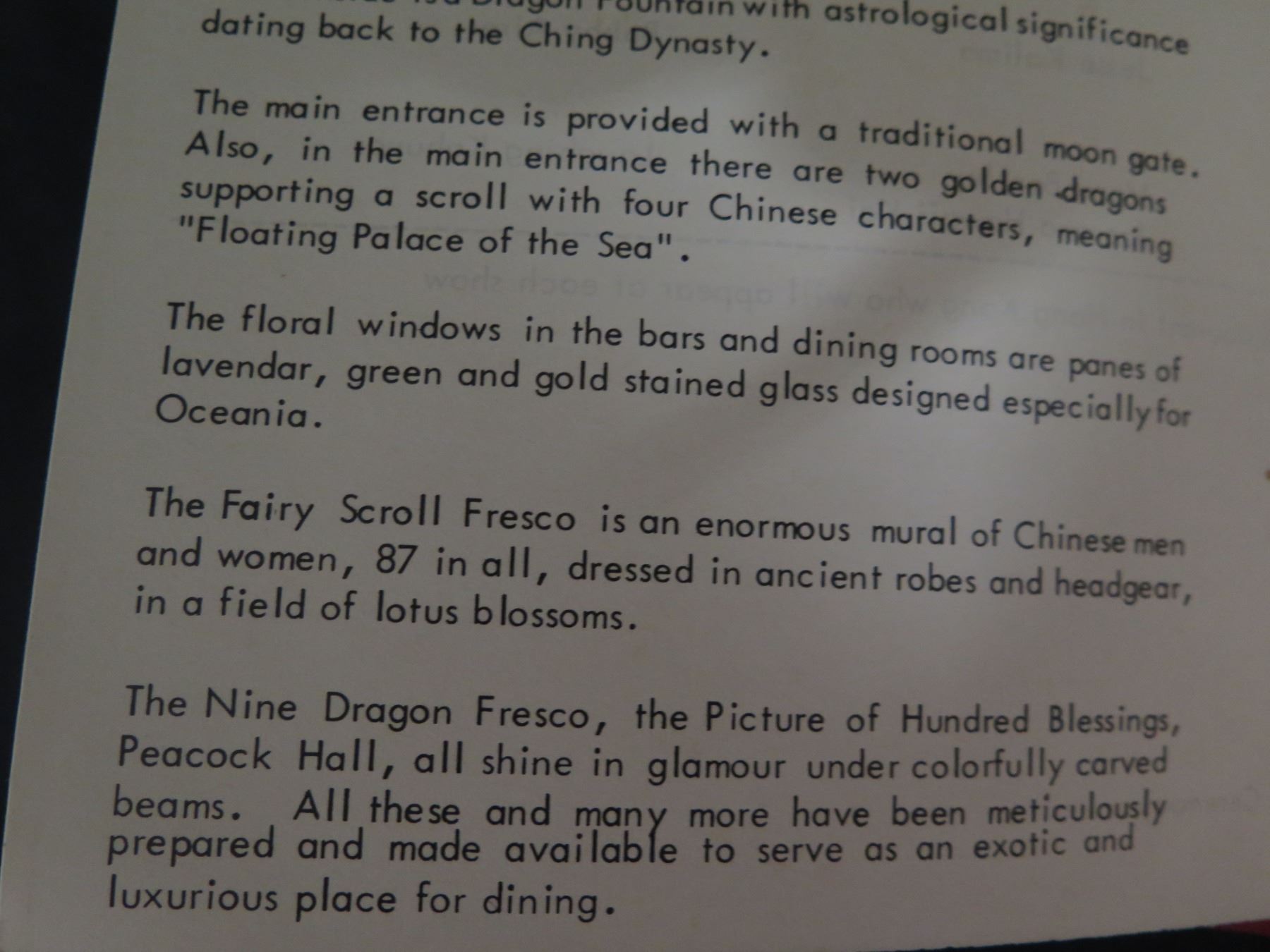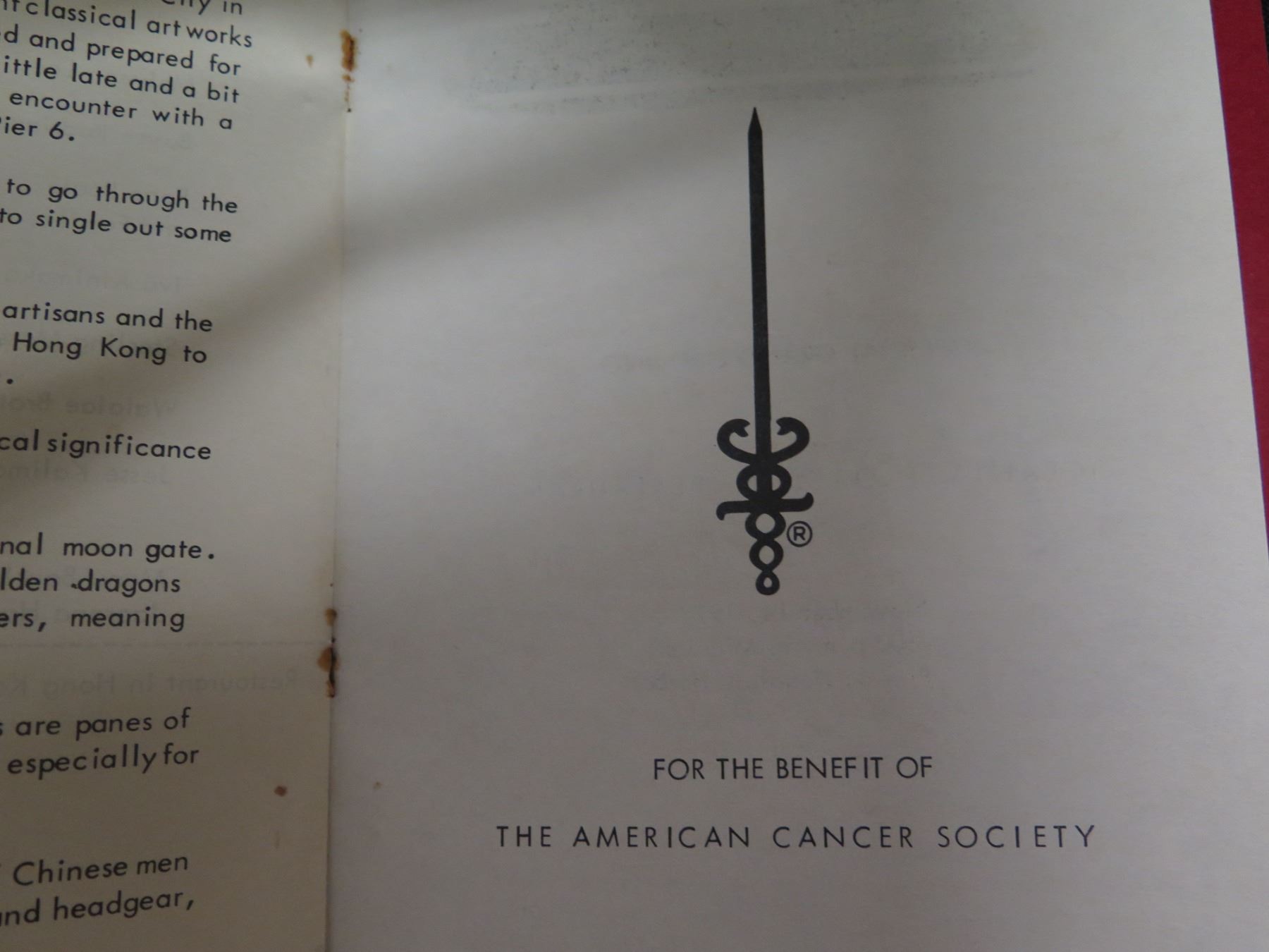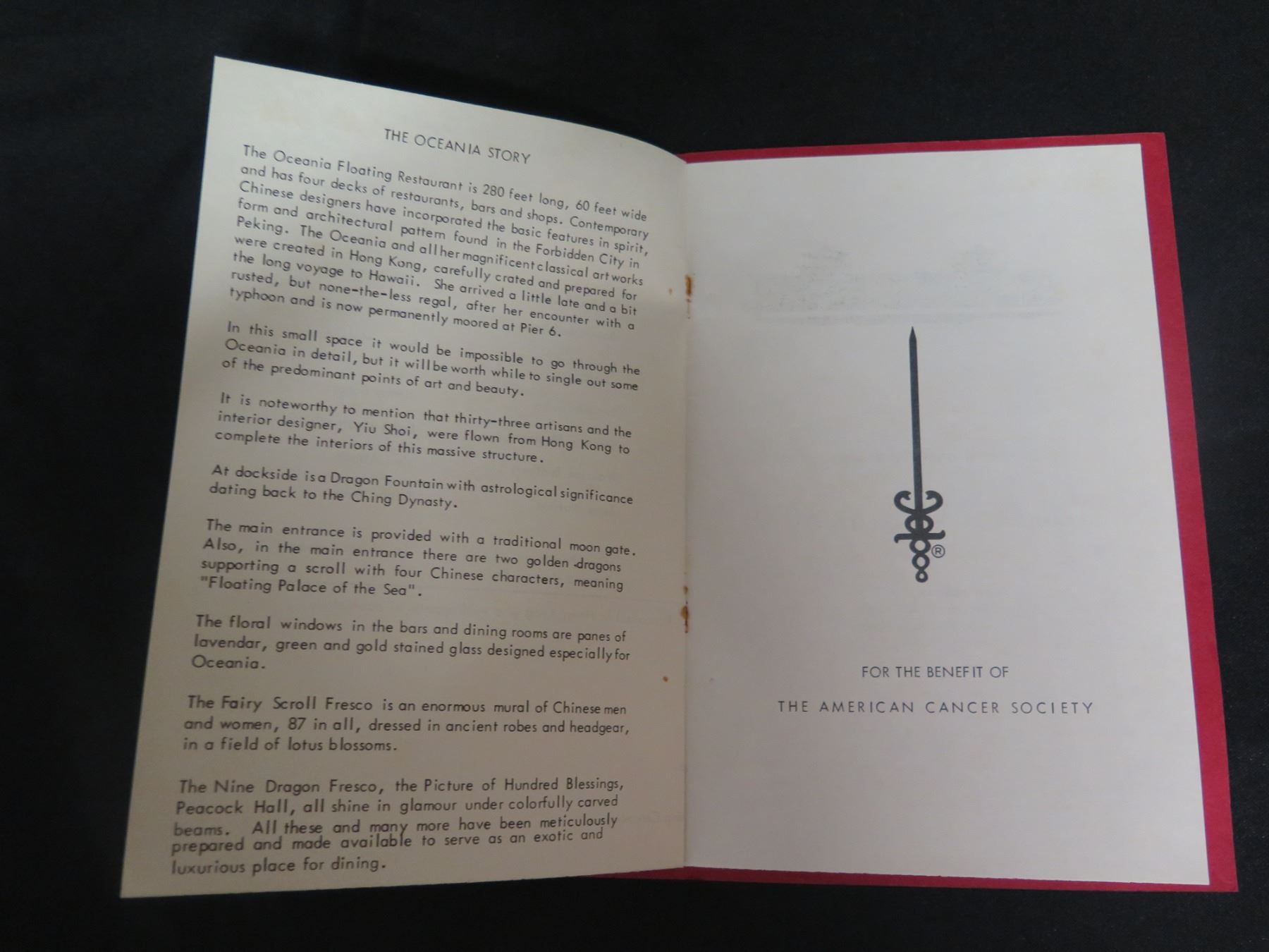 Oceania Floating Restaurant Benefit Program American Cancer Society 11"x9"