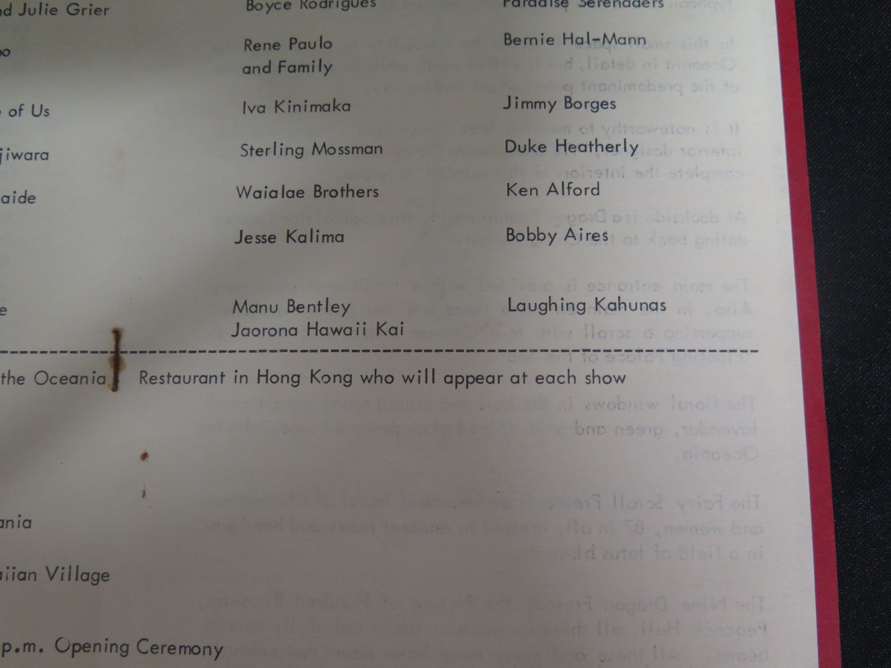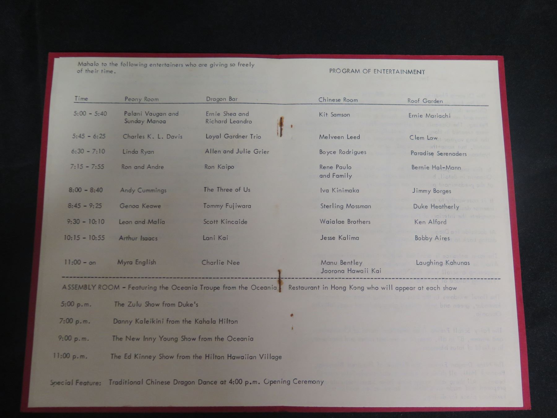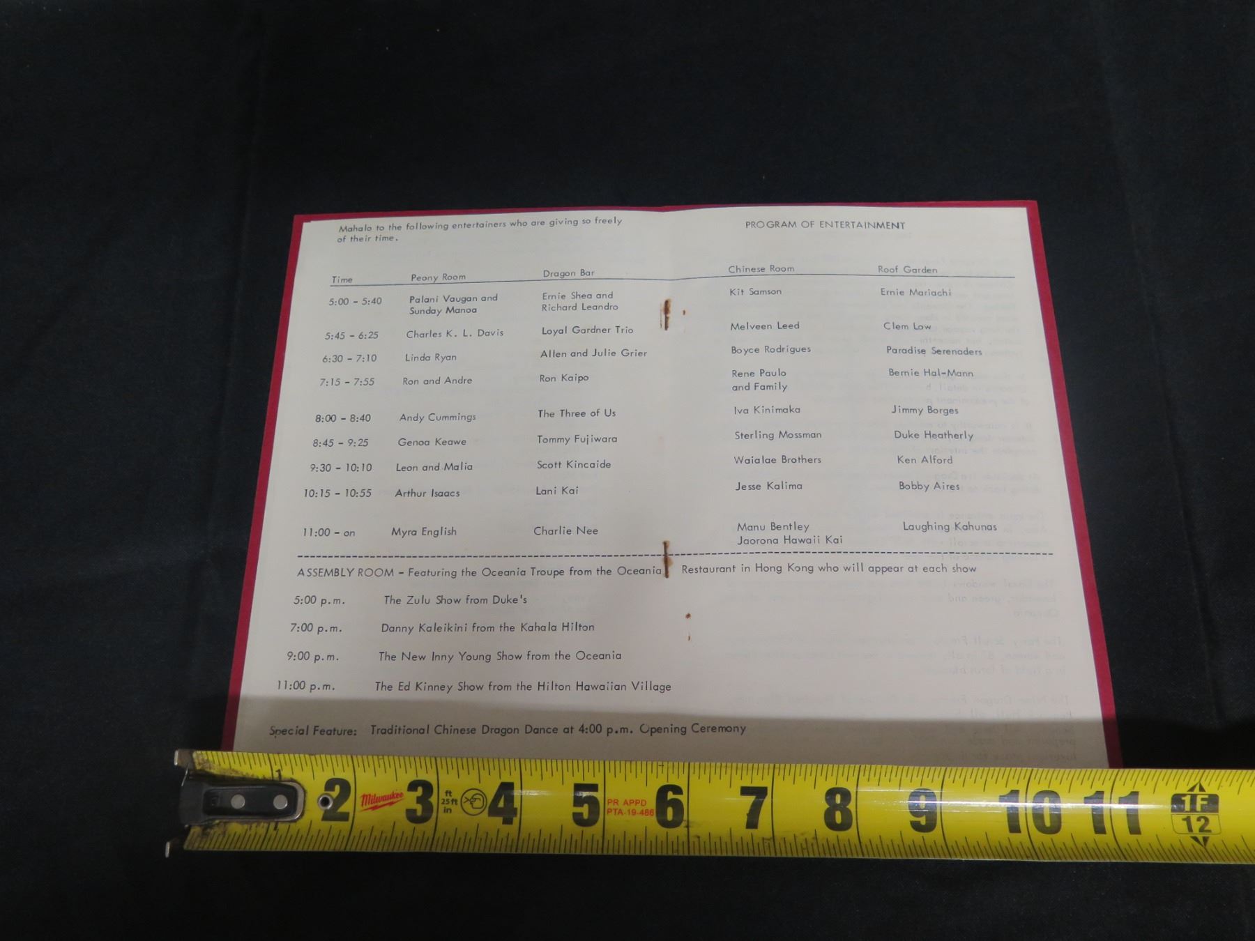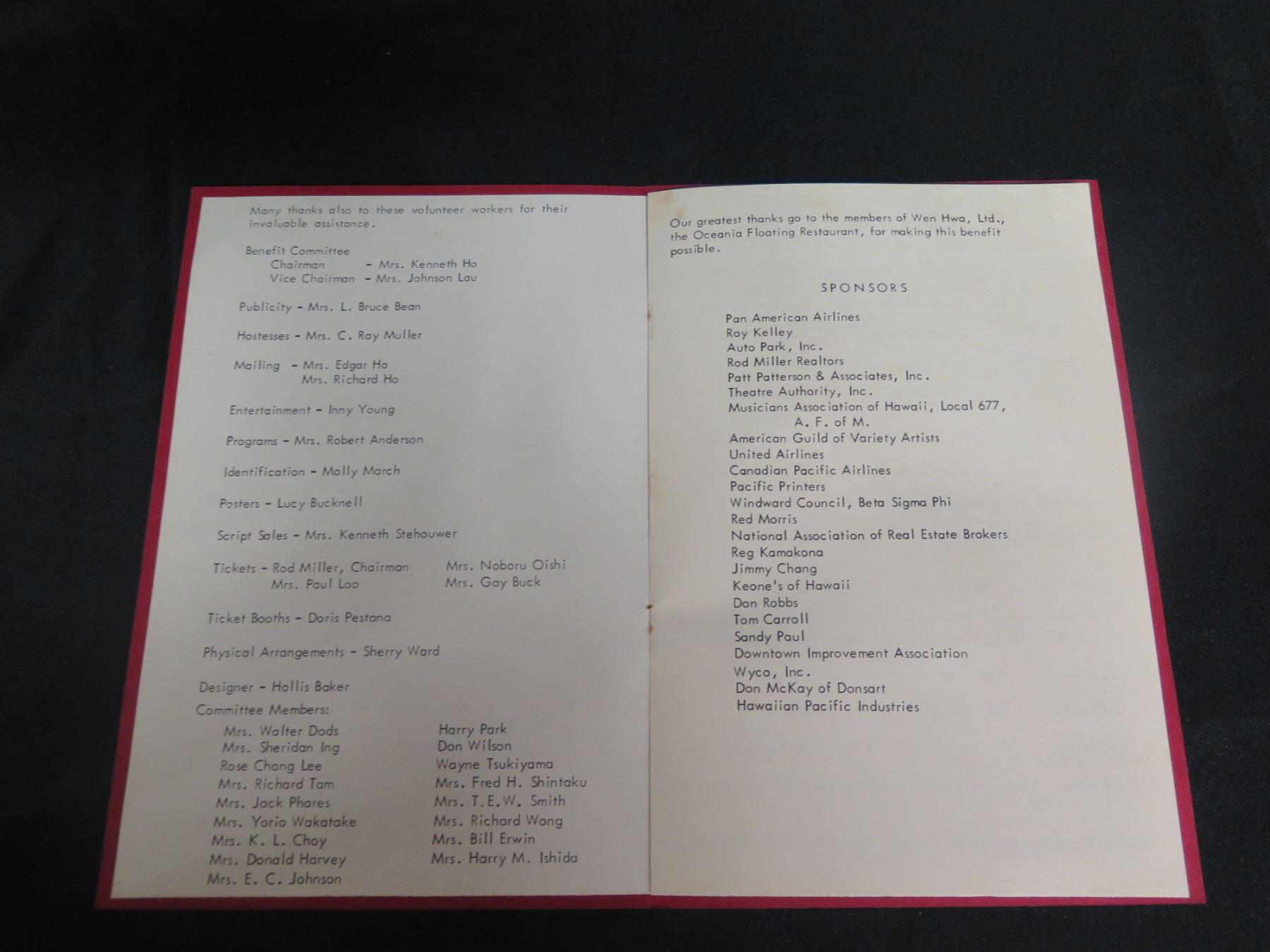 Oceania Floating Restaurant Benefit Program American Cancer Society 11"x9"