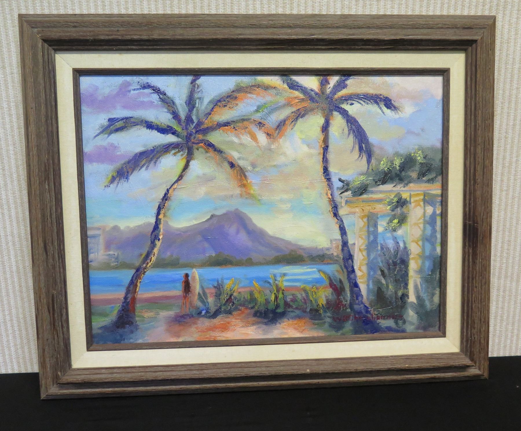 Oil Painting on Canvas. Signed by artist Wayne Christiansen. View of Diamond Head, Framed. Canvas size 16" x 12"