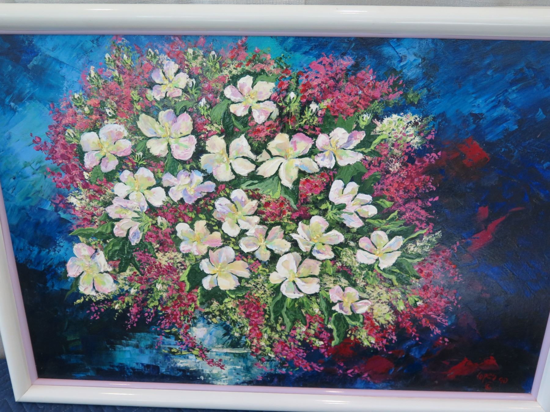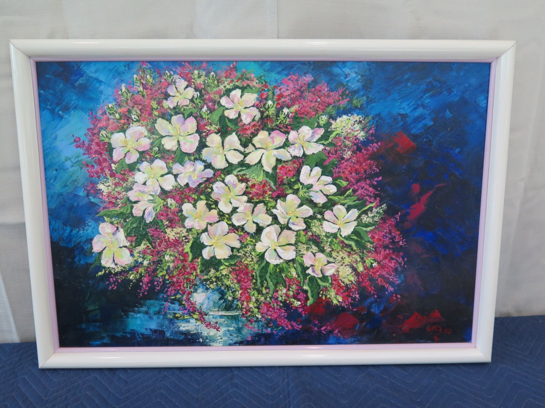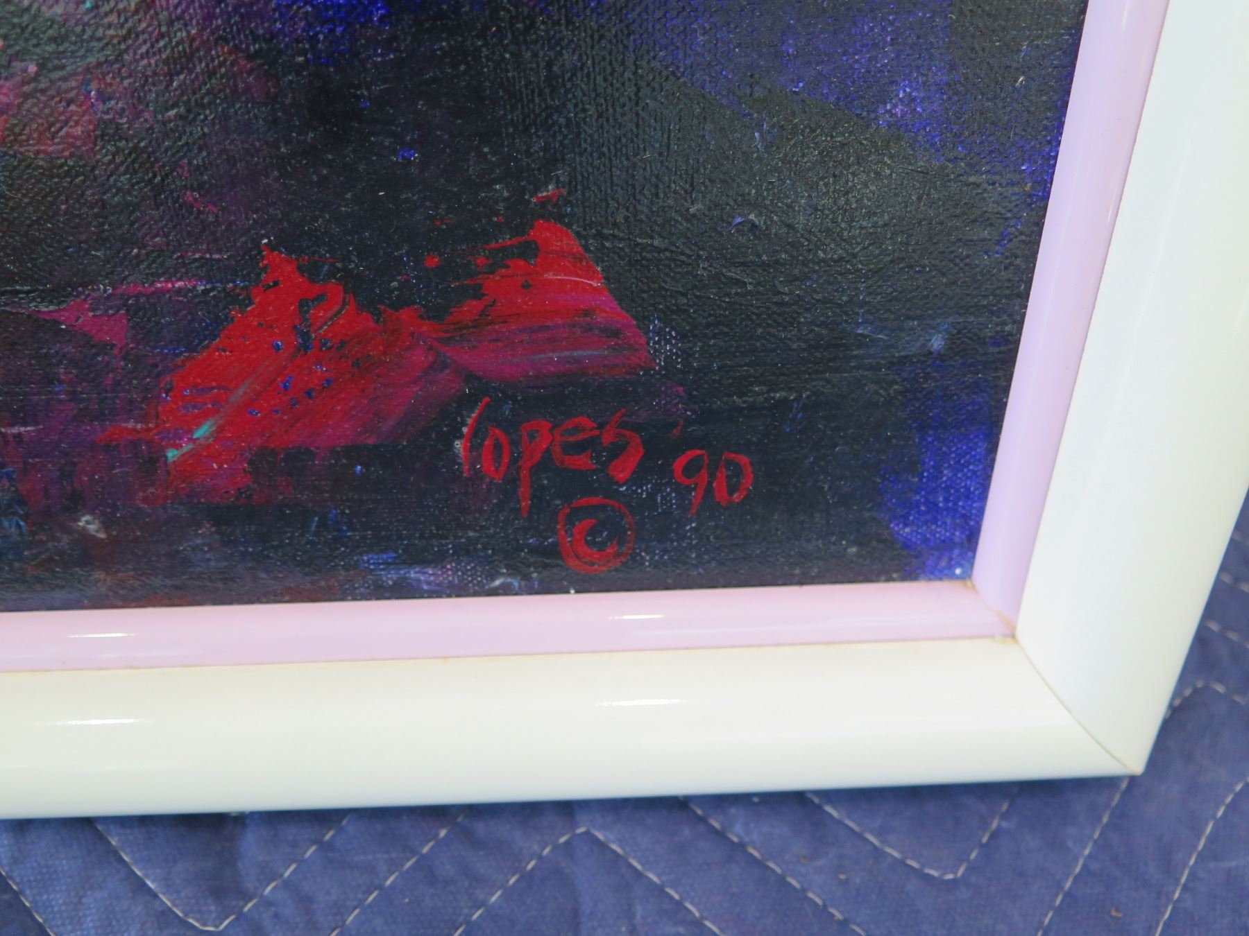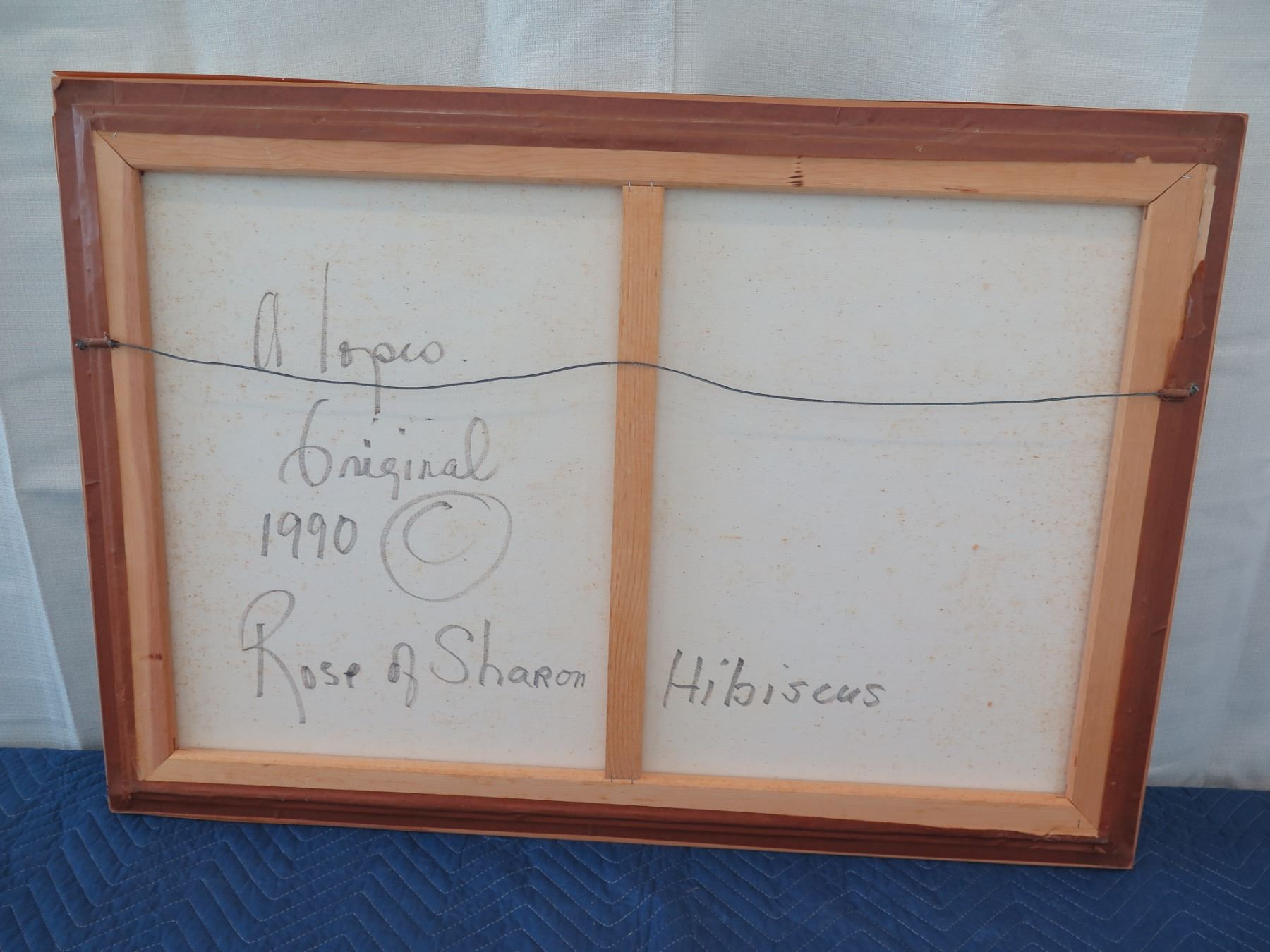 Oil on Canvas by A. Lopez, 1990, Rose of Sharon Hibiscus, 27"x 40"