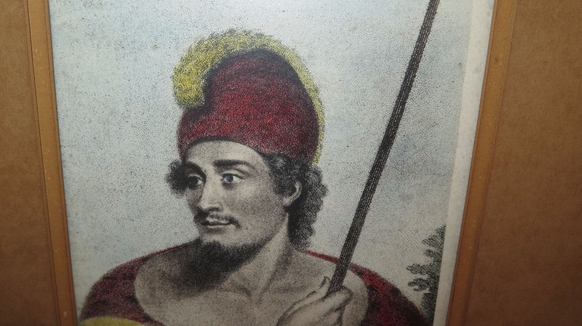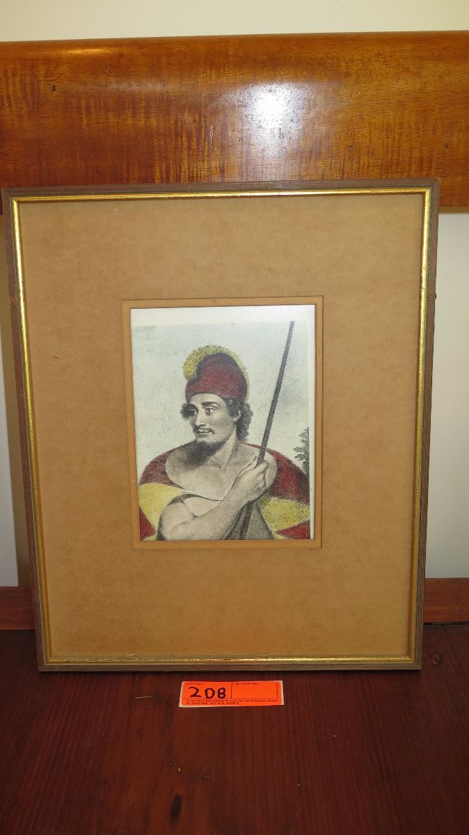 Old Framed Color Print: Hawaiian Man w/Feather Cloak 17X13
