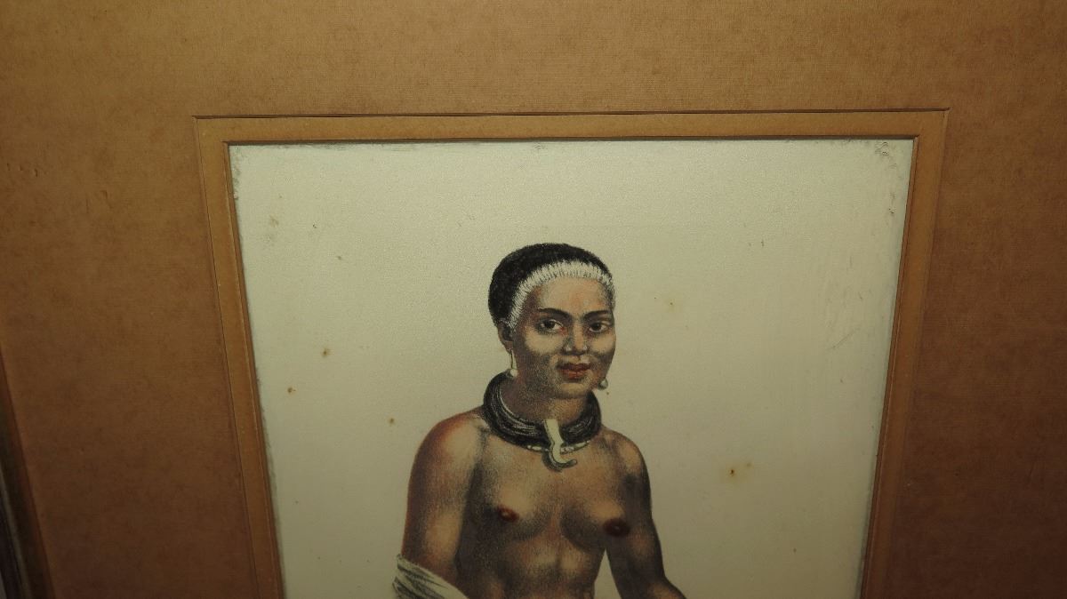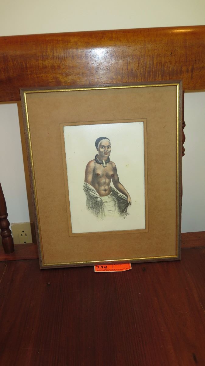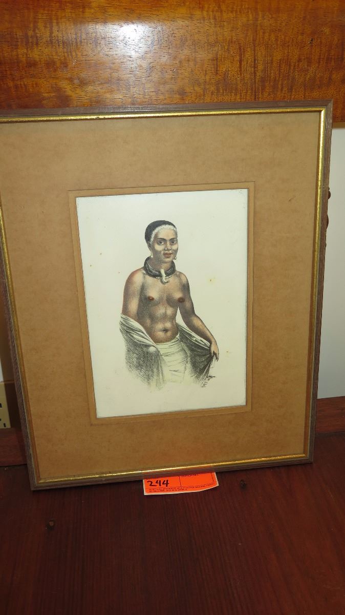 Old Framed Color Print: Hawaiian Noble Woman w/Lei Niho Palaoa 13x16