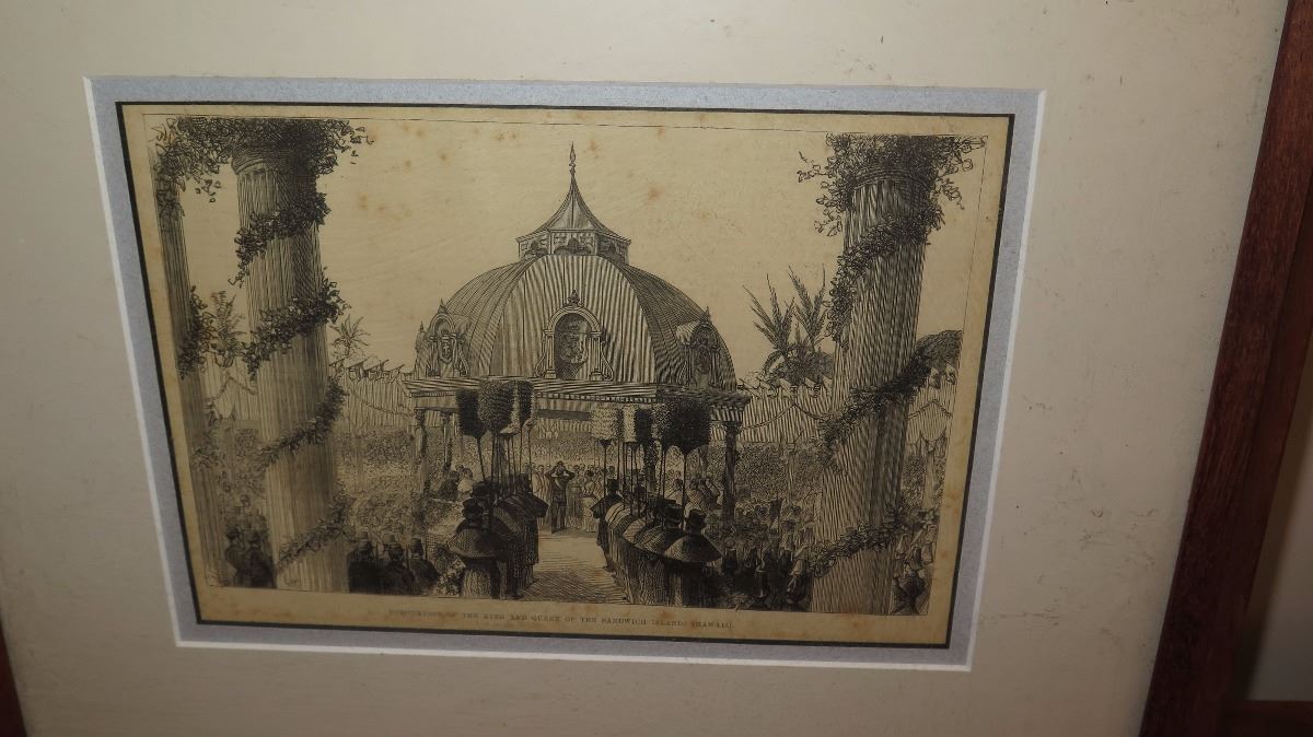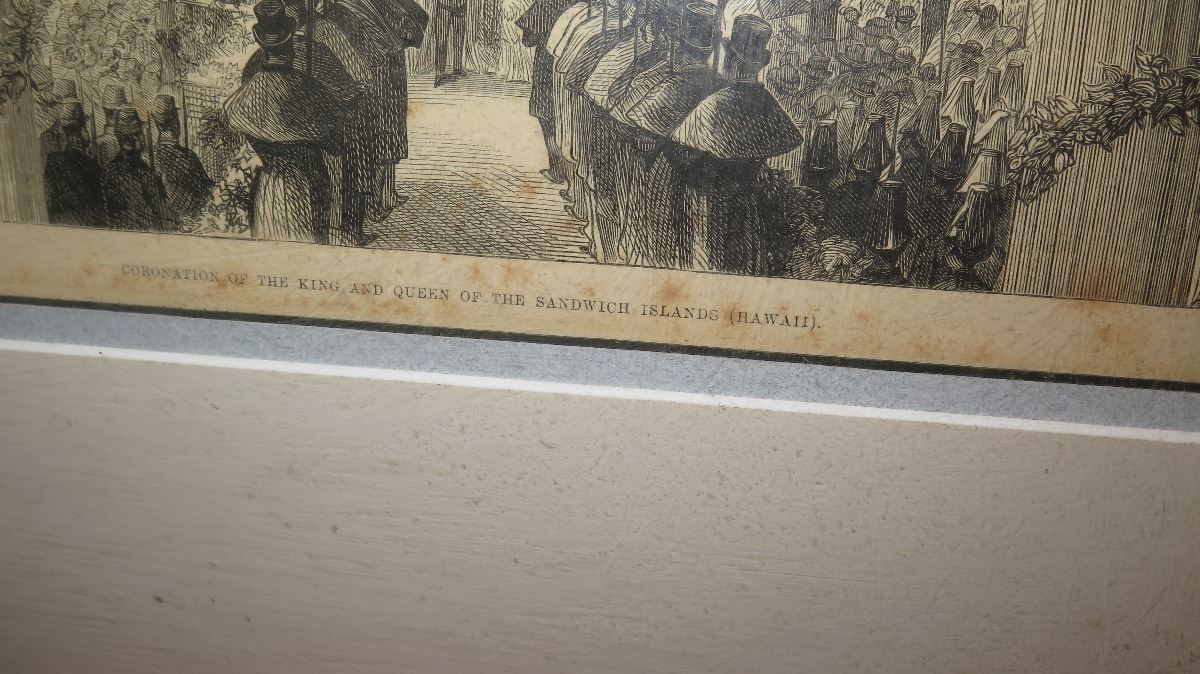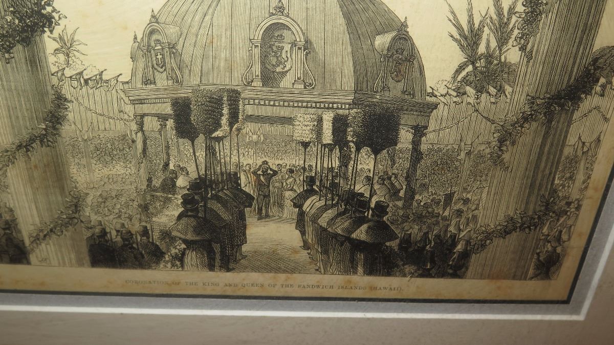 Old Framed Print "Coronation of the King and Queen of the Sandwich Islands" 1883 London News 17X15