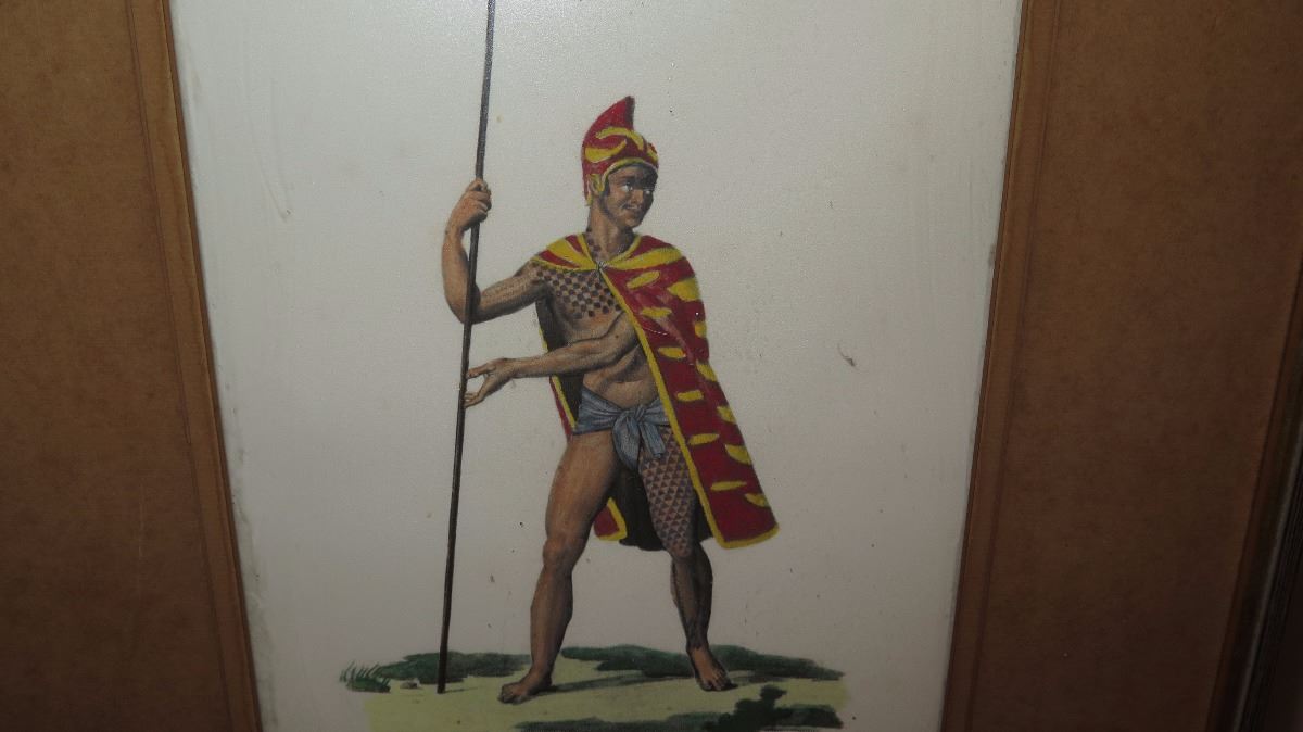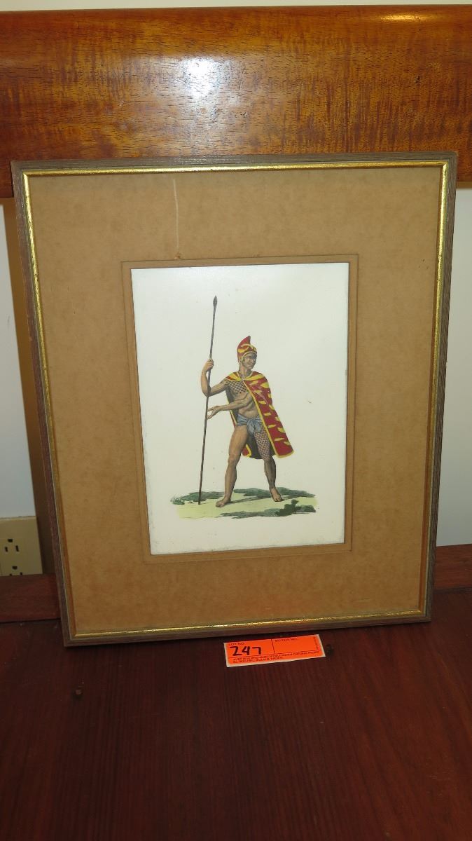Old Framed Print: Hawaiian Chief w/Feather Cloak and Helmet 13x16