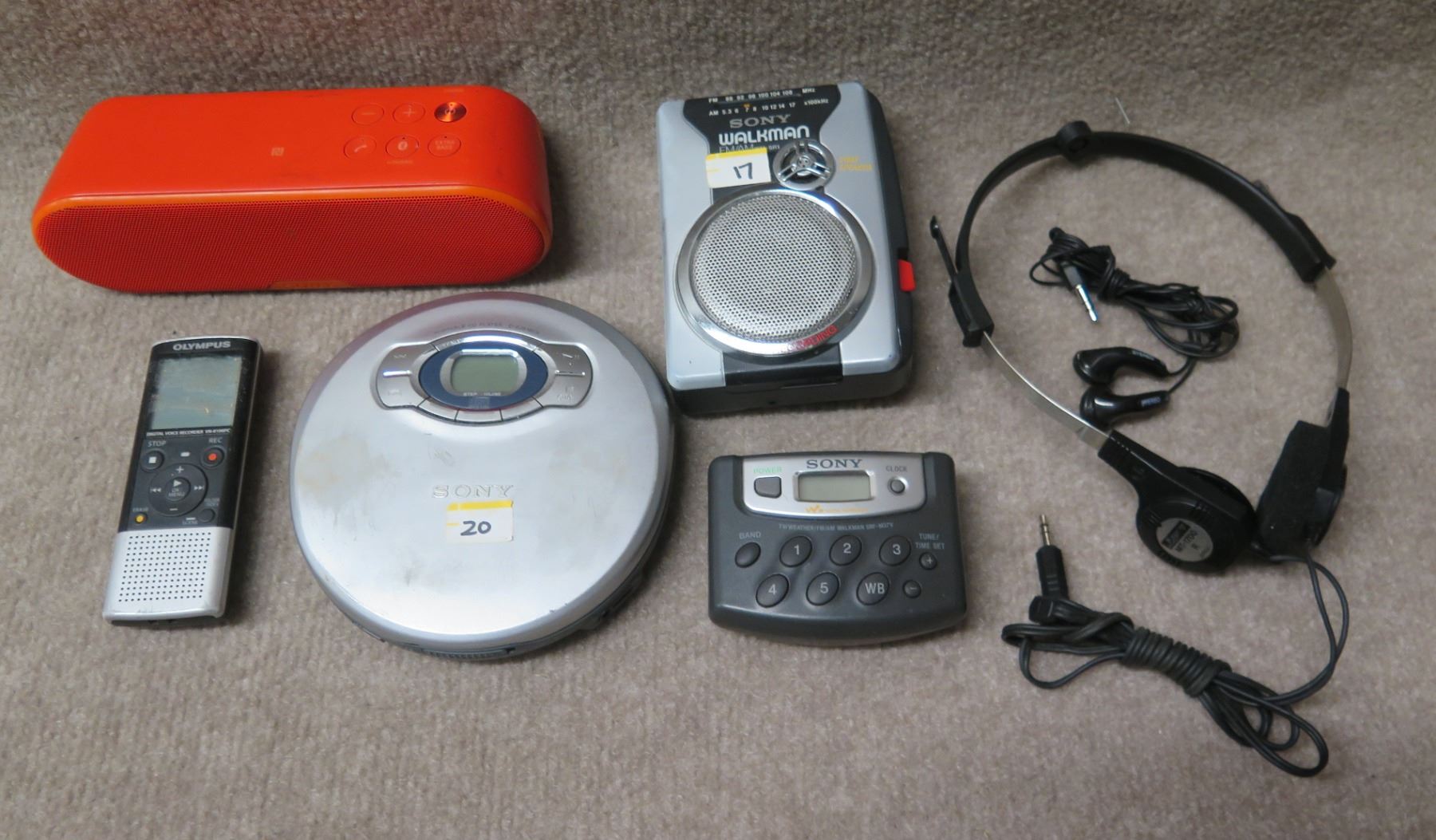 Olympus Voice Recorder, Sony CD Player & 2 Walkmans, Personal Audio System, etc
