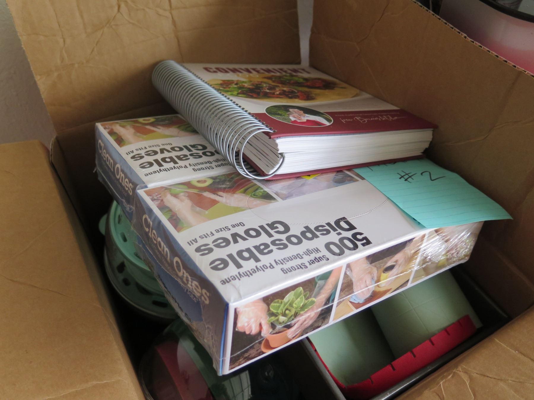 Omega Juicer & Attachments, Misc. Kitchen Items, Books, etc