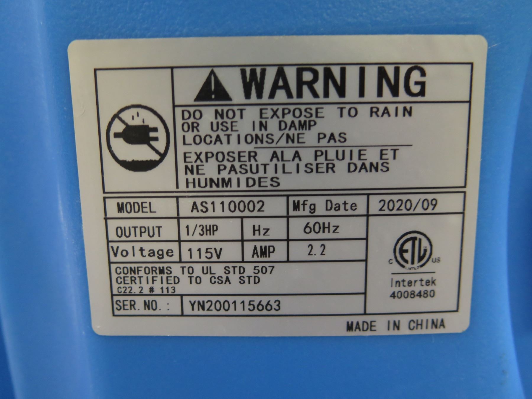 The Air Scrubber delivers a maximum 800 CFM of HEPA filtered air, while drawing less than two