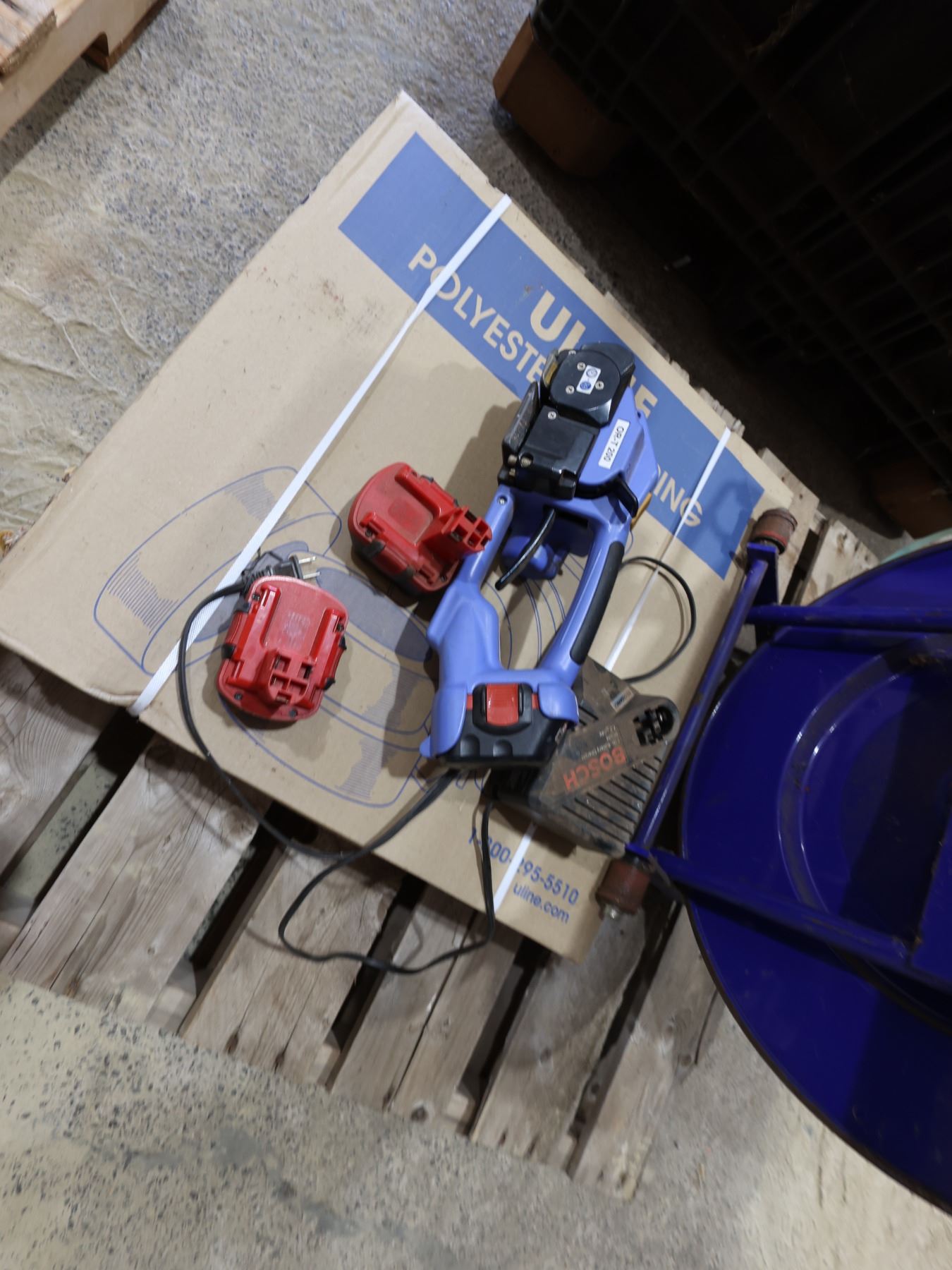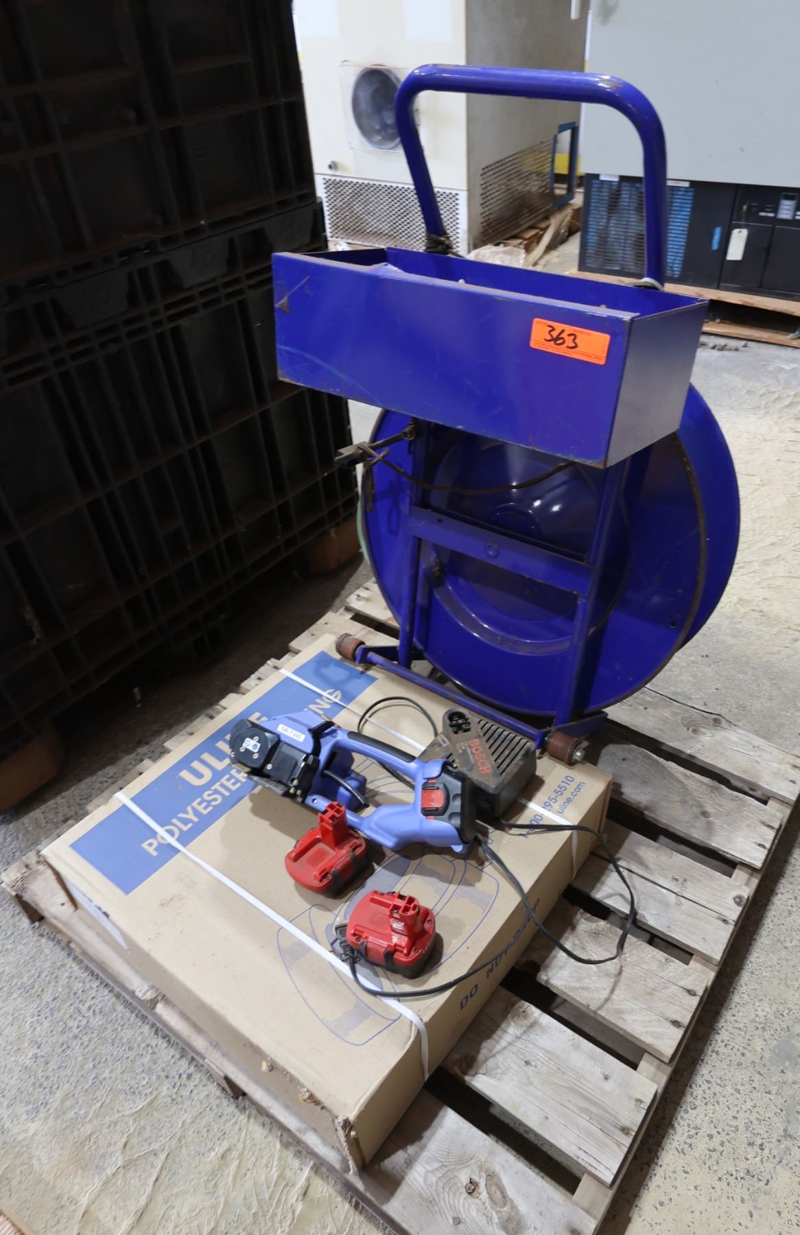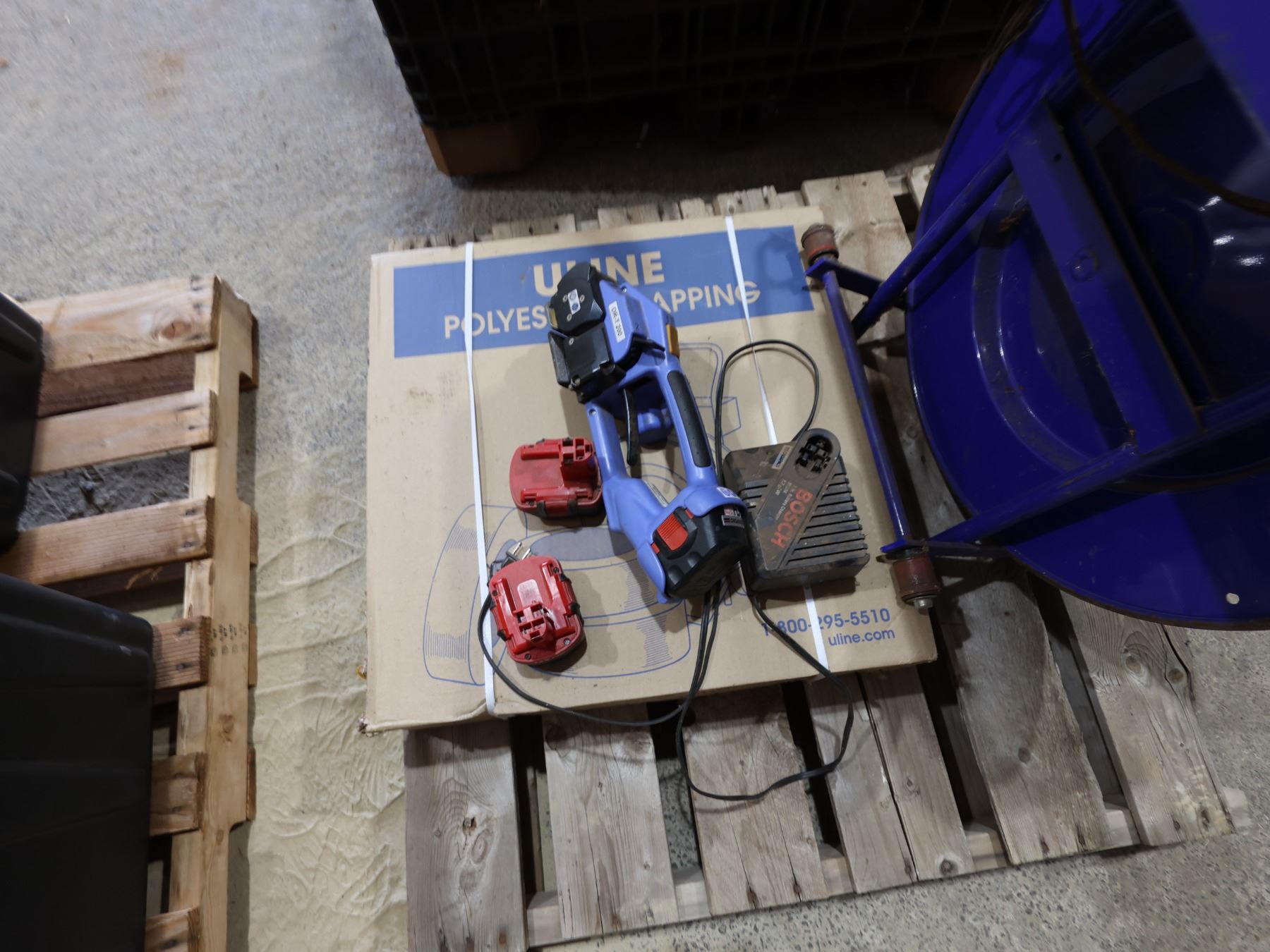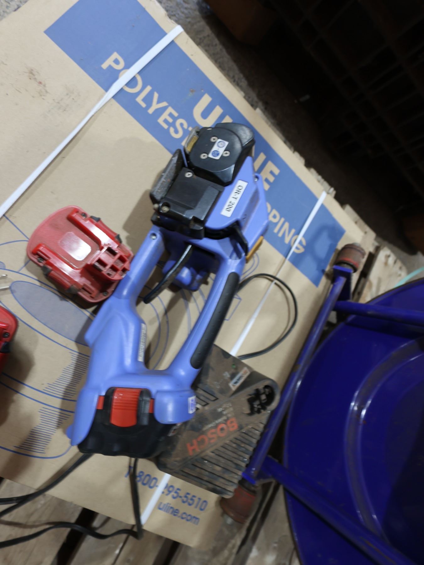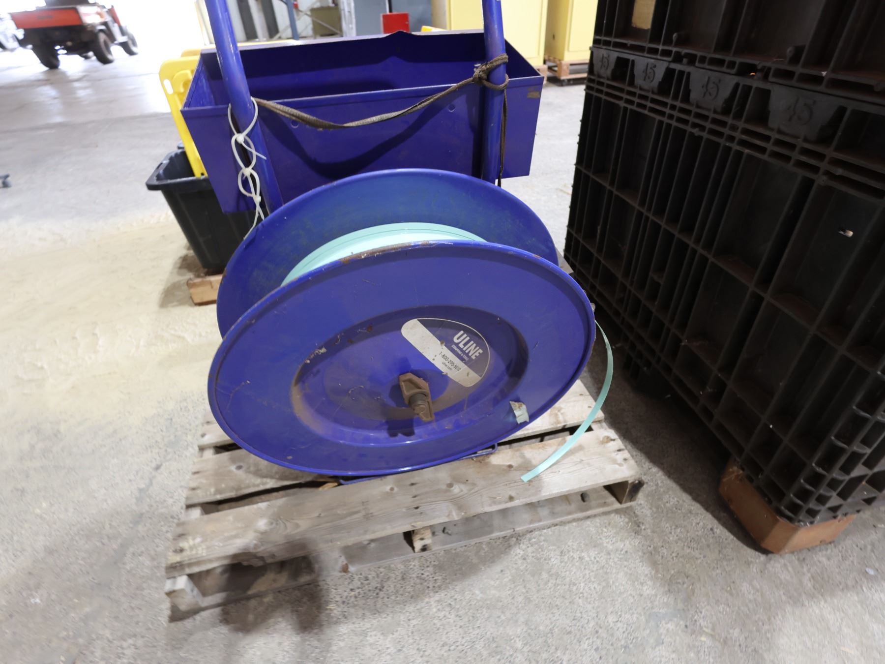 Orgapack ORT200 Strapping Tool w/ ULINE Industrial Strapping Cart w/ Polyester Strapping