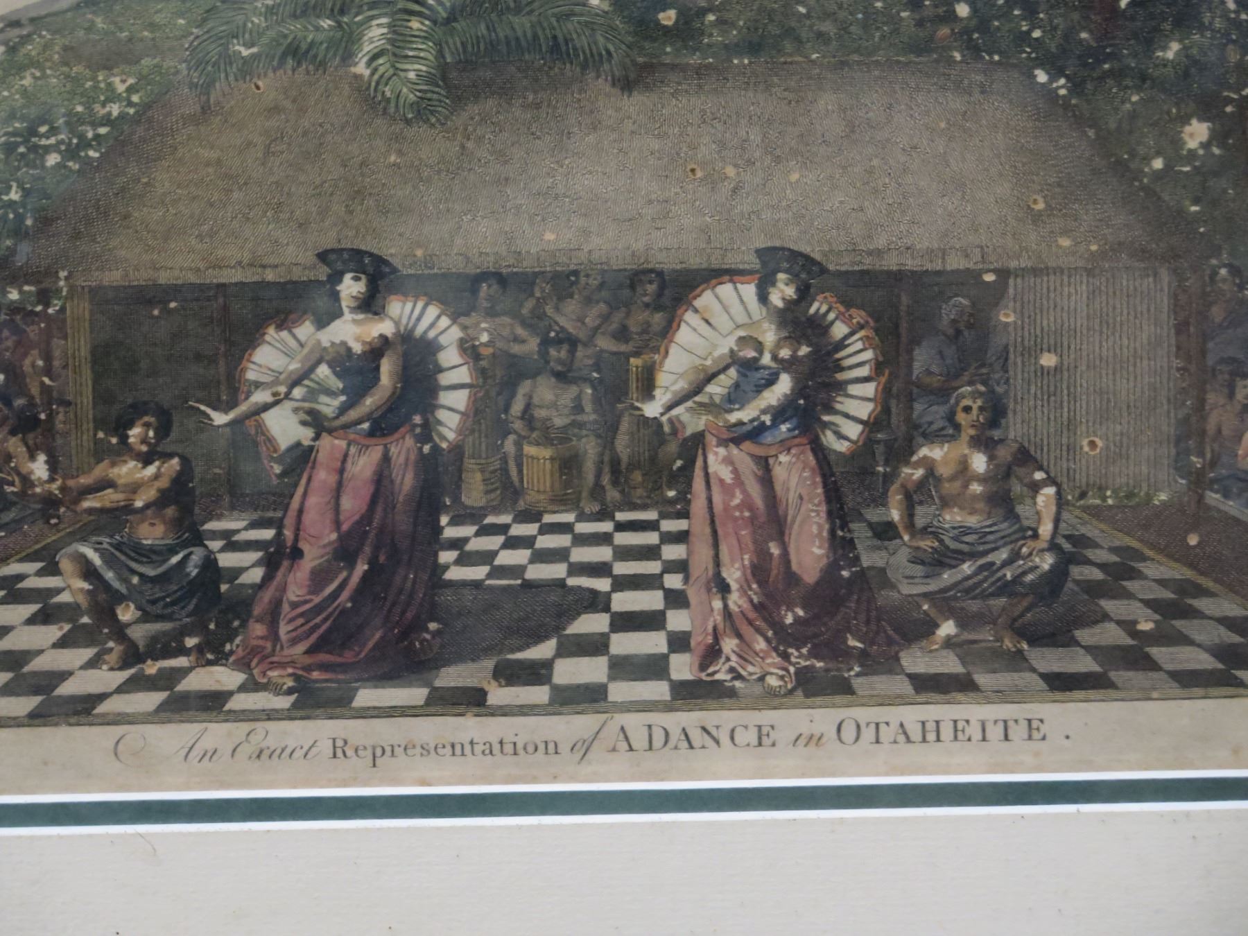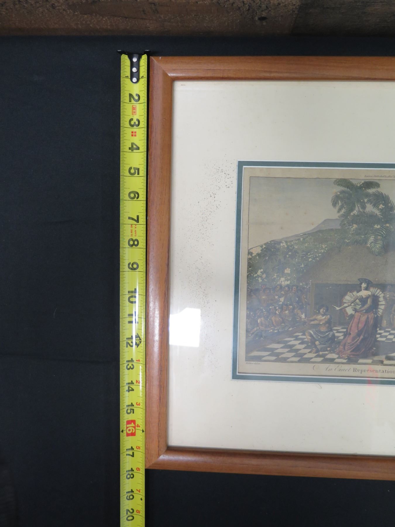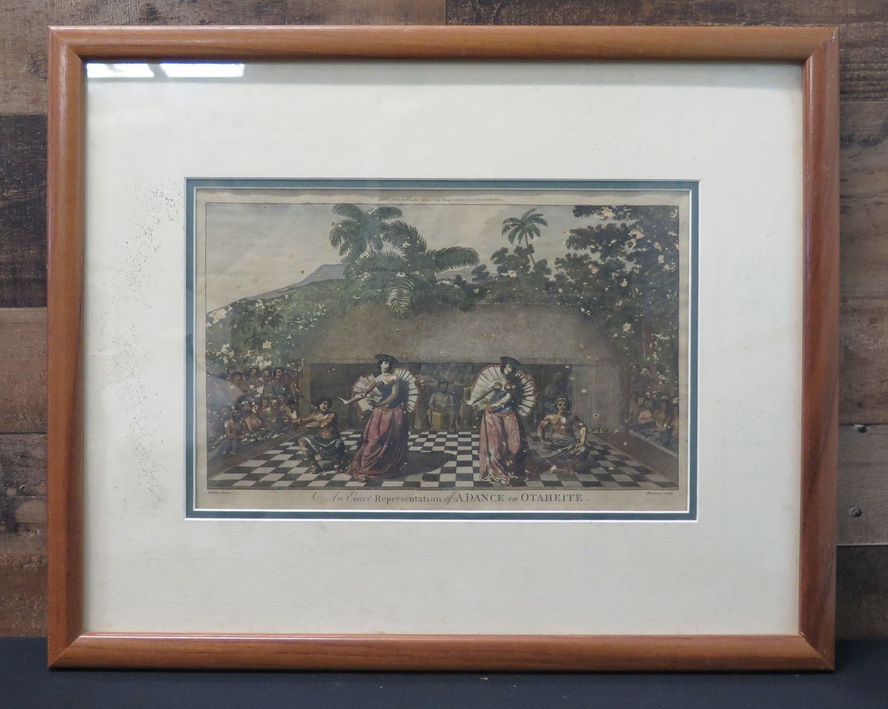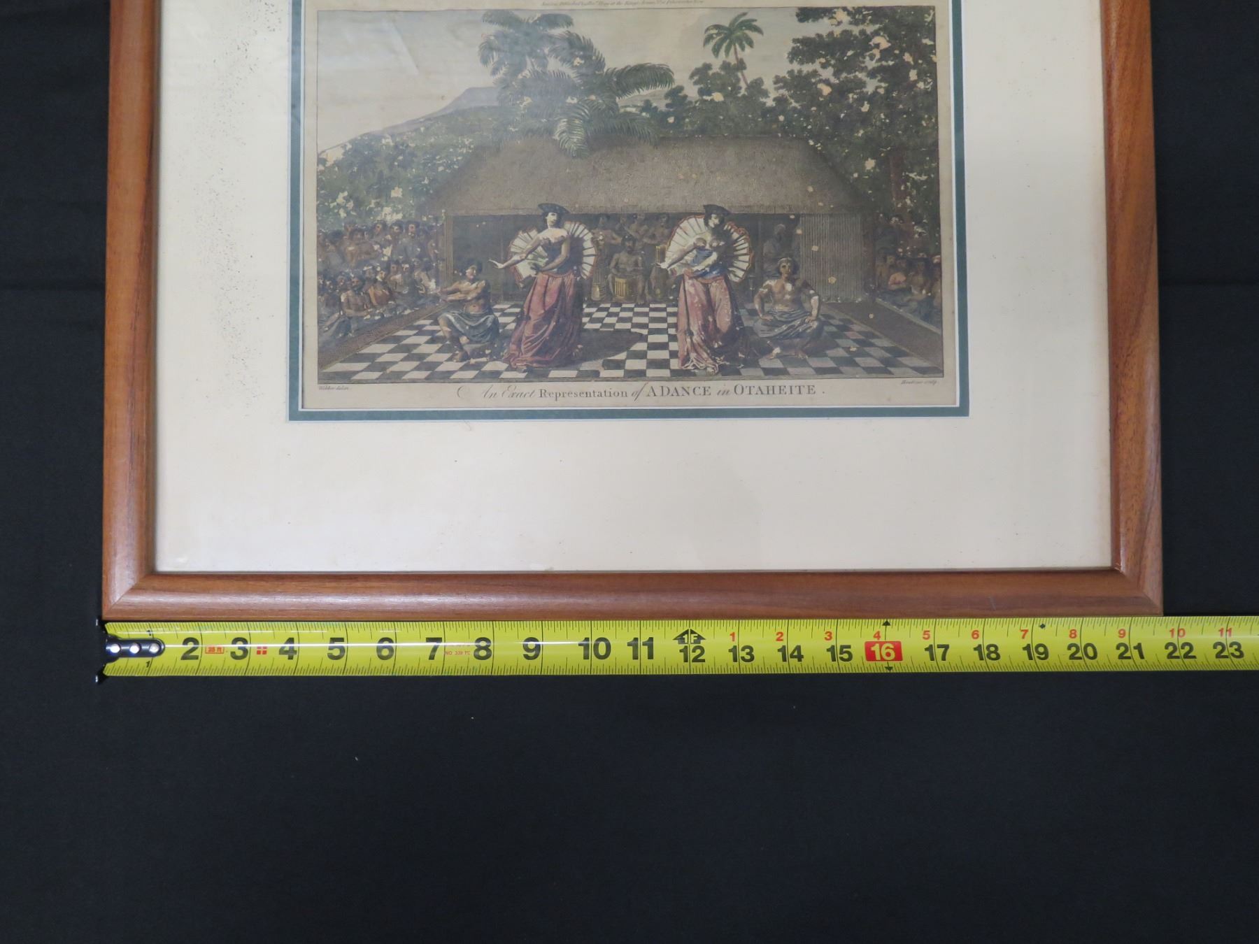 Original 18th Century Hand-Painted Print by Webber of Dance in Otaheite (Tahiti), Koa Framed 22" x 18"