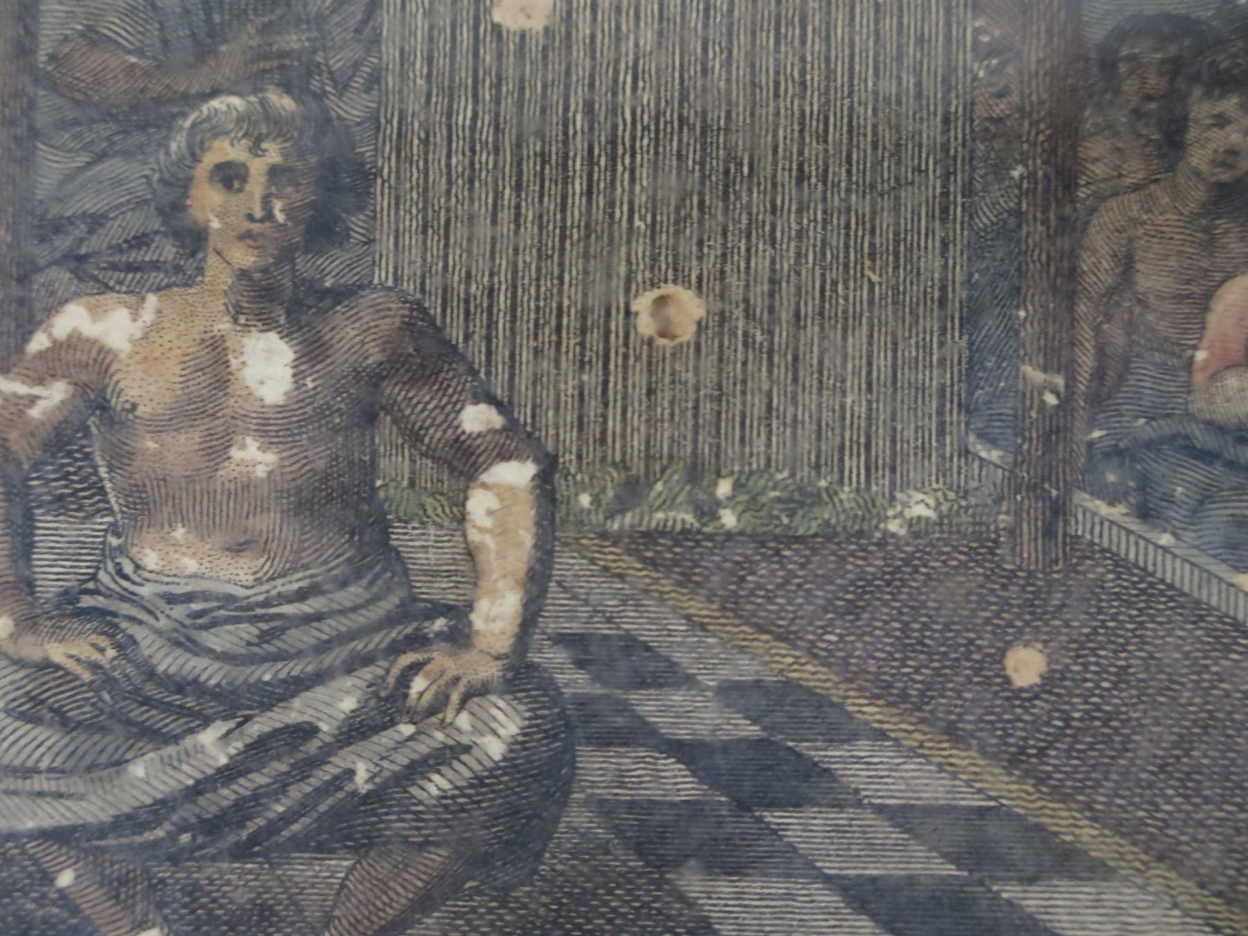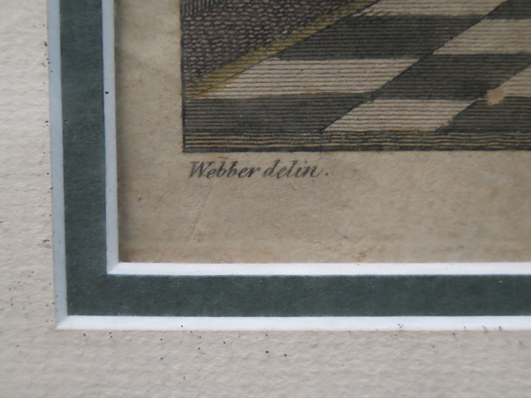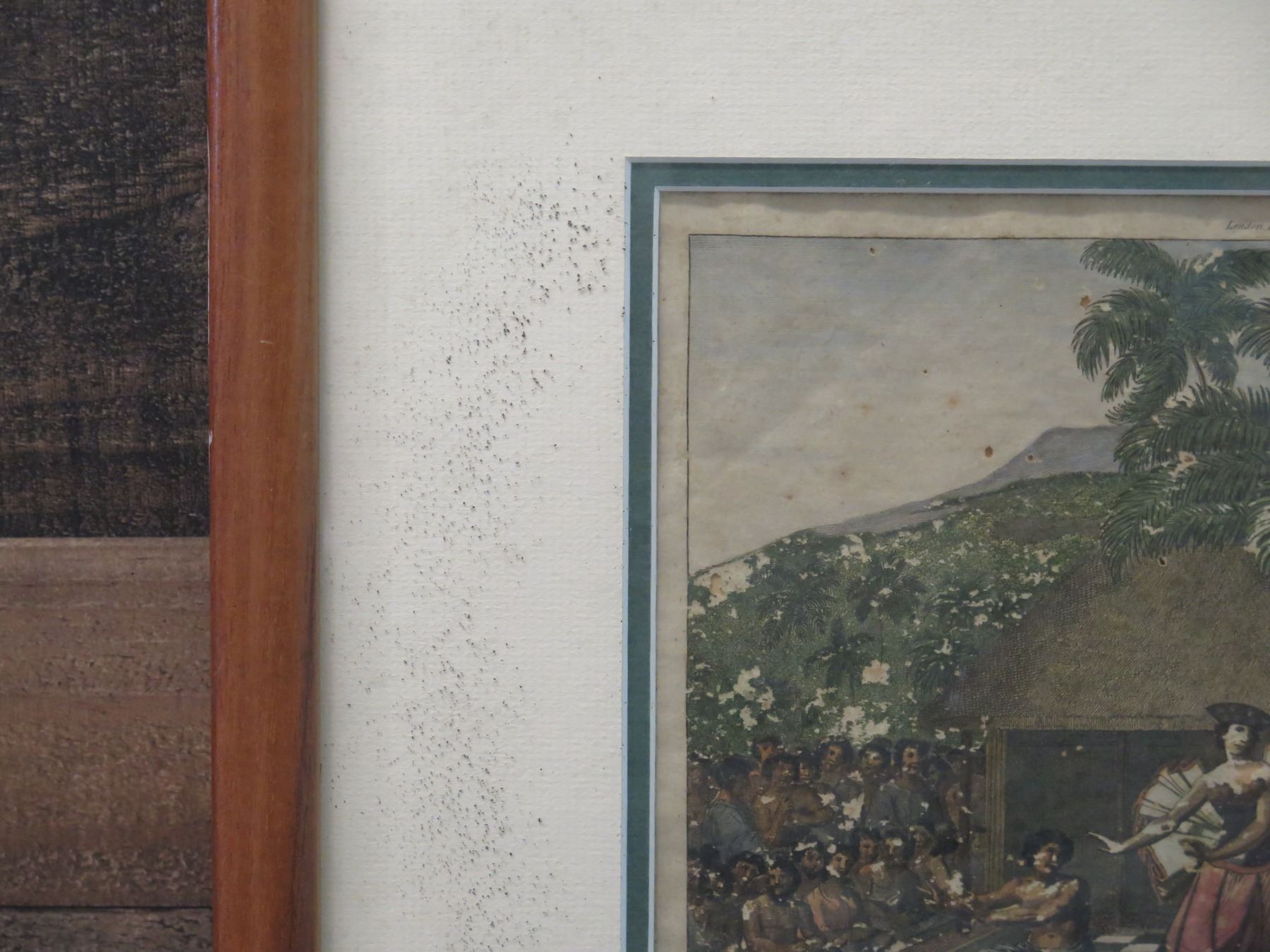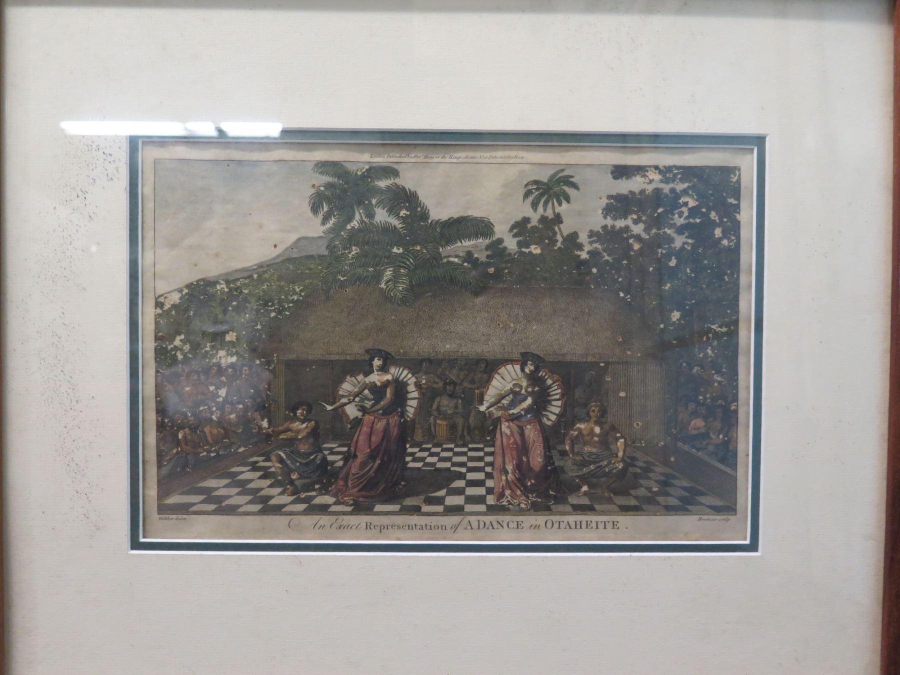 Original 18th Century Hand-Painted Print by Webber of Dance in Otaheite (Tahiti), Koa Framed 22" x 18"