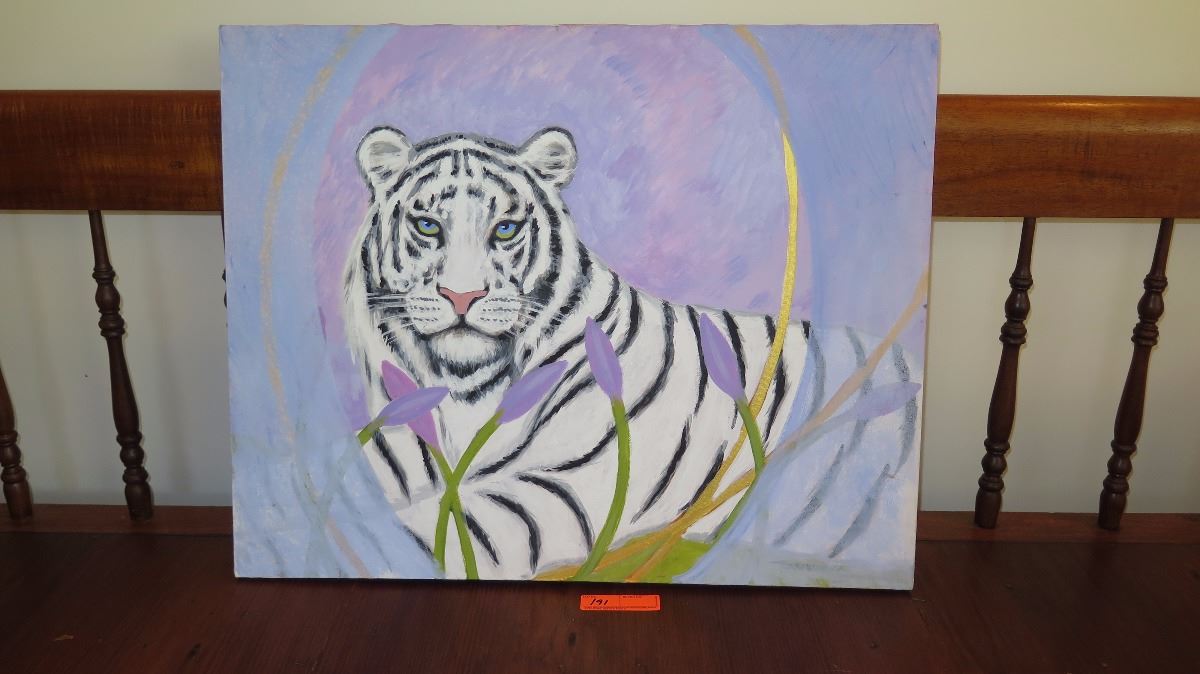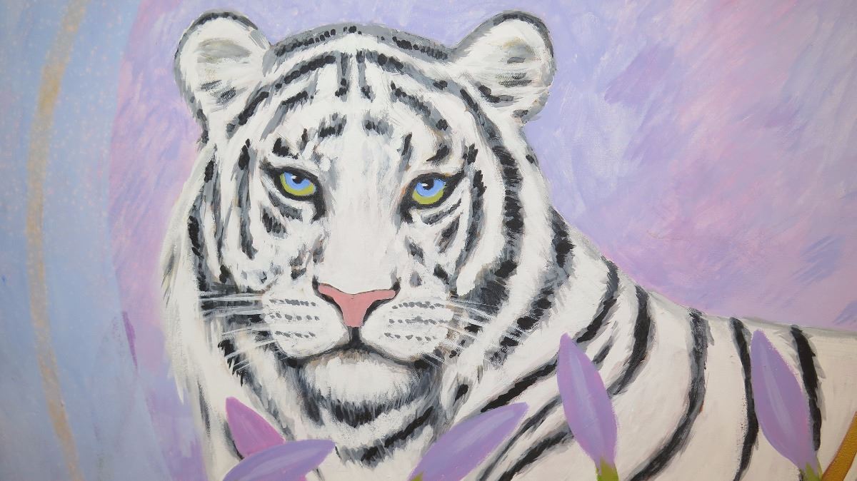 Original Acrylic on Canvas: White Tiger - by Zambucka 30x24