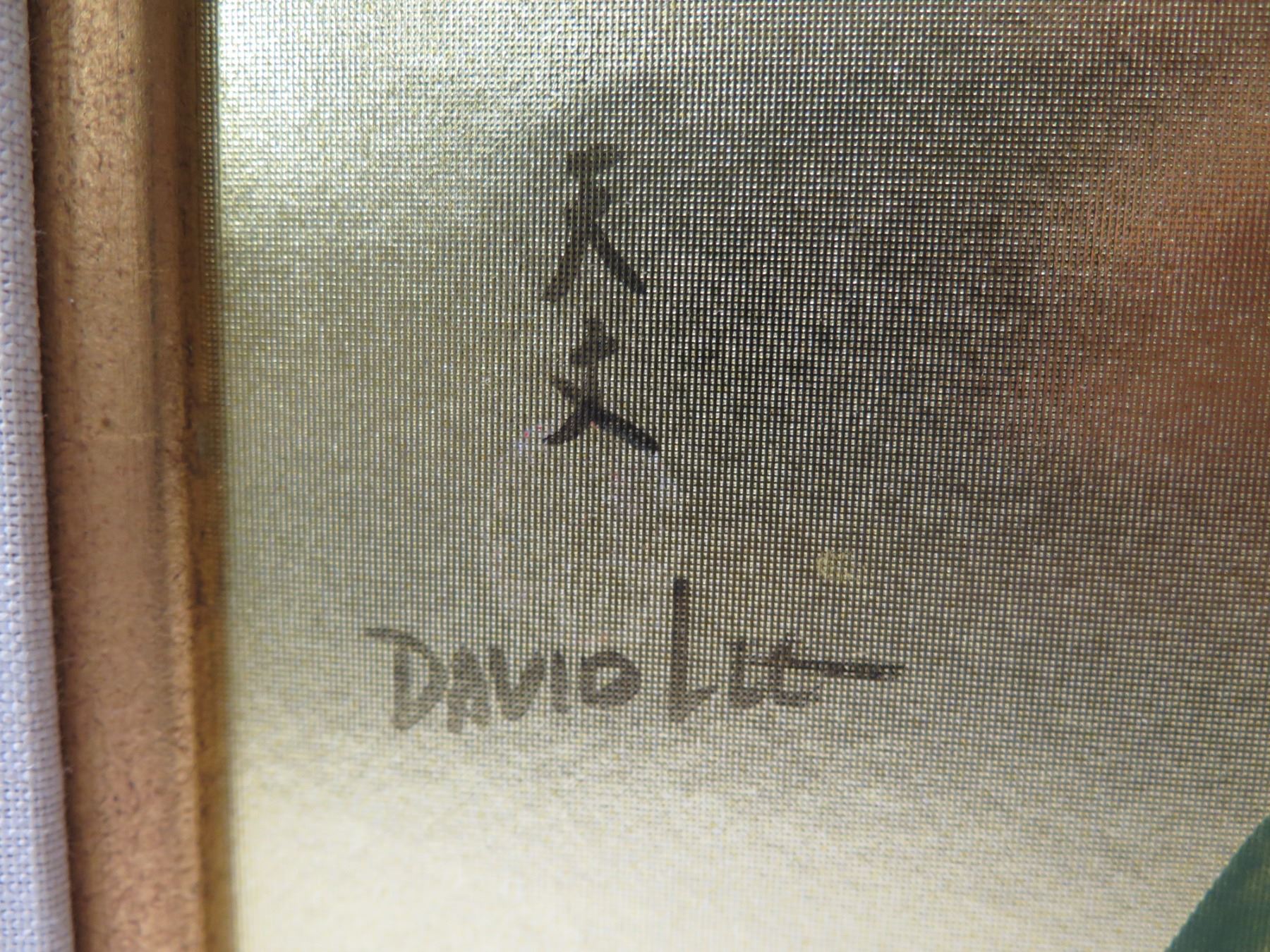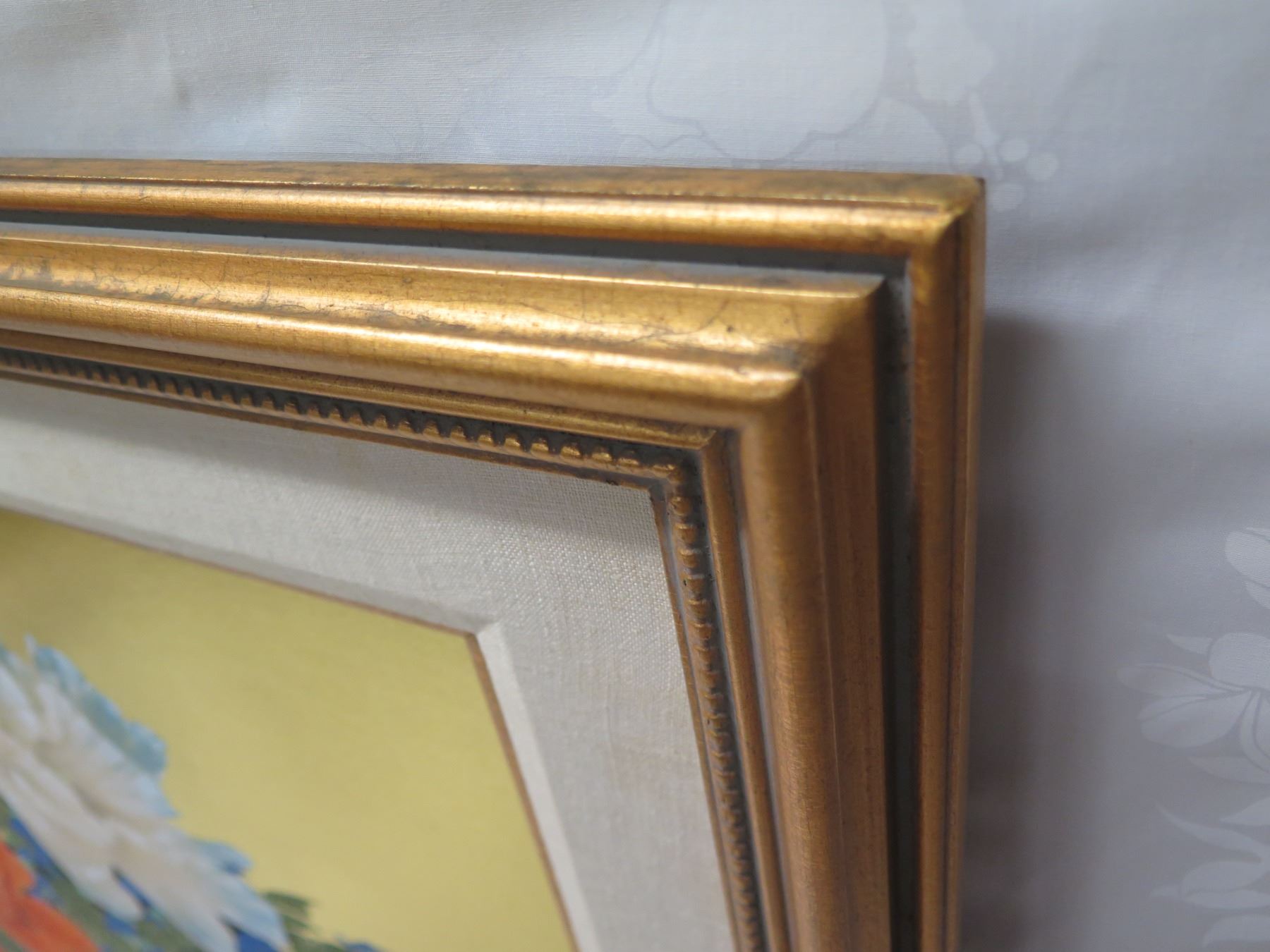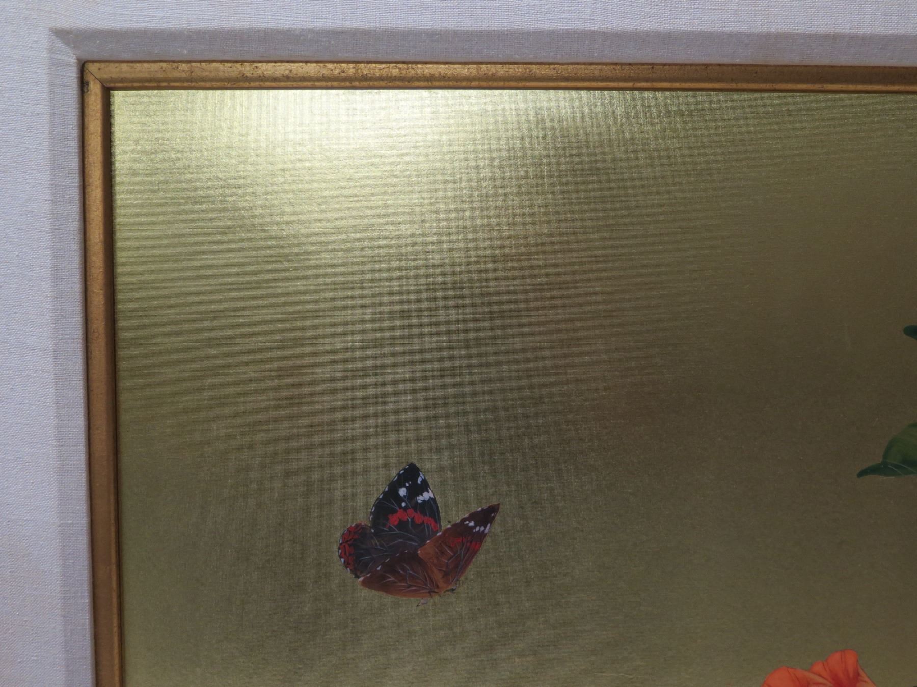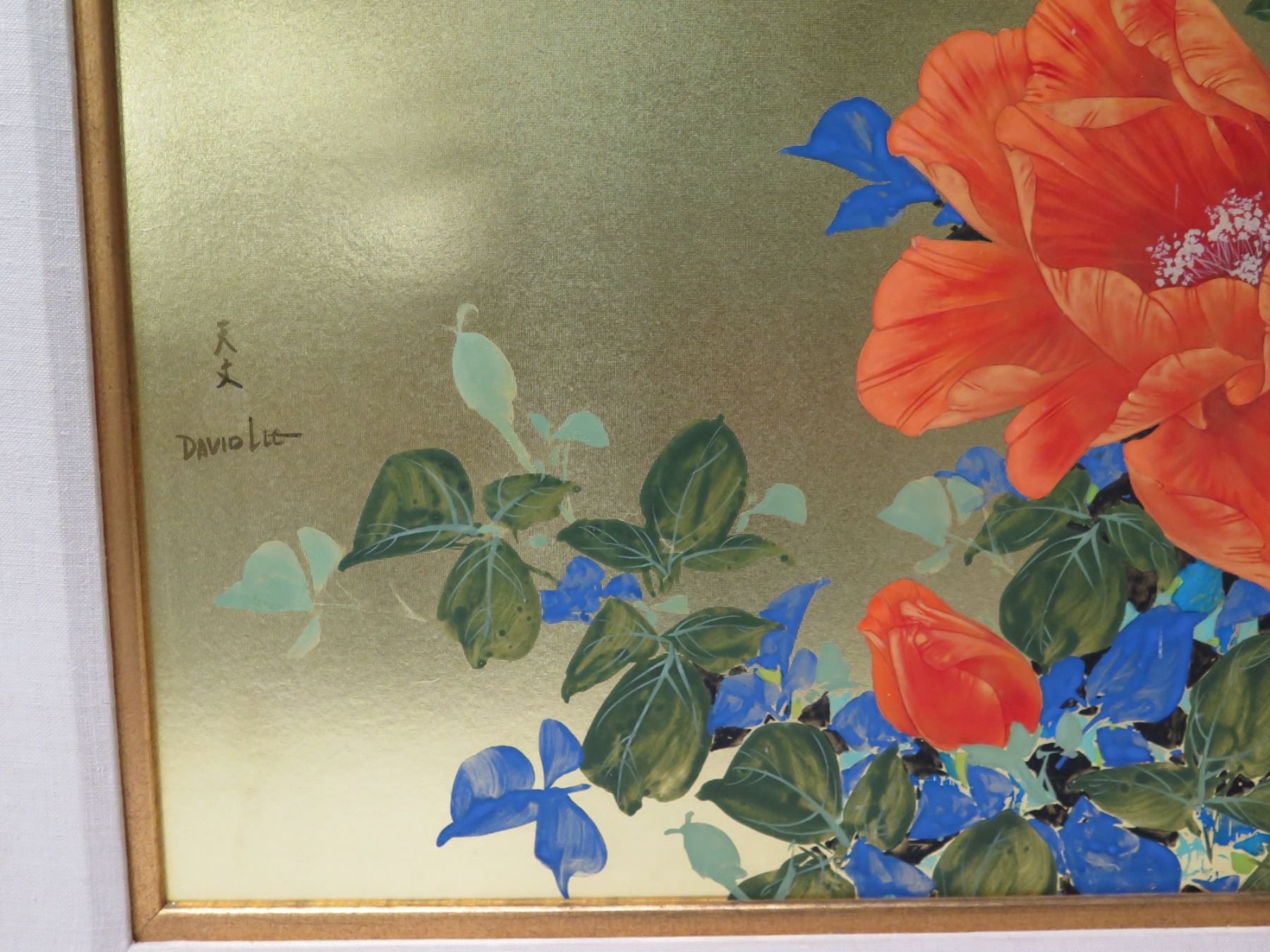 Original Floral Artwork on Silk titled "Golden Moments" Signed David Lee, Framed 45"x33"