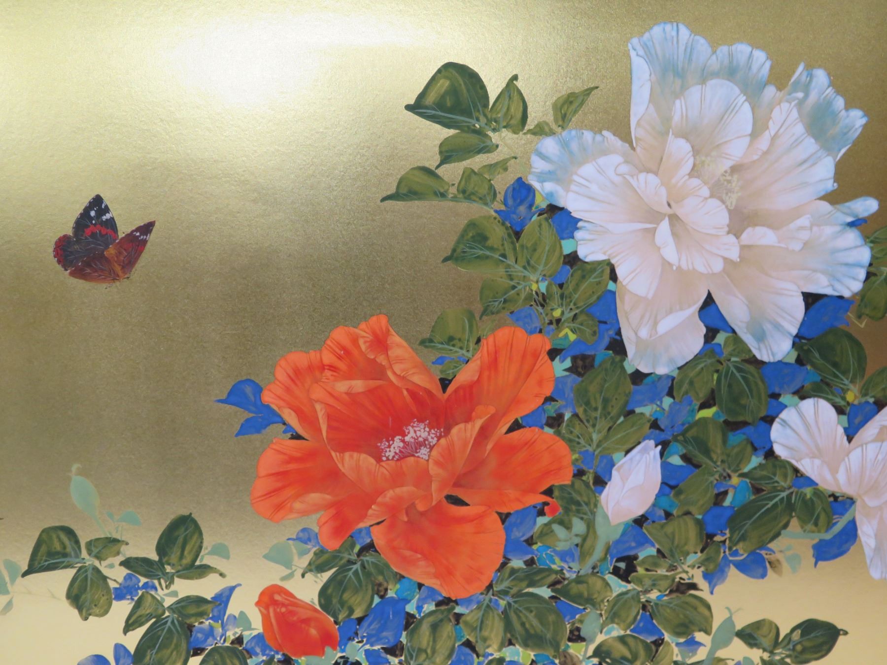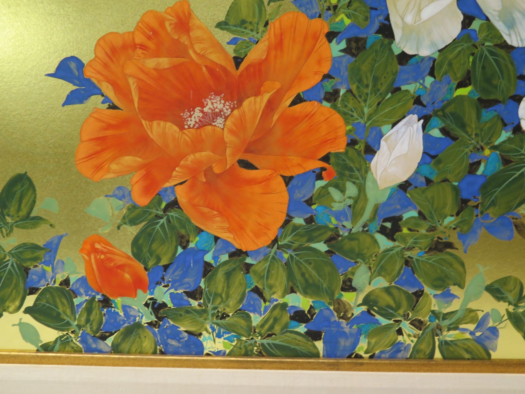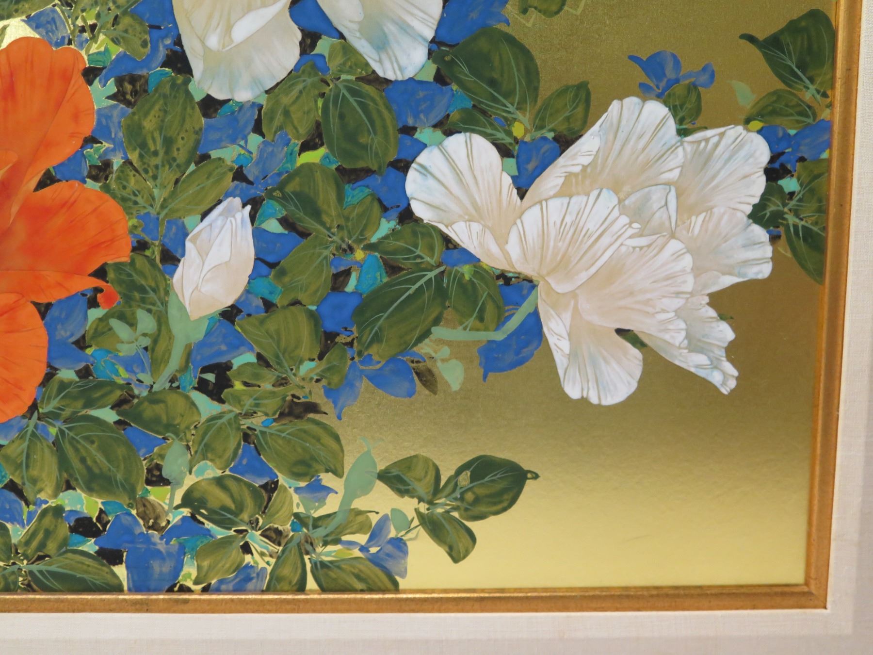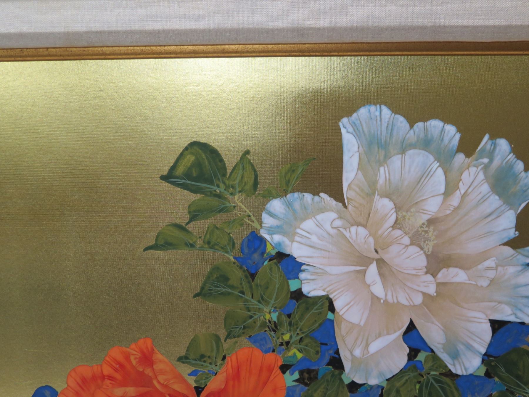 Original Floral Artwork on Silk titled "Golden Moments" Signed David Lee, Framed 45"x33"