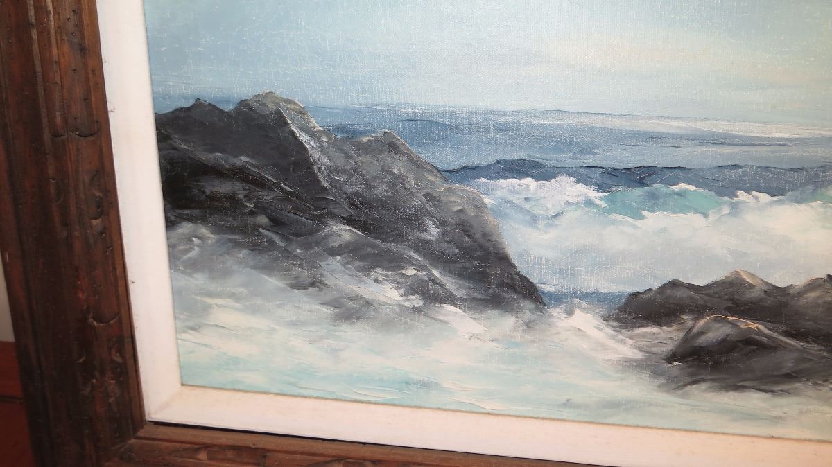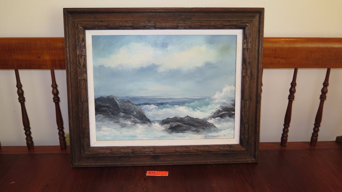 Original Framed Oil Canvas: Rough Sea - by Shirley Cunningham '71 (32X25)