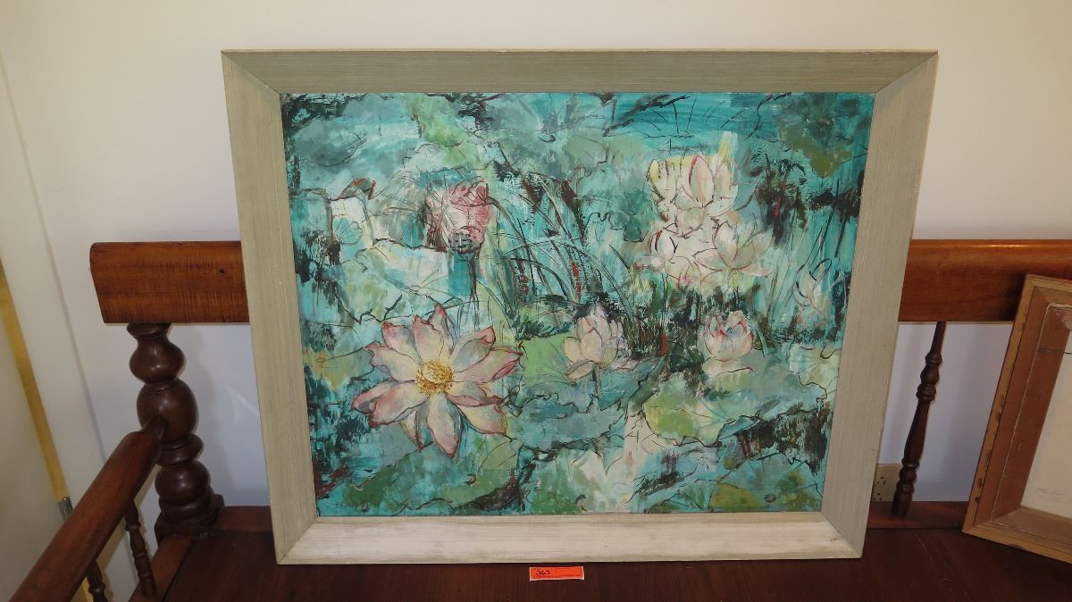 Original Framed Painting: Lotus Flowers - by Shirley Russell 32X38